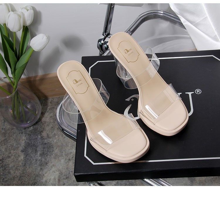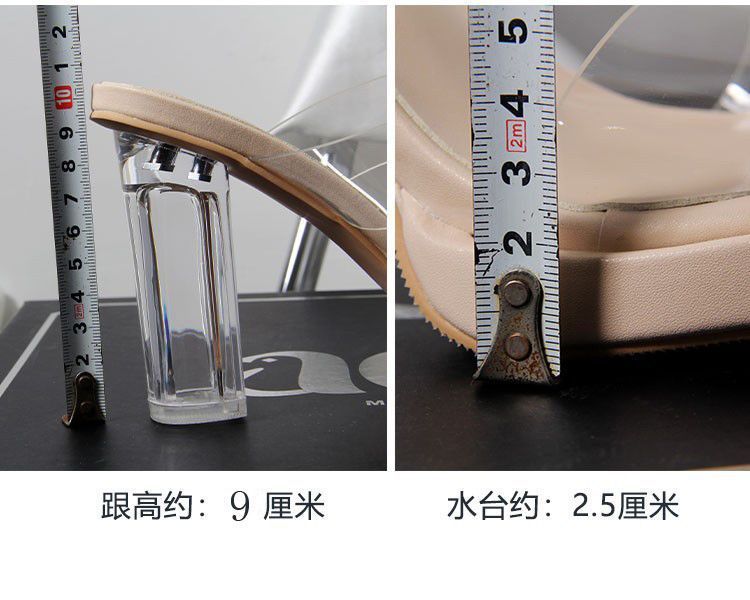高跟鞋女2025夏季新款防水台一字带不累脚粗跟水晶拖鞋女凉鞋女鞋