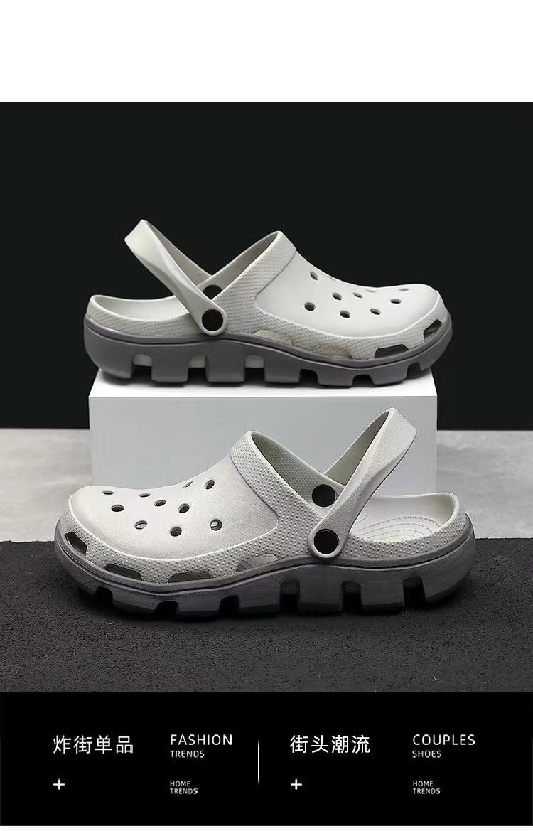 夏季洞洞鞋男款时尚DIY沙滩鞋情侣包头拖鞋软底防滑男凉鞋花园鞋