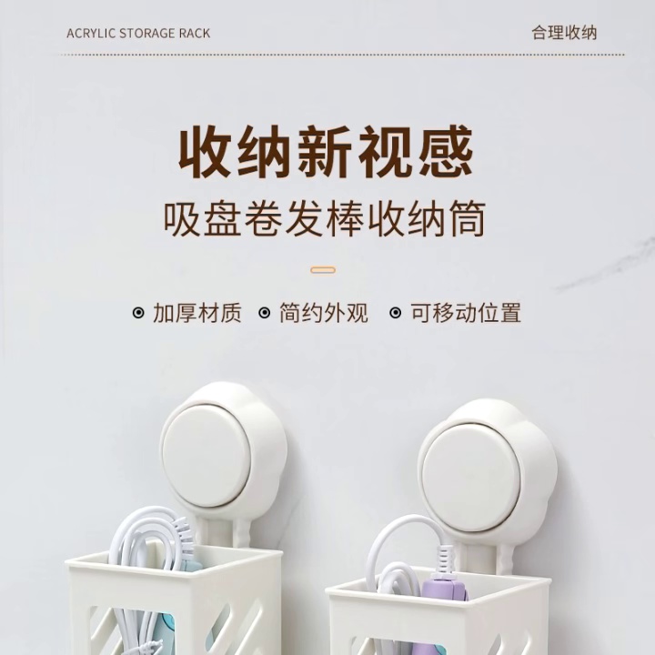 吸盘卷发棒收纳盒家用墙壁免打孔直发器置物架