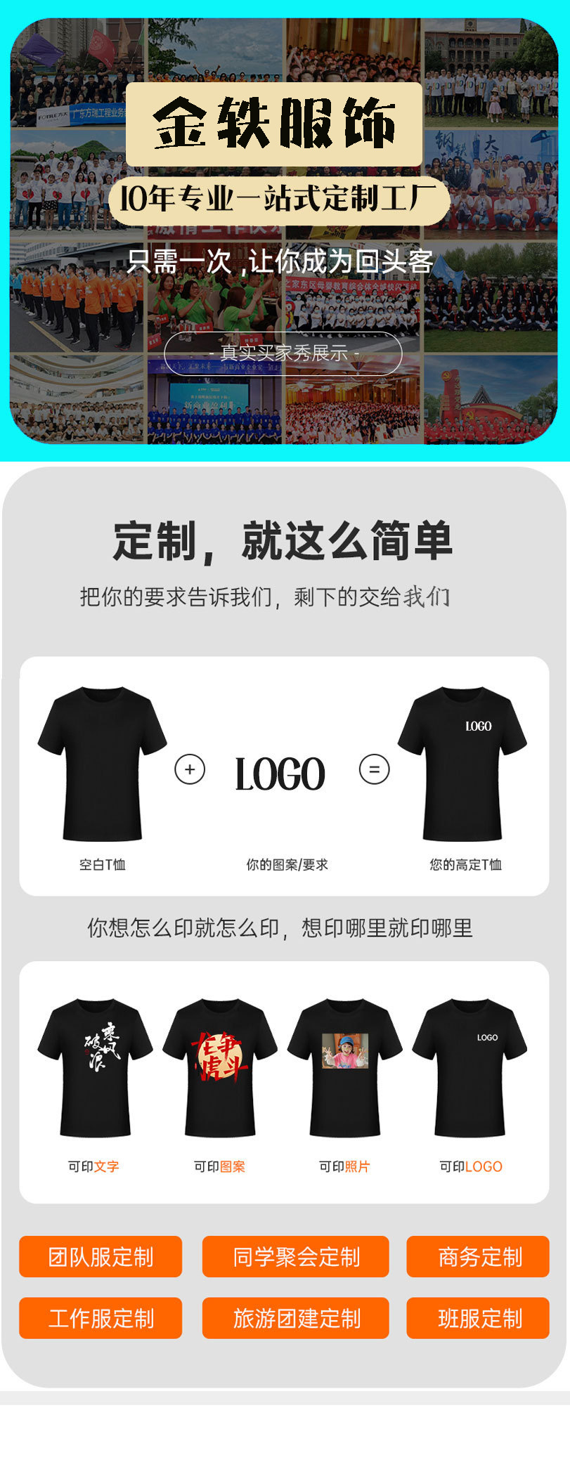 圆领空白全棉t恤定制广告衫 初高中班服男女吸汗短袖工作服印logo