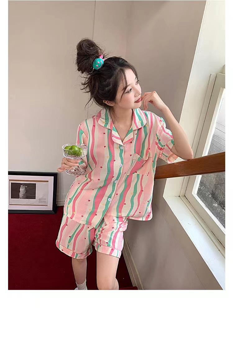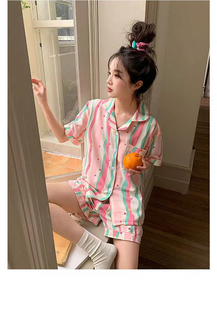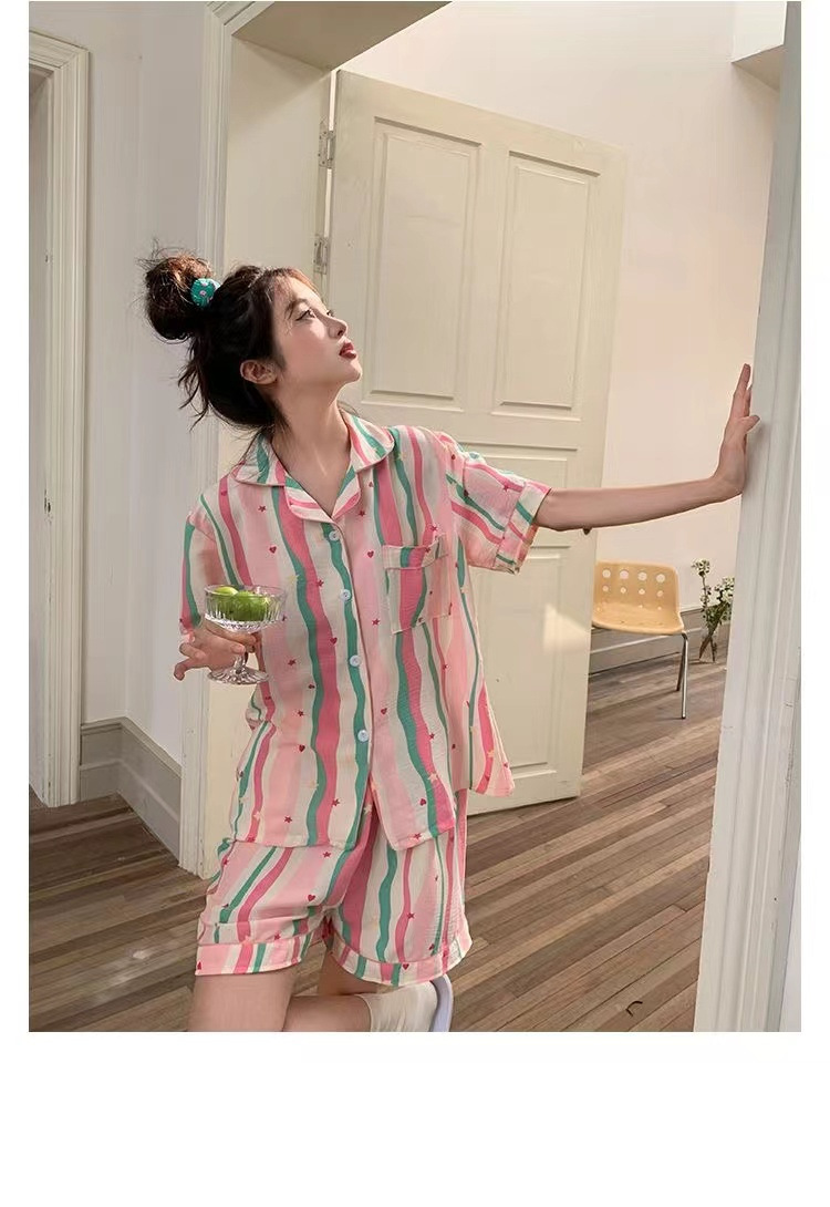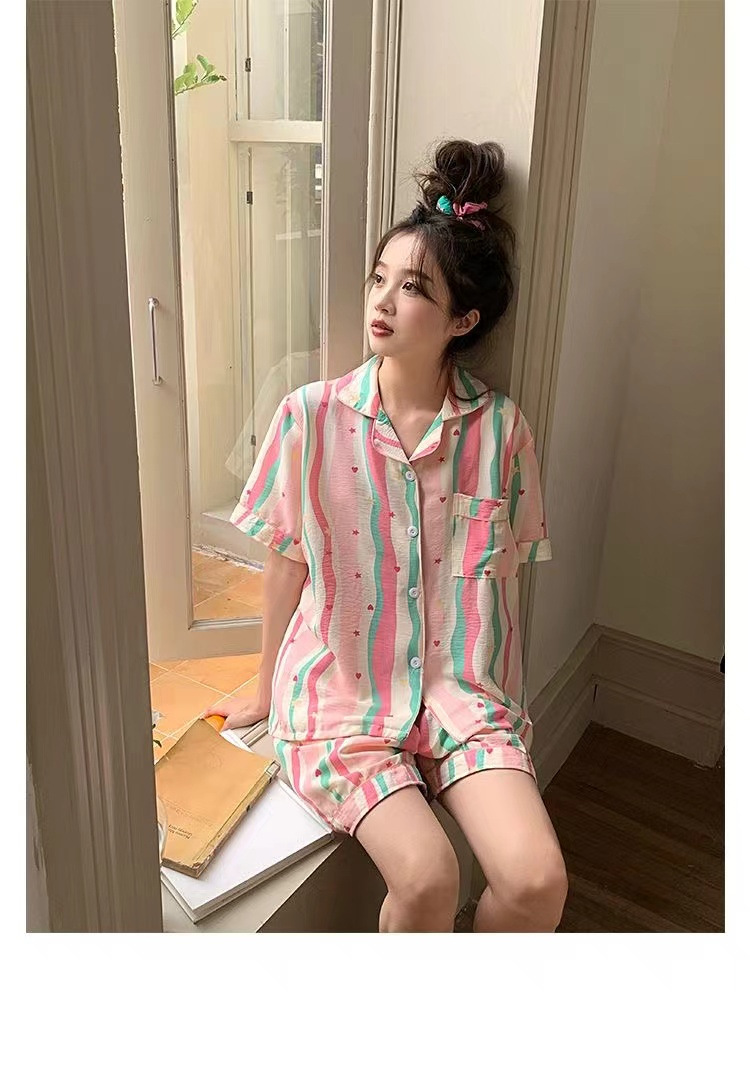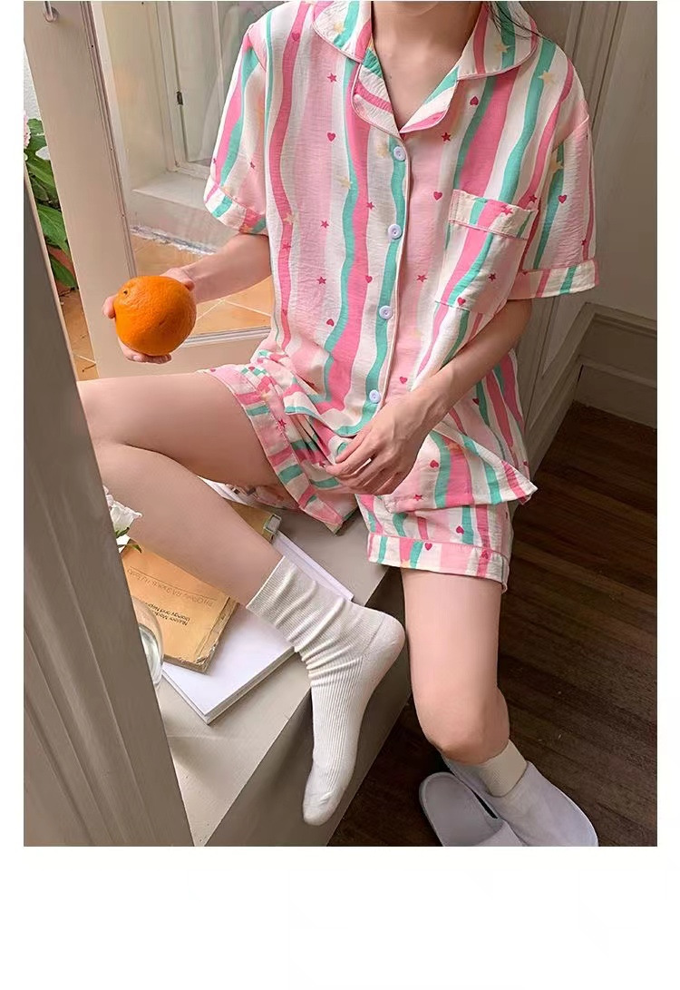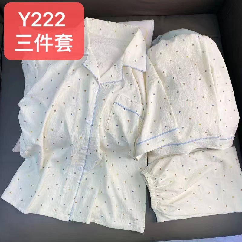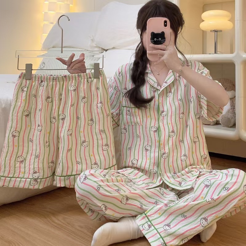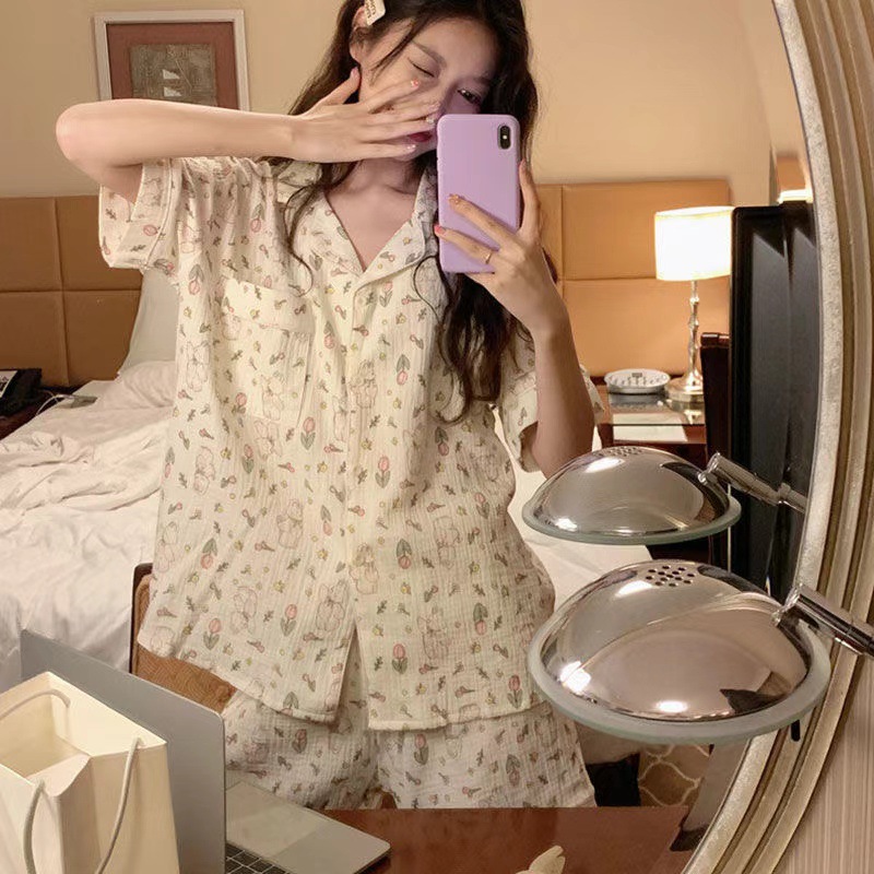 新款云朵棉睡衣女开衫夏季2024新款短袖短裤三件套薄款家居服