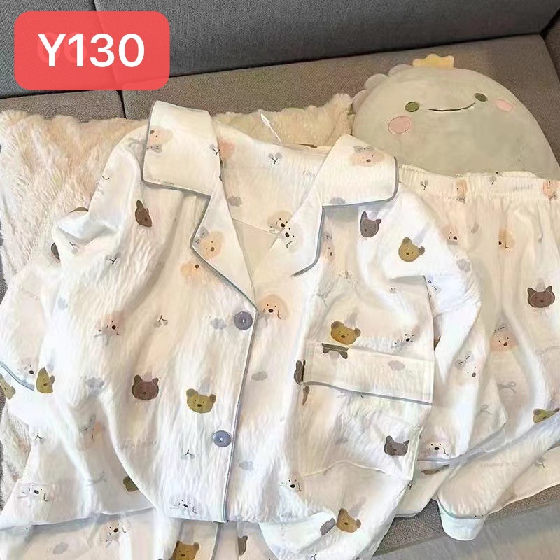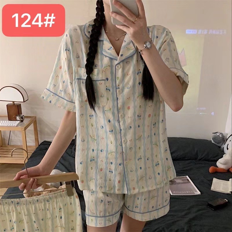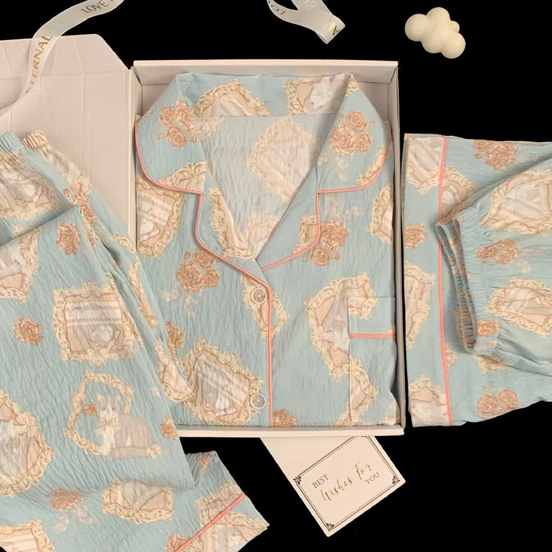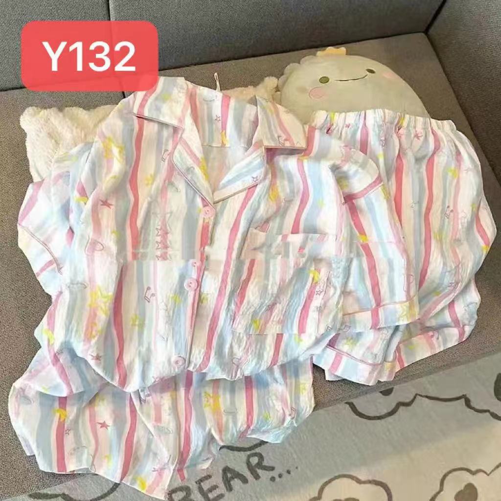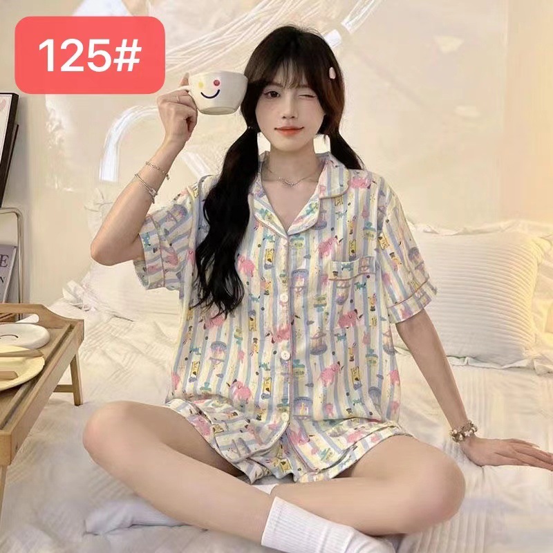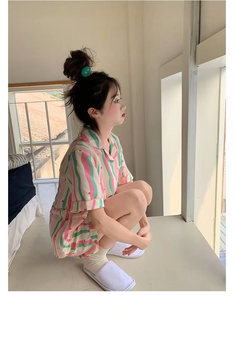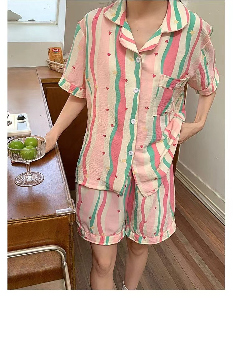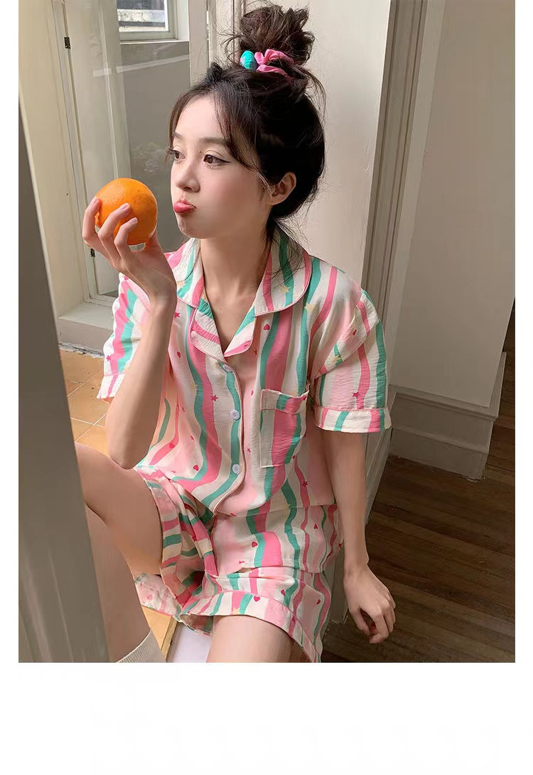 新款云朵棉睡衣女开衫夏季2024新款短袖短裤三件套薄款家居服