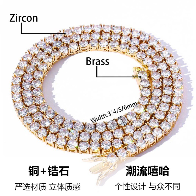 跨境欧美铜镶锆石网球项链配饰潮牌个性嘻哈男士手链饰品厂家批发