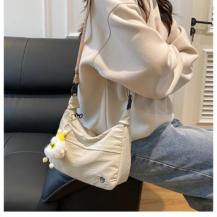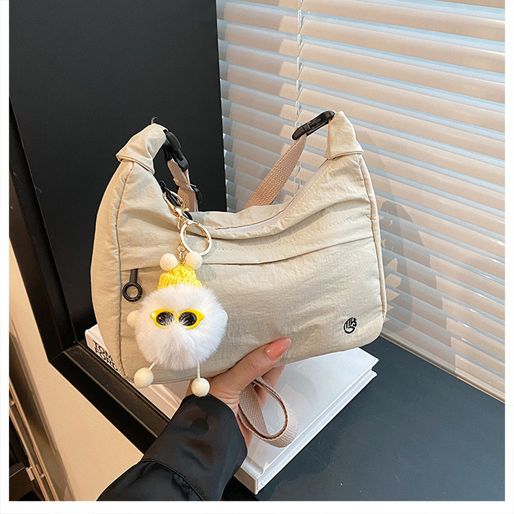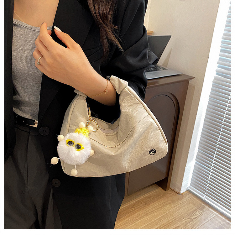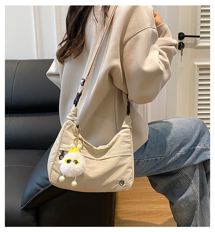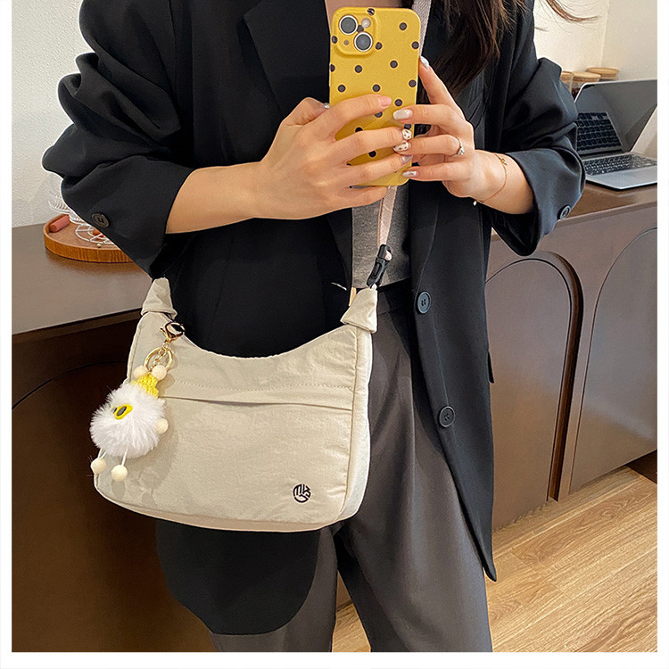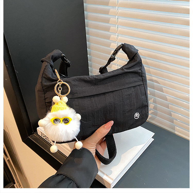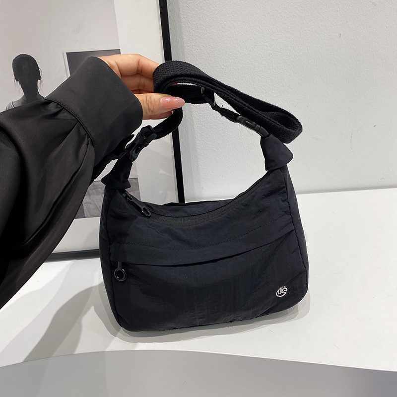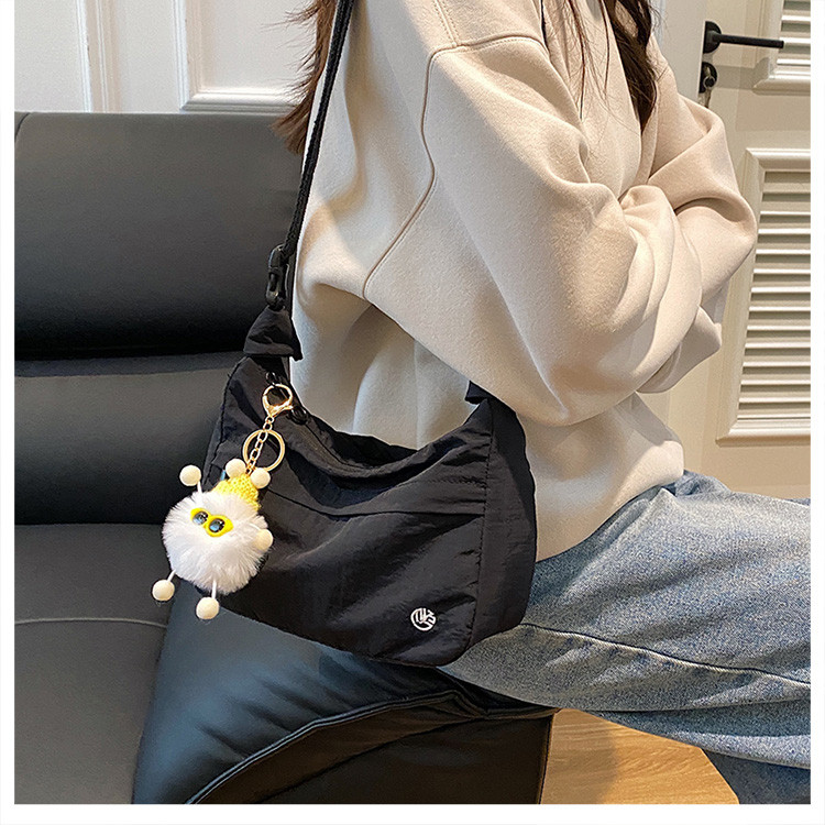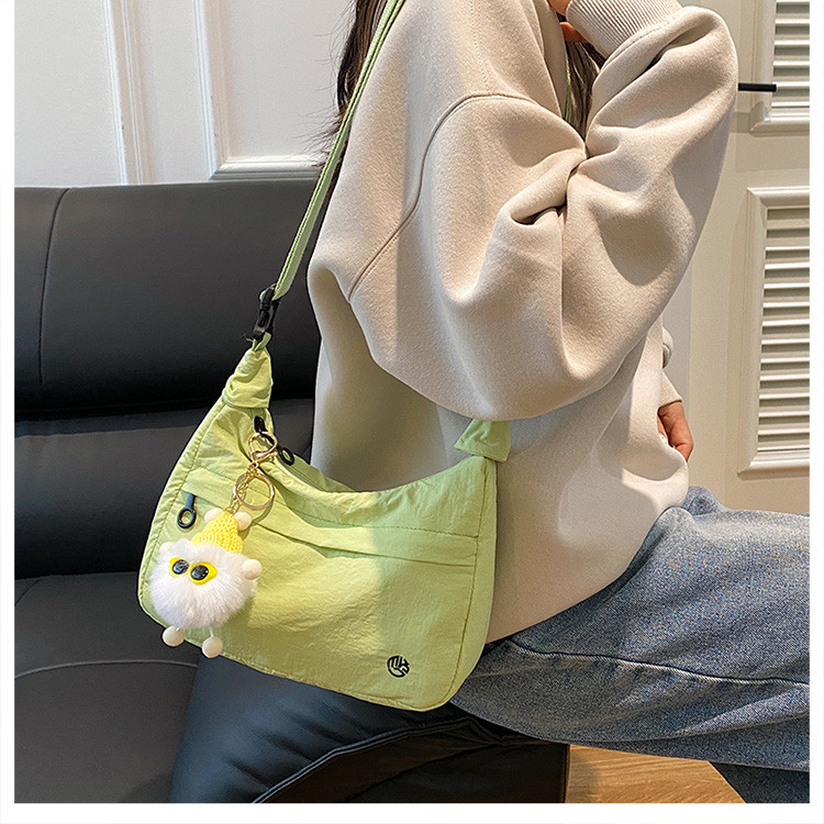 韩版轻便饺子包女2025新款日系单肩手提包尼龙布纯色学生斜挎布包