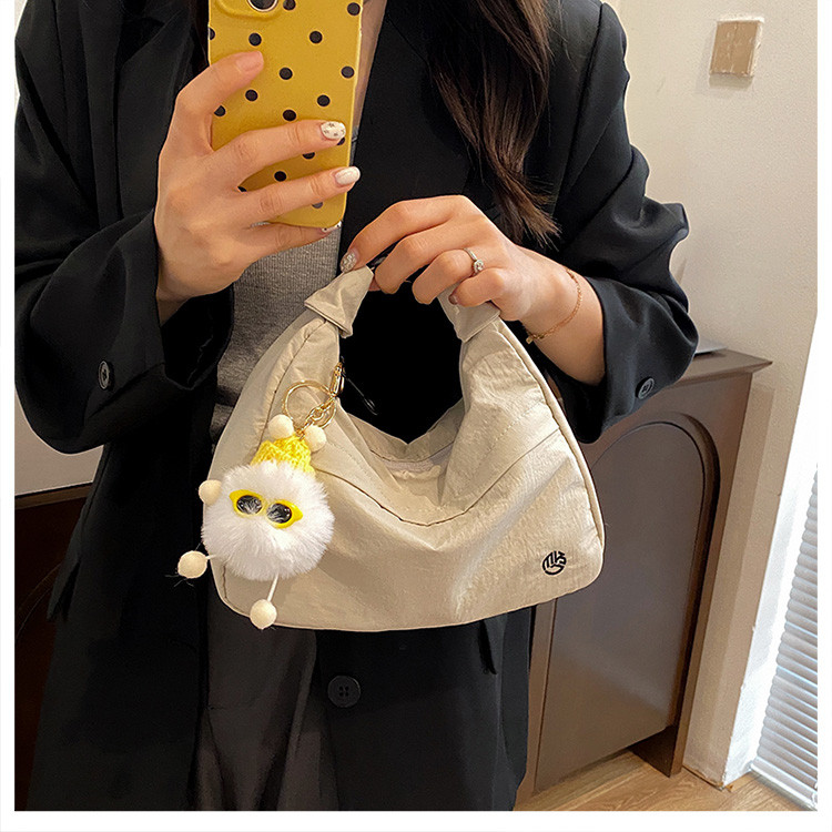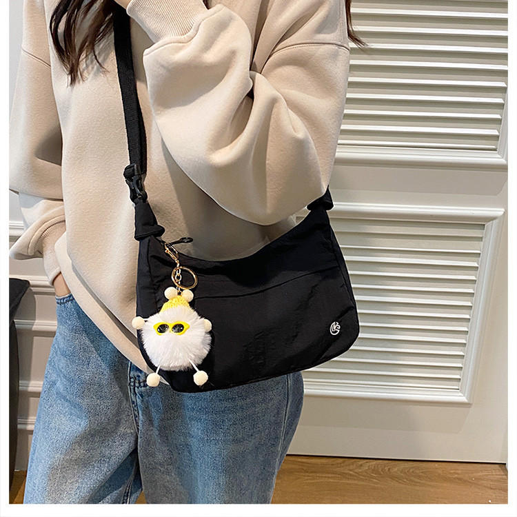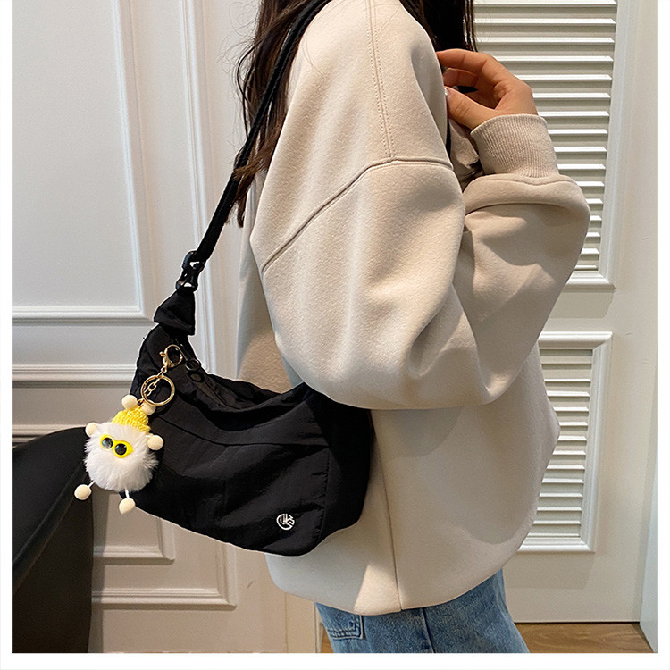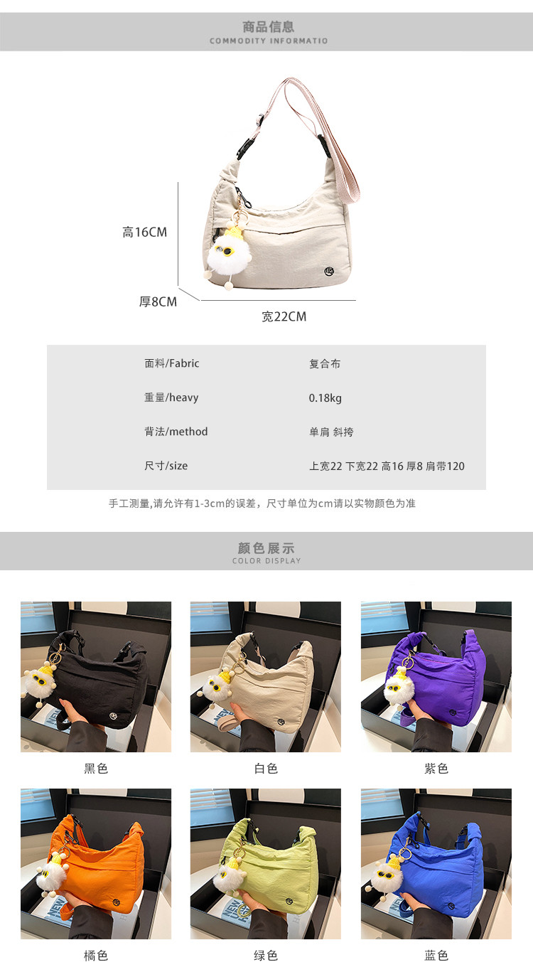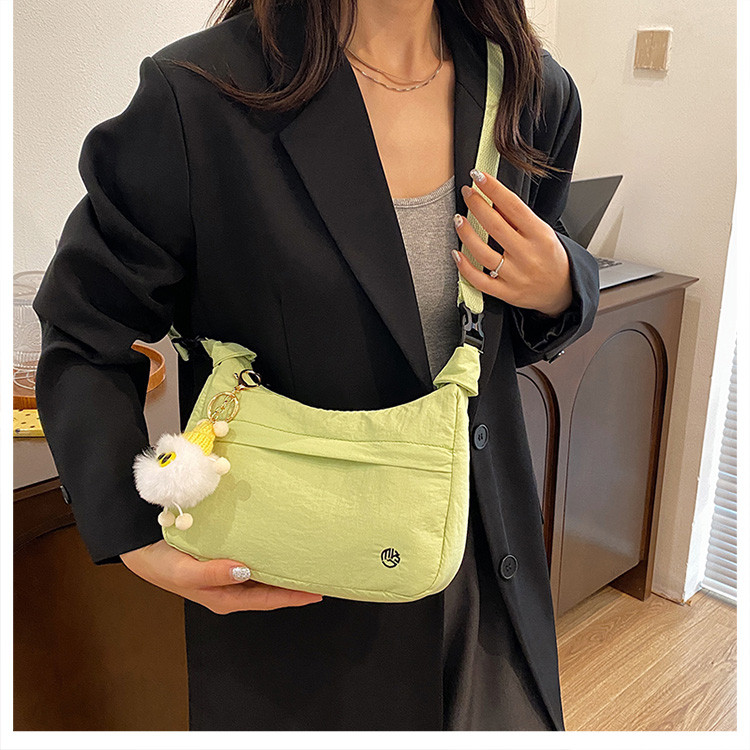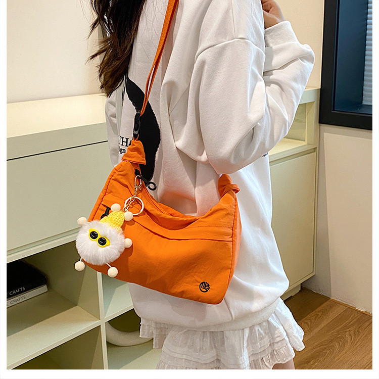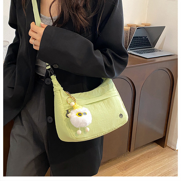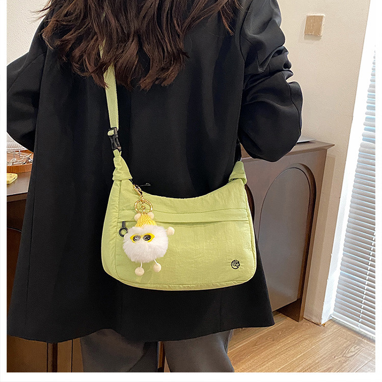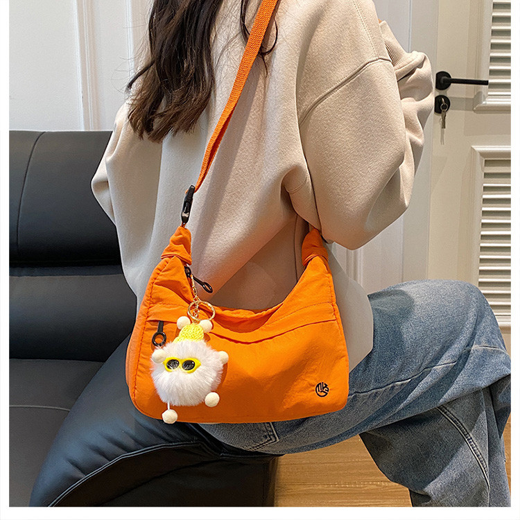 韩版轻便饺子包女2025新款日系单肩手提包尼龙布纯色学生斜挎布包