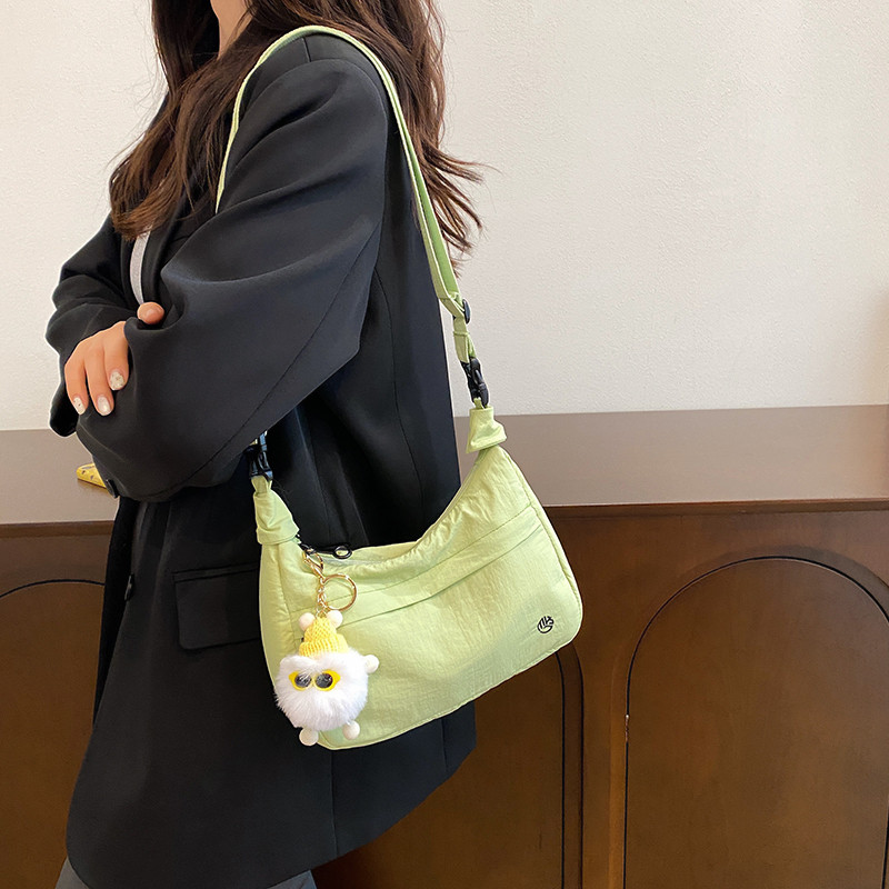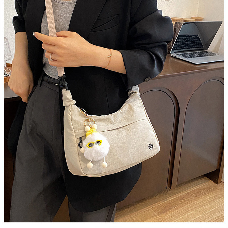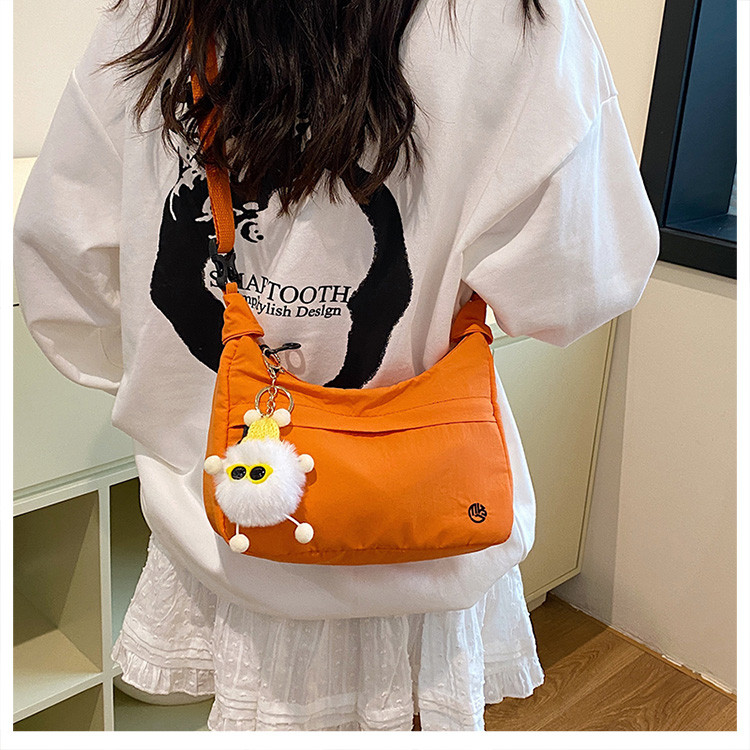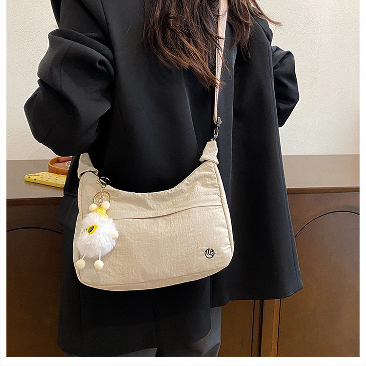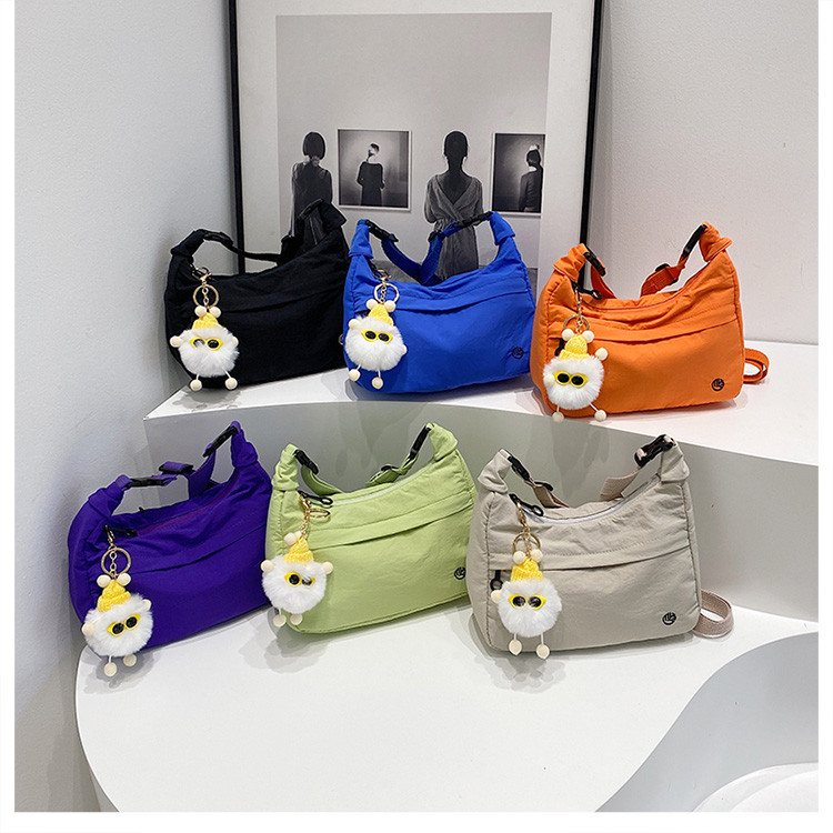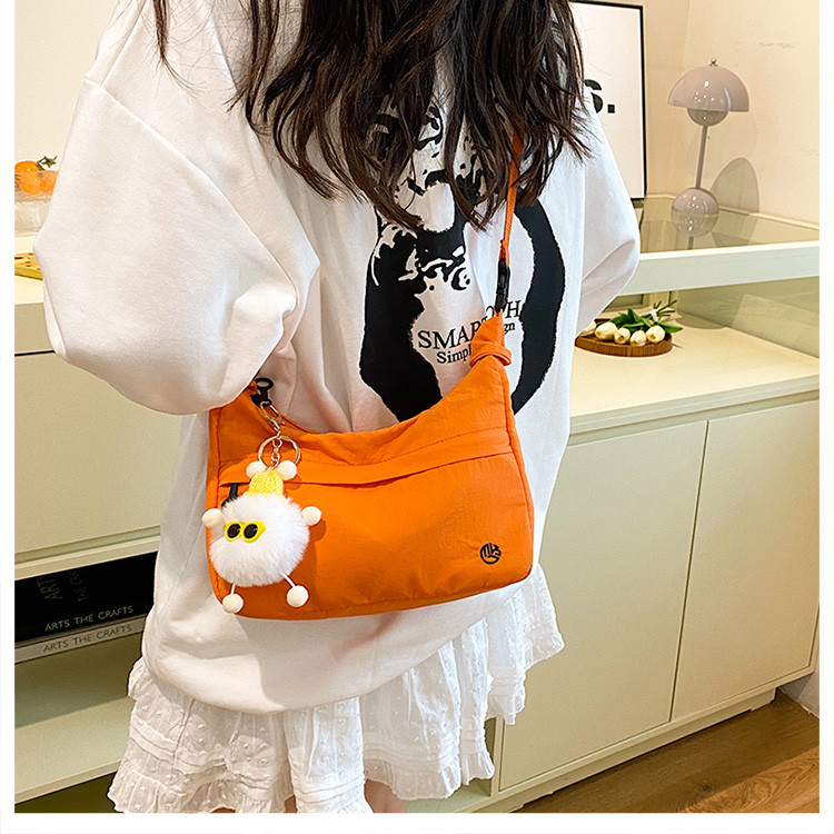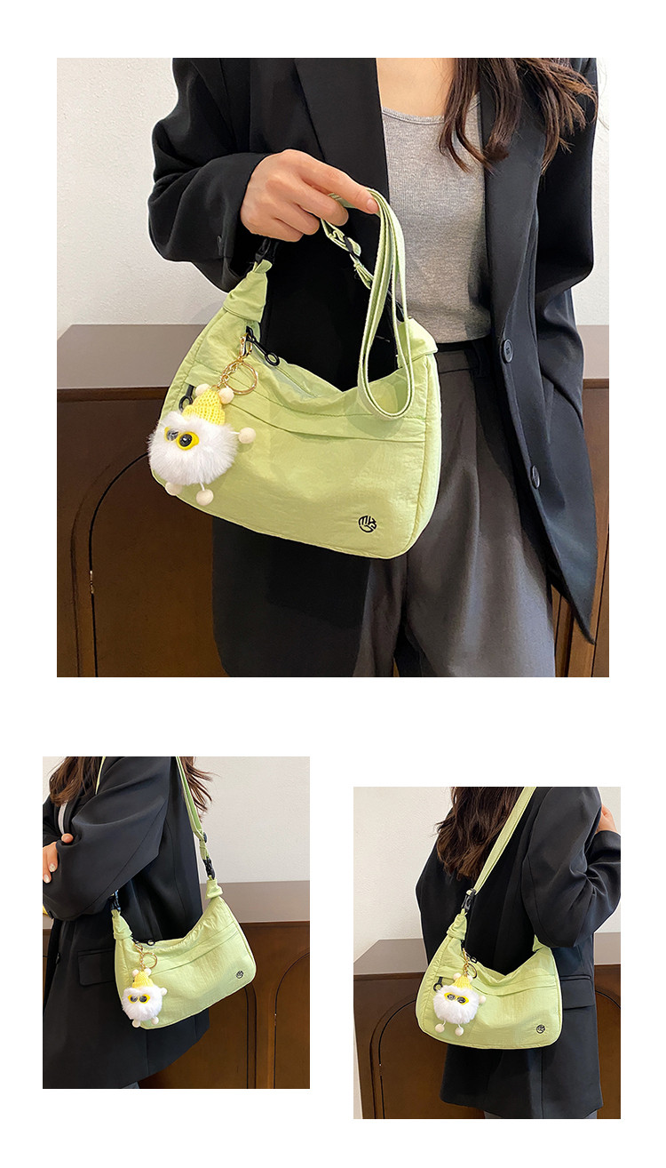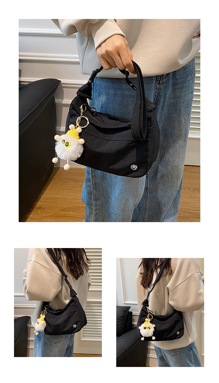 韩版轻便饺子包女2025新款日系单肩手提包尼龙布纯色学生斜挎布包