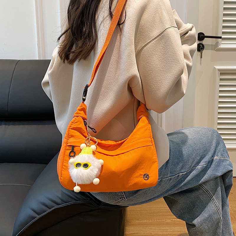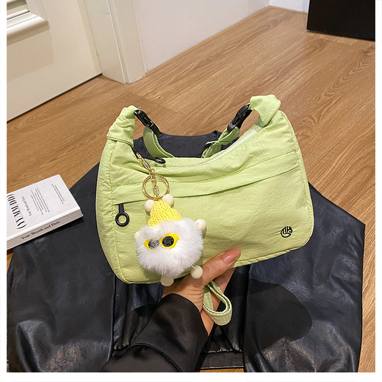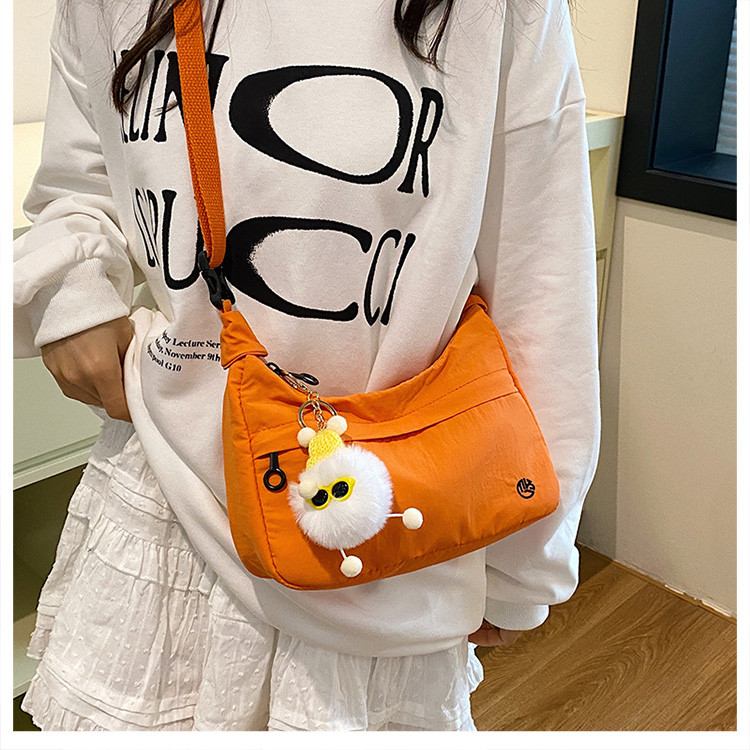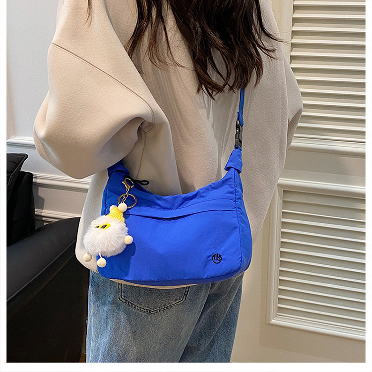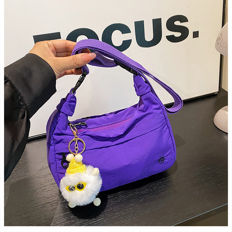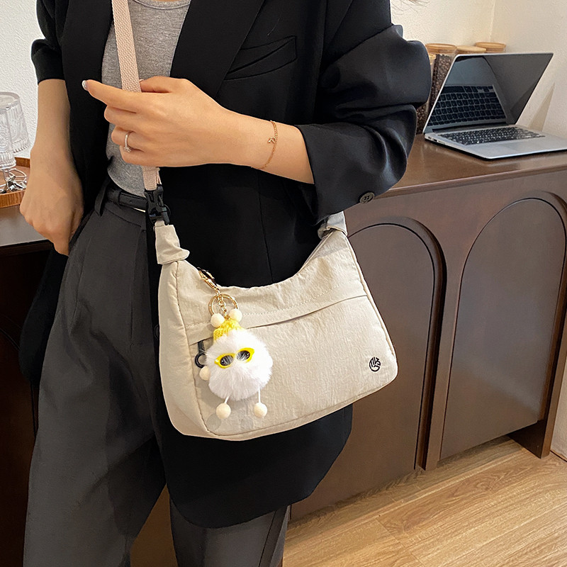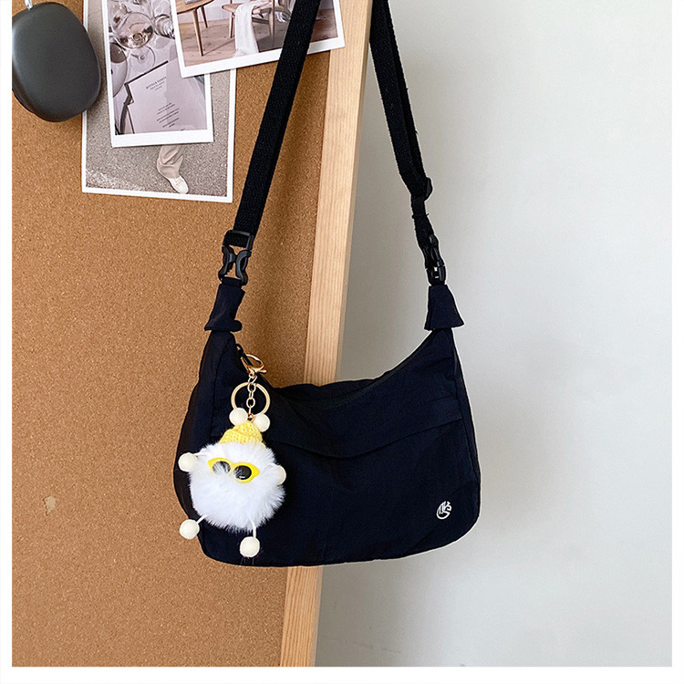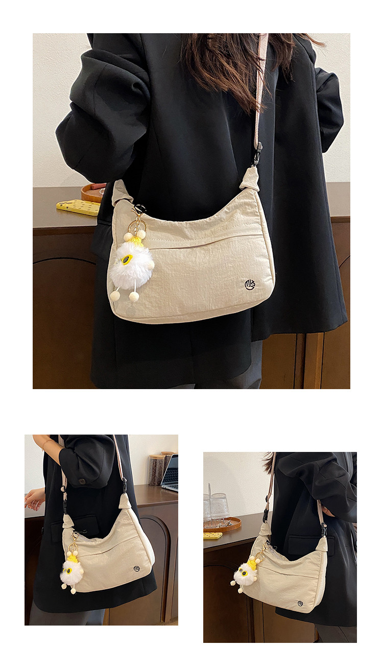 韩版轻便饺子包女2025新款日系单肩手提包尼龙布纯色学生斜挎布包