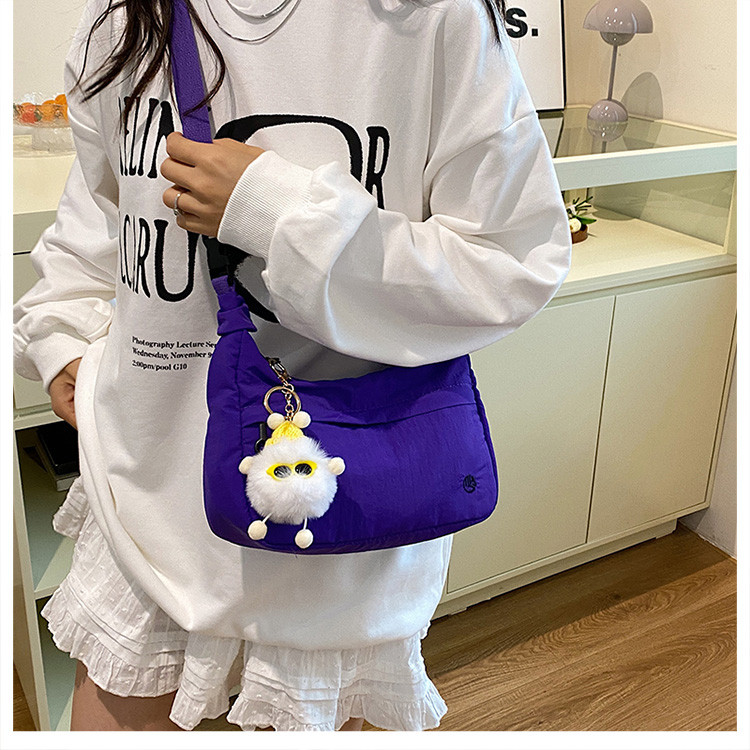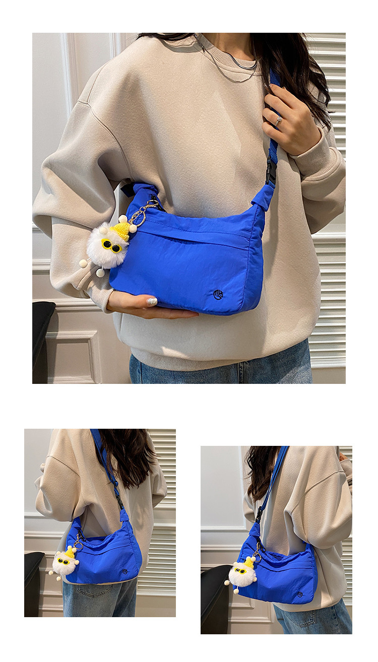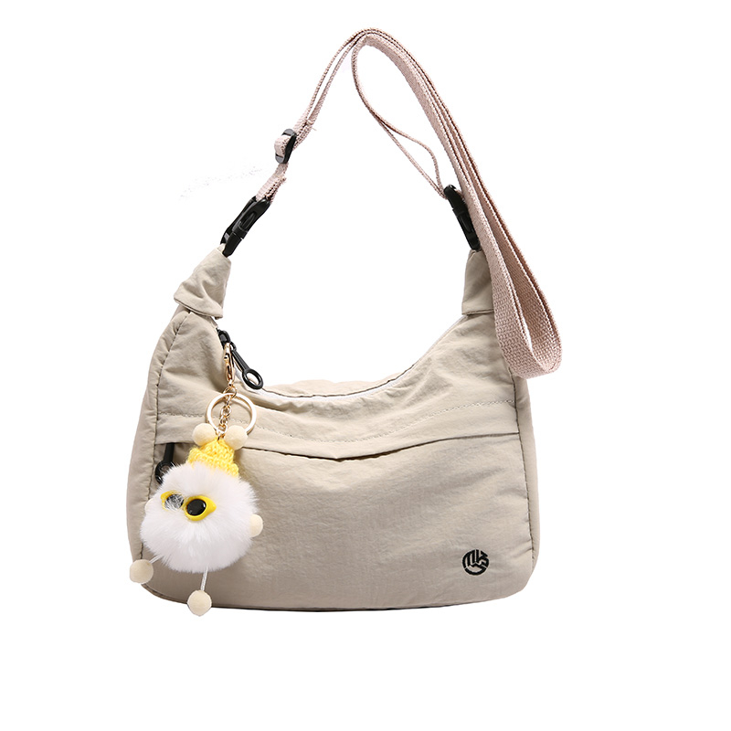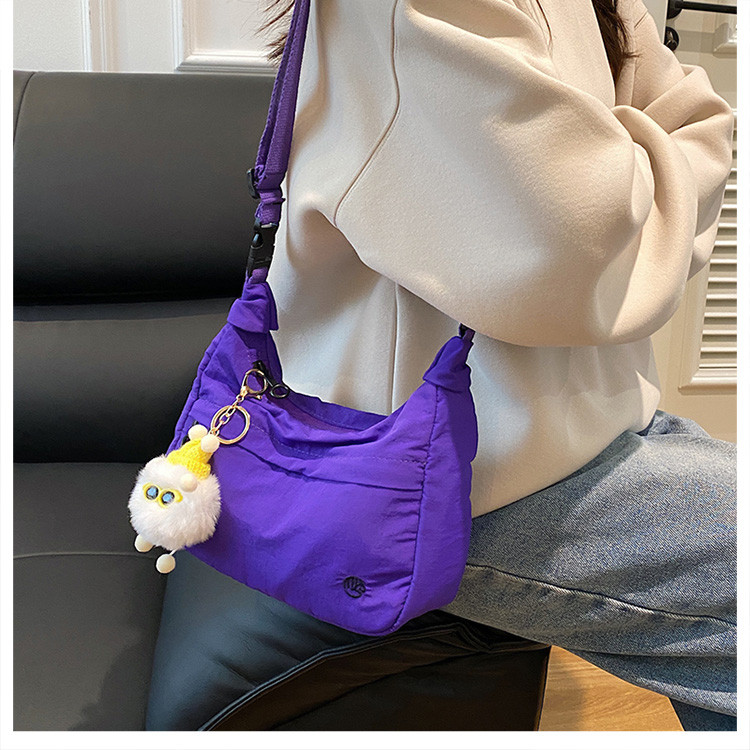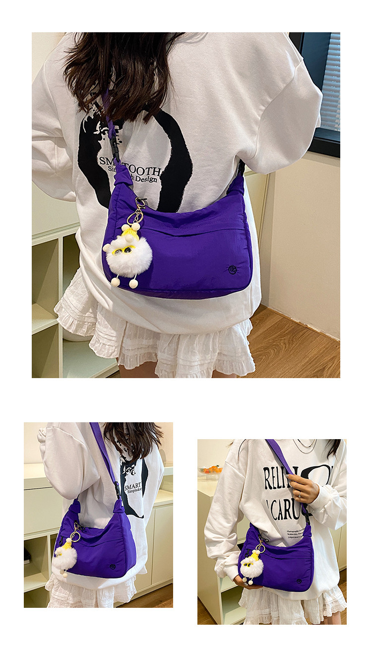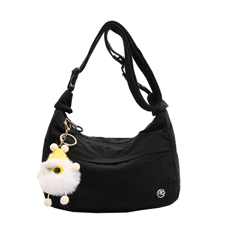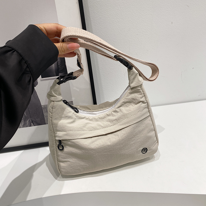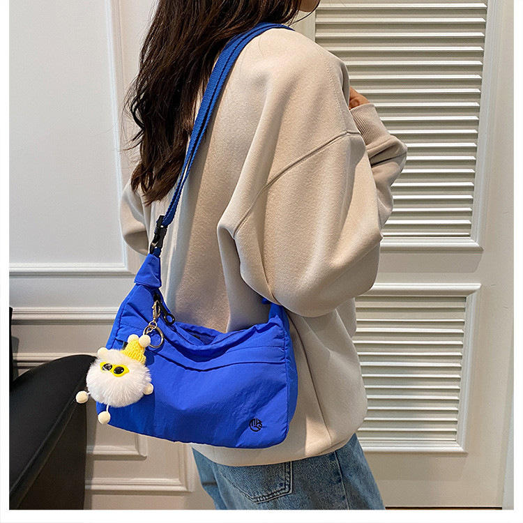 韩版轻便饺子包女2025新款日系单肩手提包尼龙布纯色学生斜挎布包
