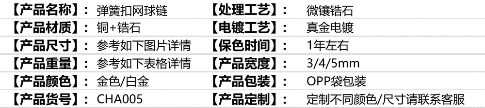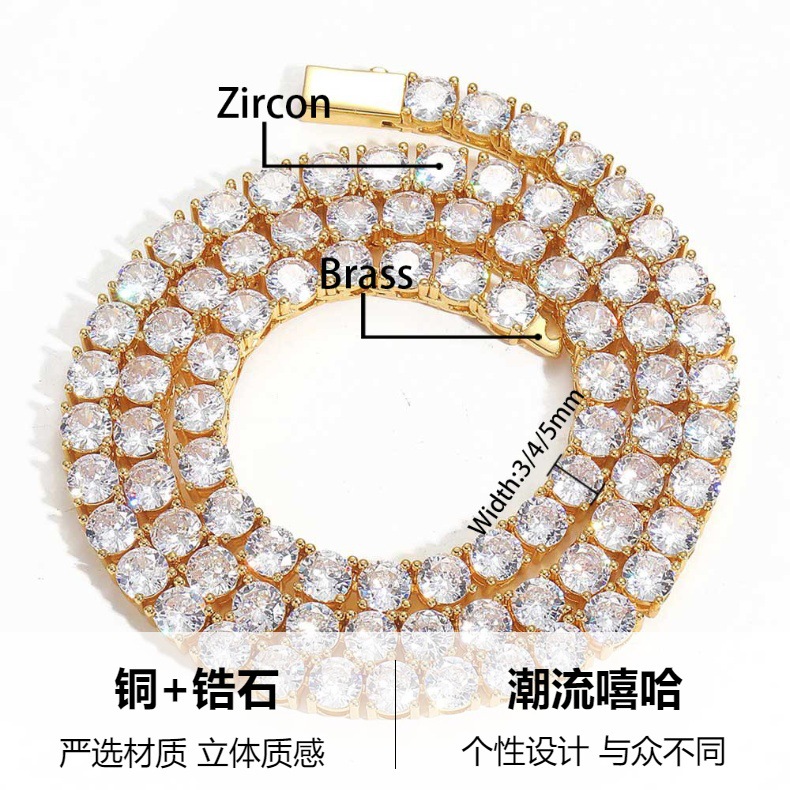 欧美跨境热卖配饰弹簧扣网球链锆石项链嘻哈饰品满钻男士项链批发