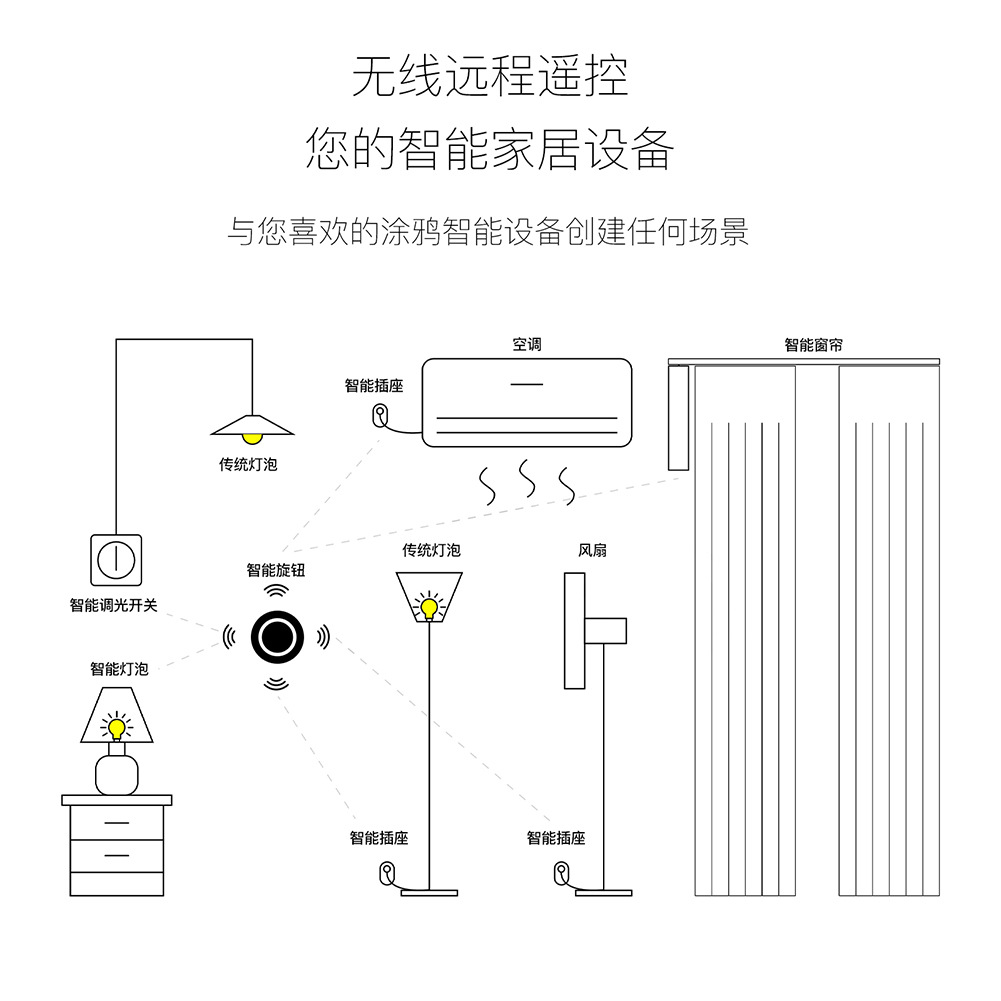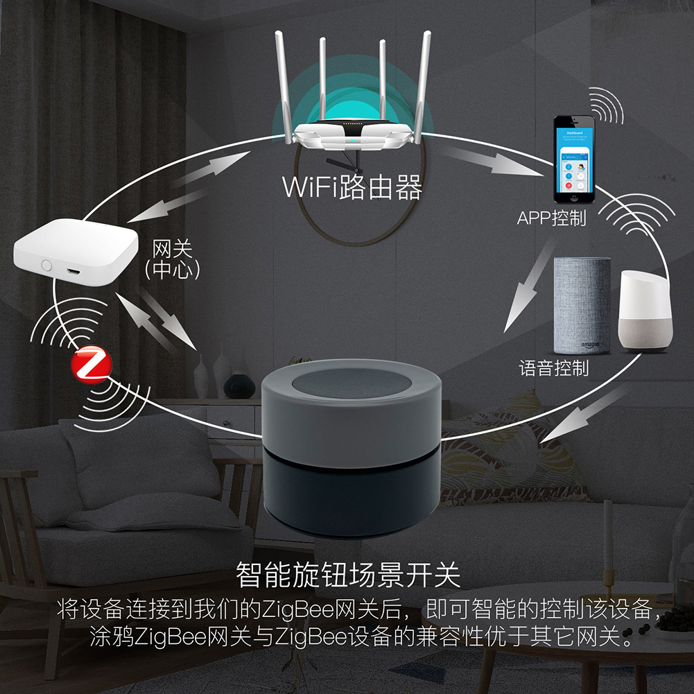 涂鸦zigbee智能开关app定时无线旋钮按键调光智能家居场景开关
