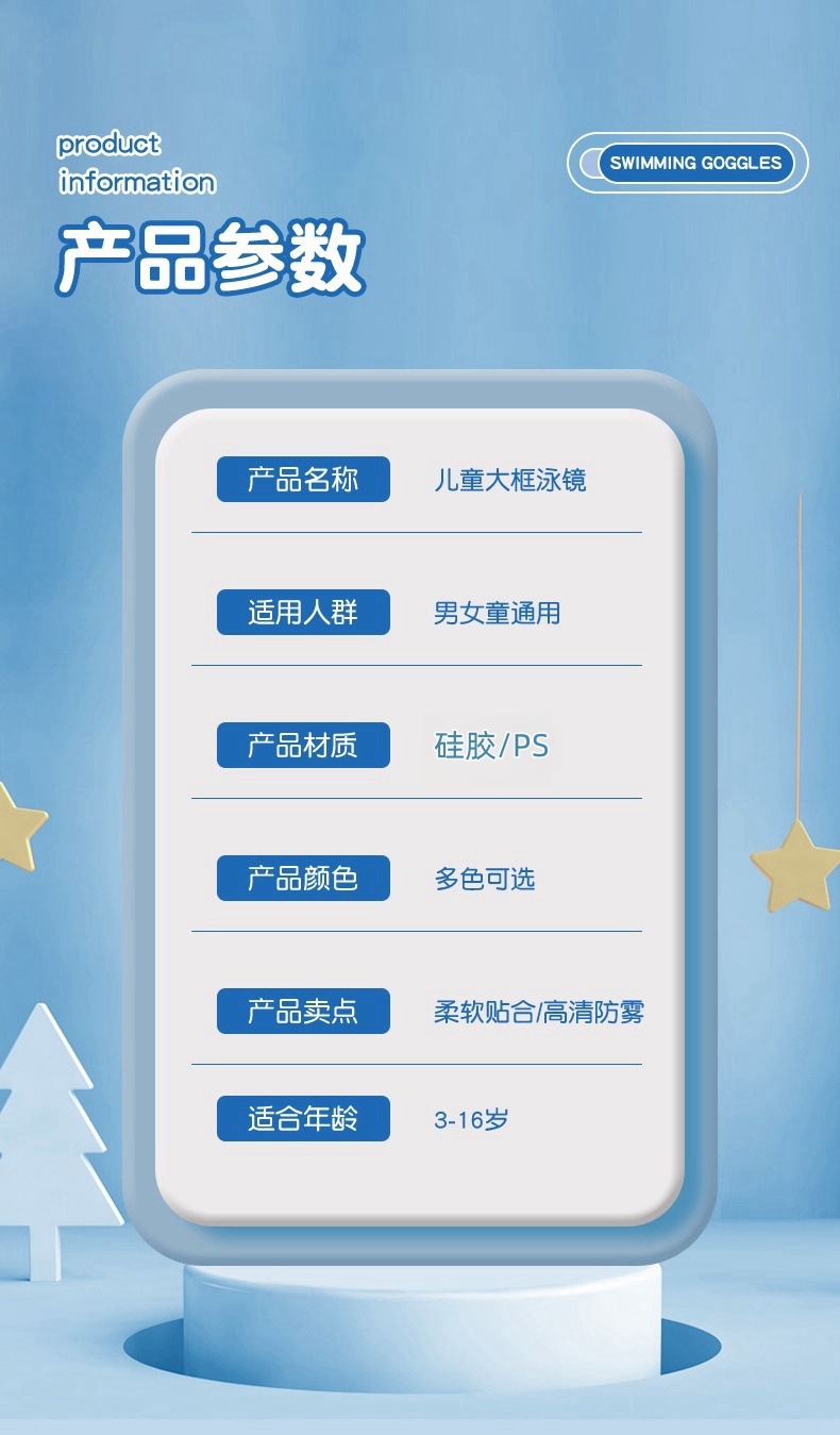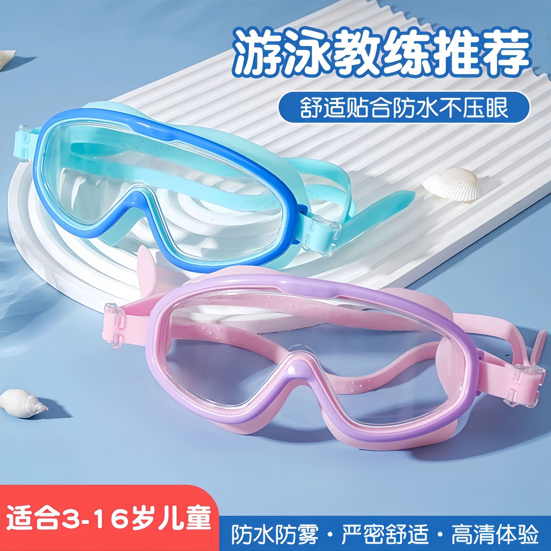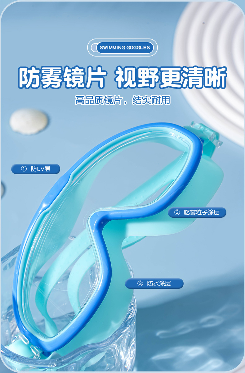 儿童游泳眼镜男女学生高清泳镜防雾防水潜水一体镜泳帽时尚耐用护