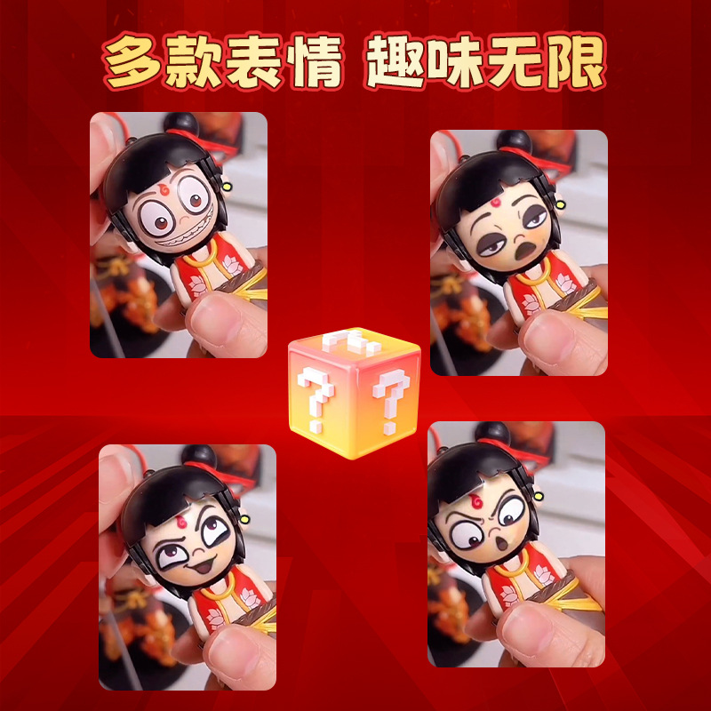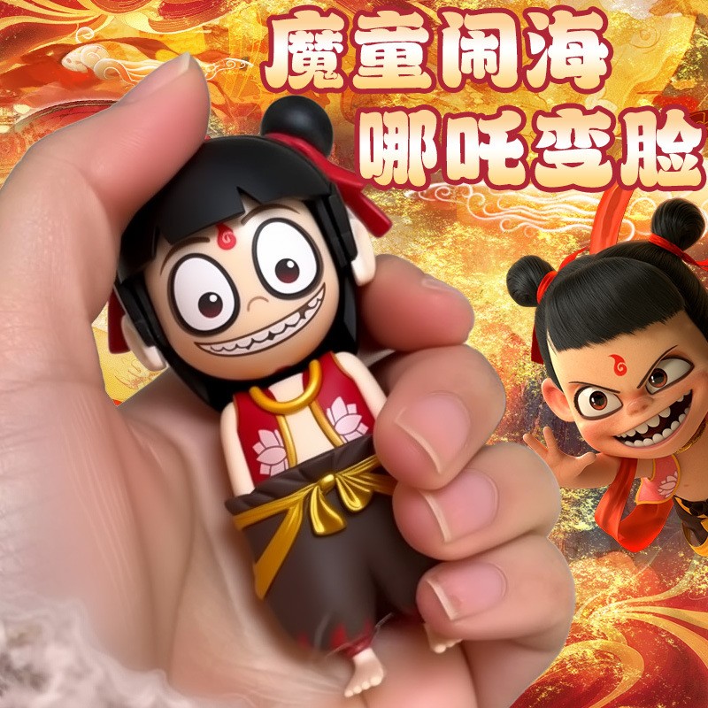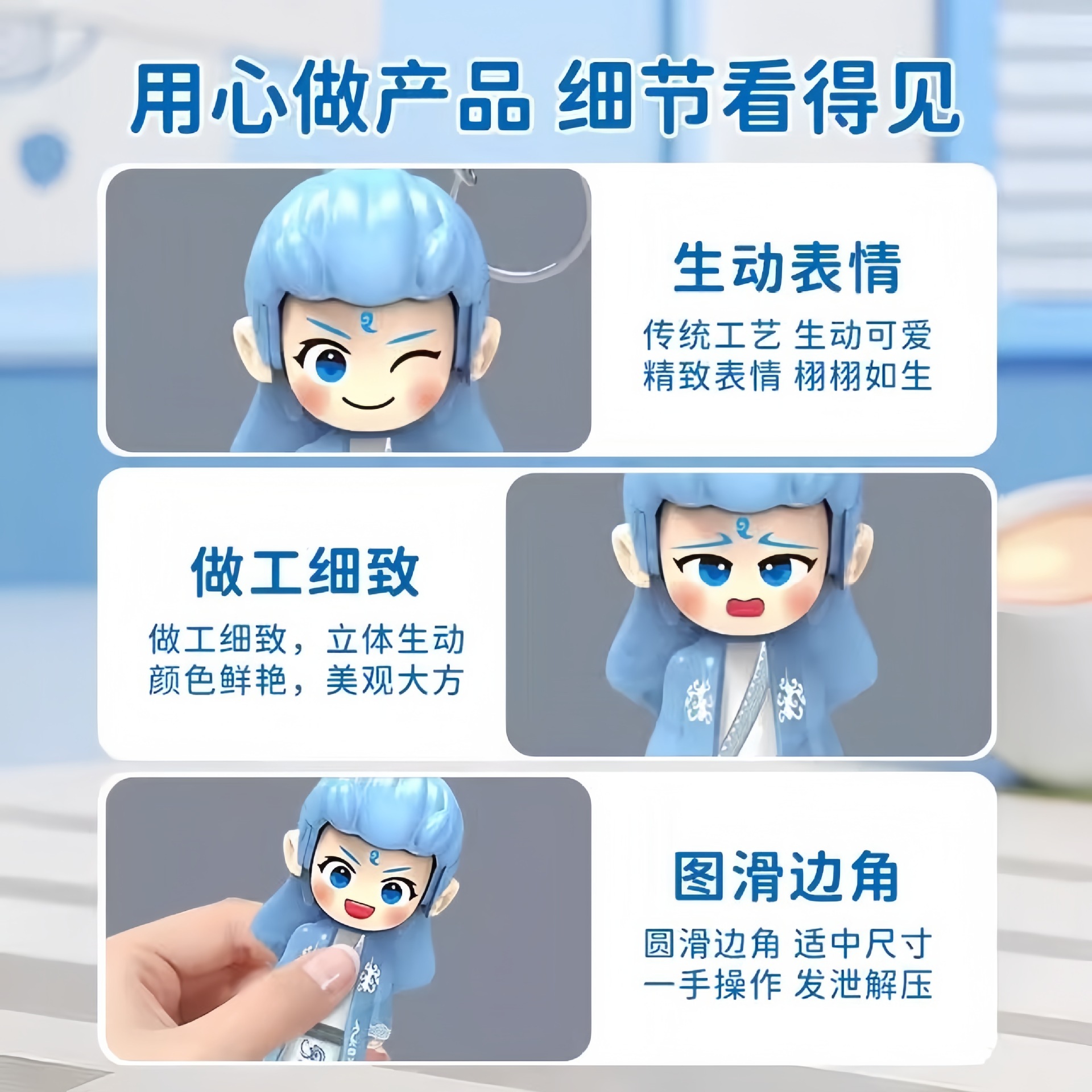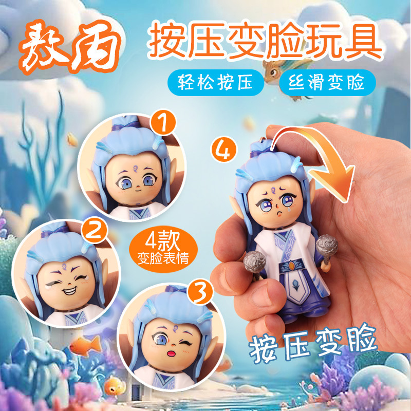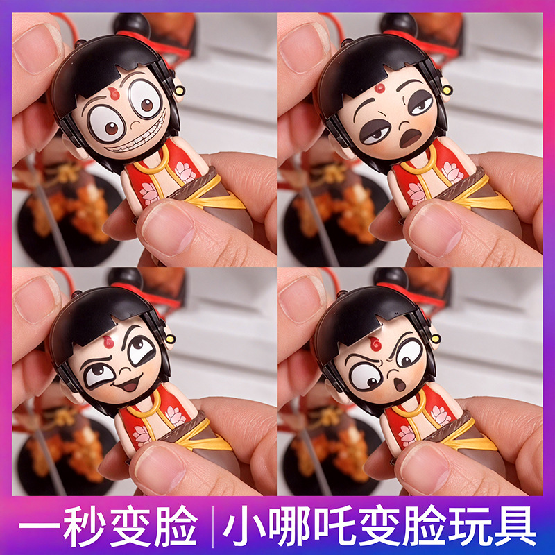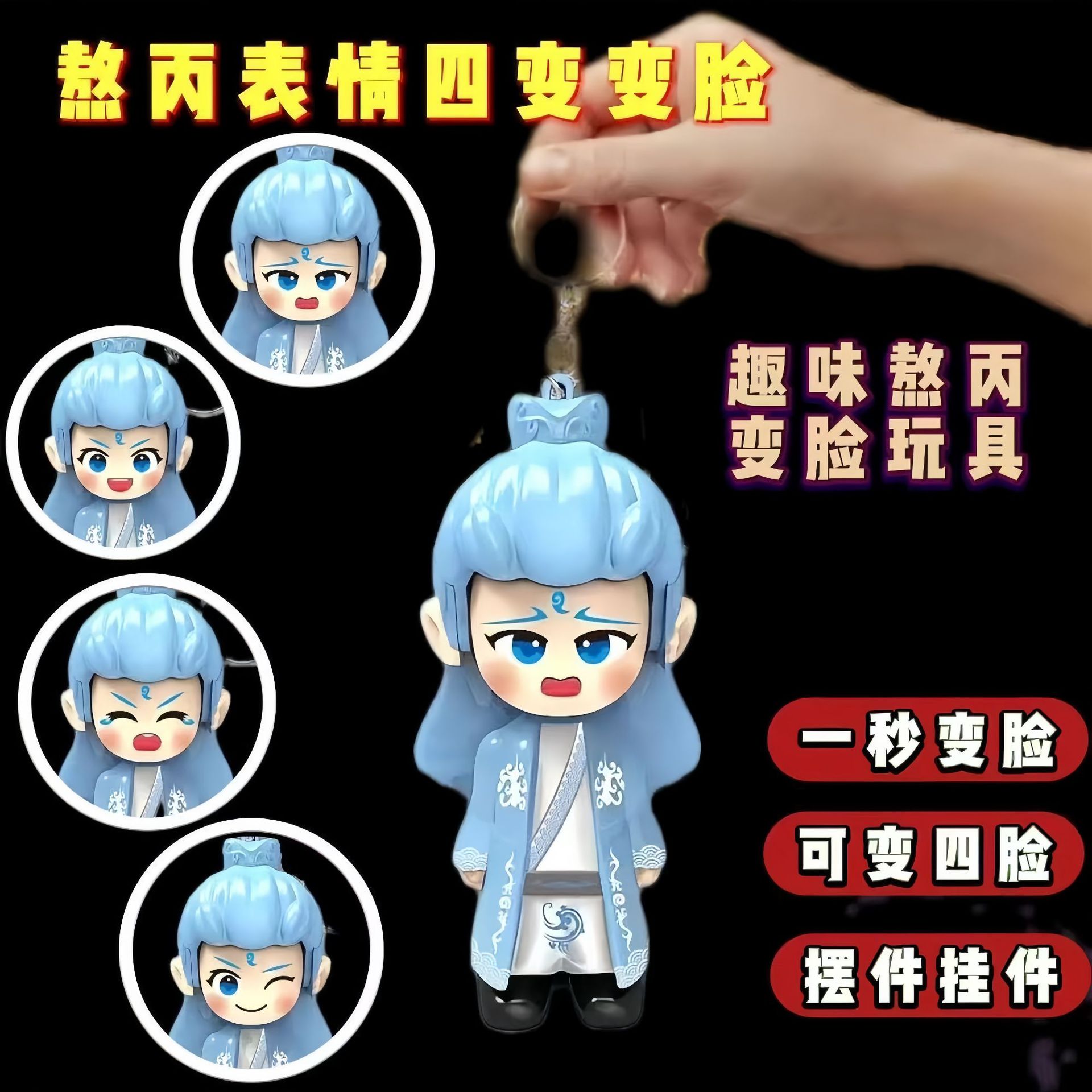 抖音爆款变脸玩具闹海敖丙按压变脸娃娃钥匙扣挂件小玩具