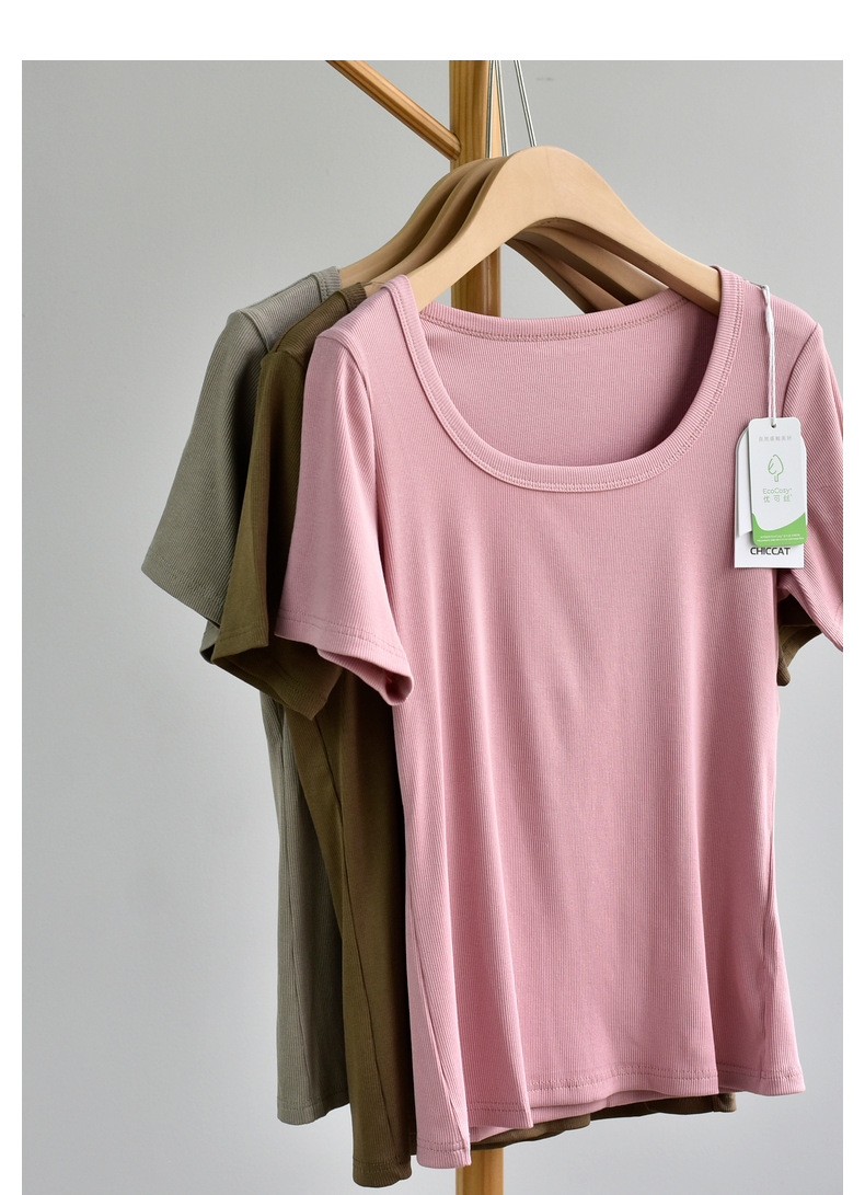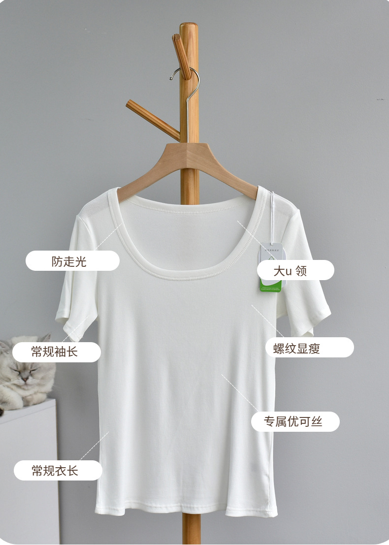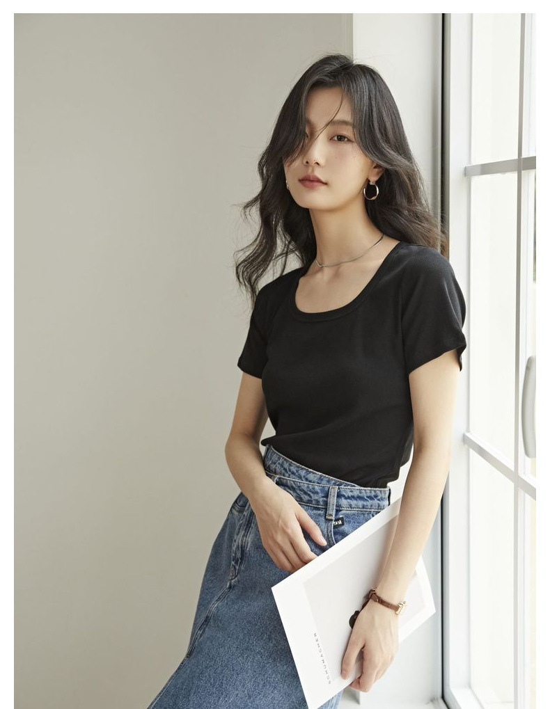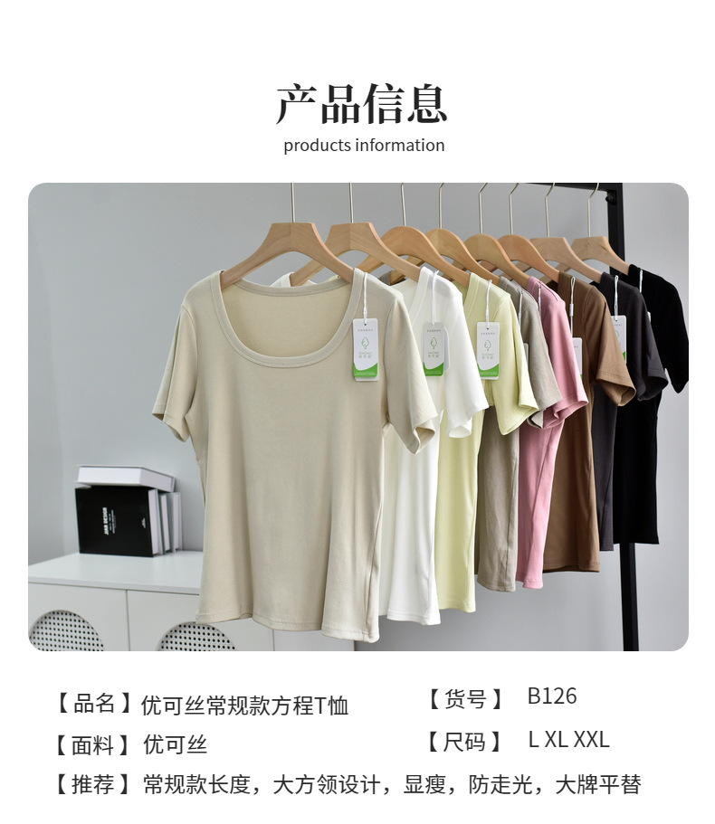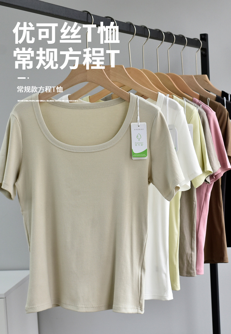 【方程T】夏新款女装螺纹棉优可丝新品质感大码U 领显瘦方程T恤女