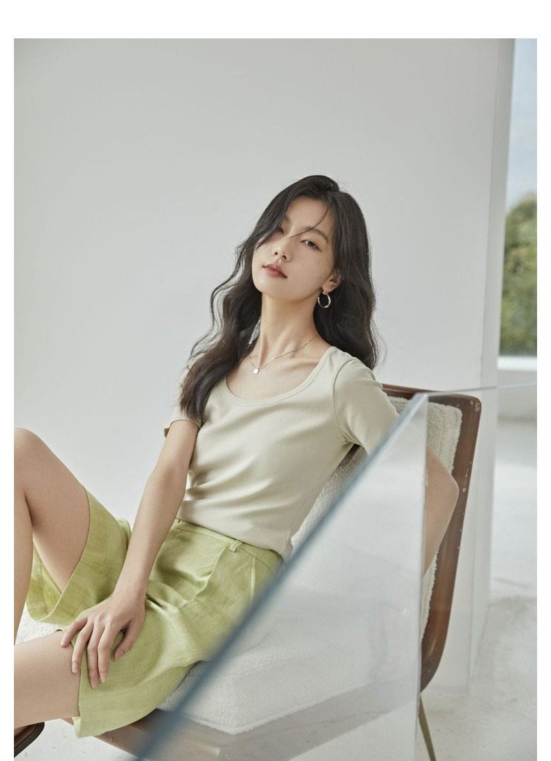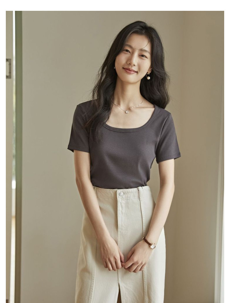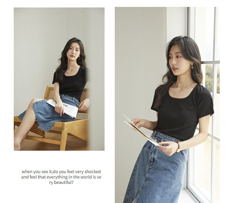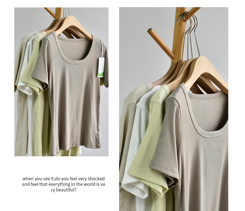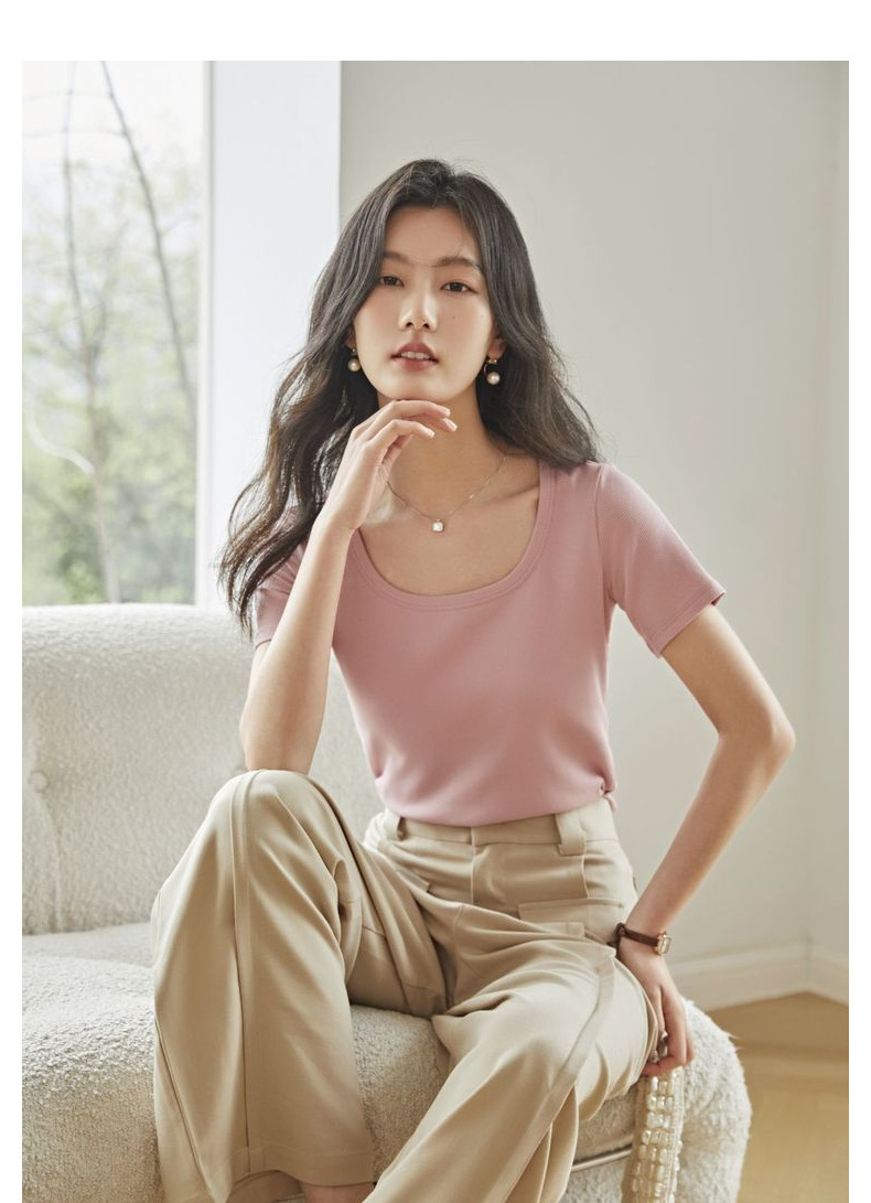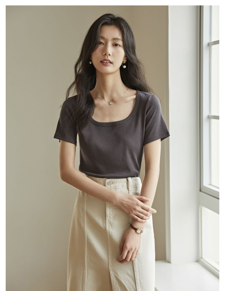 【方程T】夏新款女装螺纹棉优可丝新品质感大码U 领显瘦方程T恤女