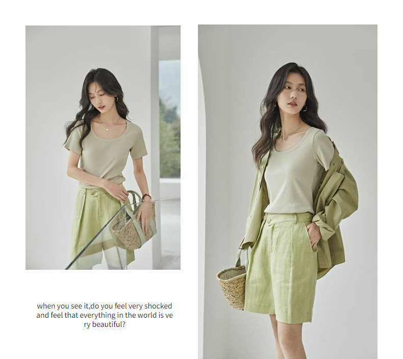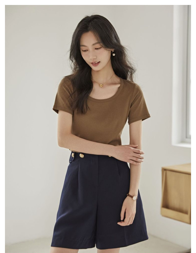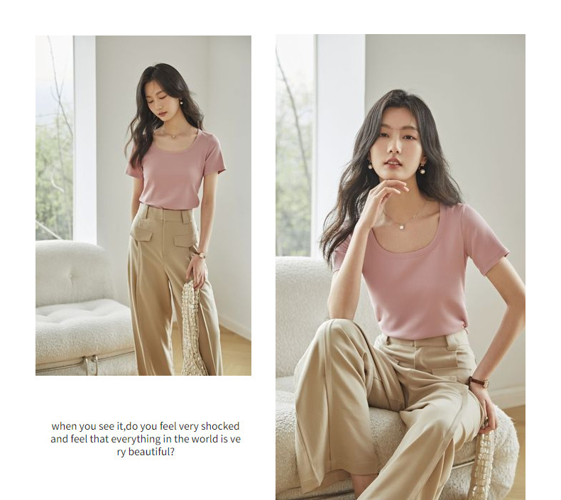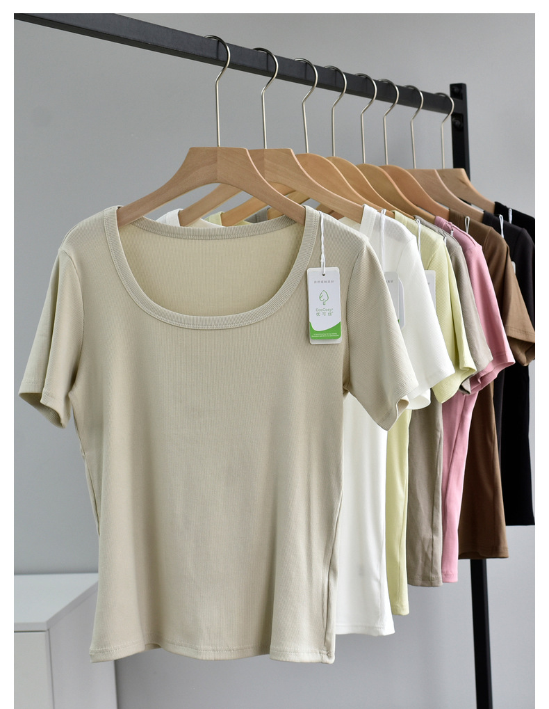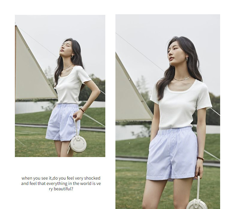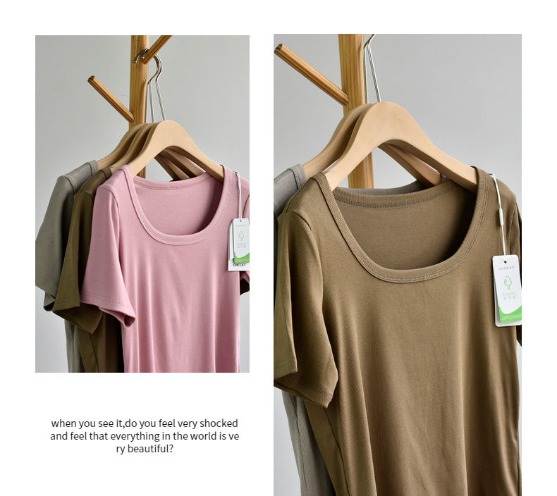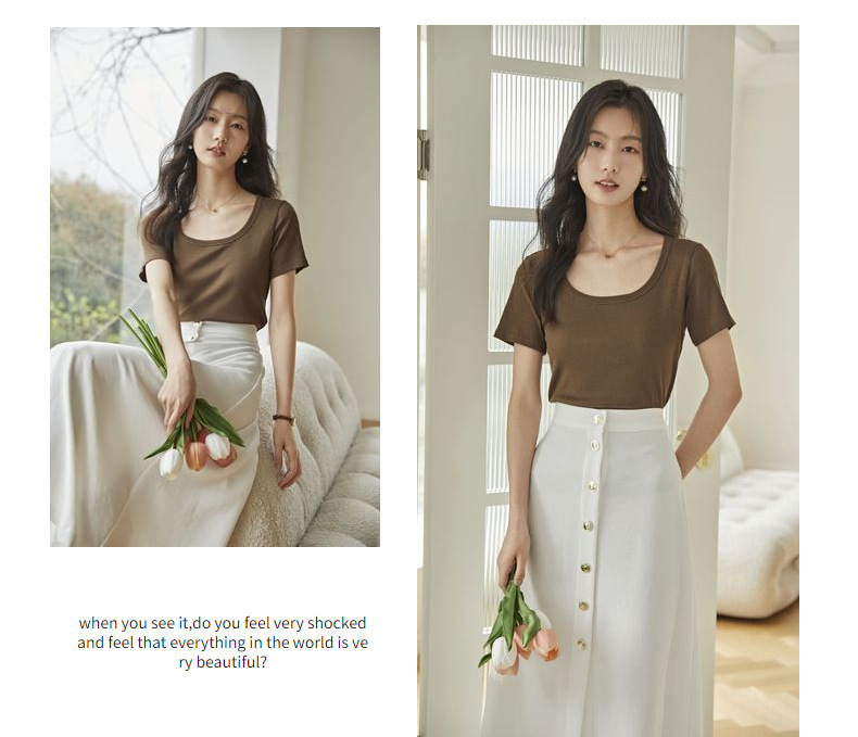 【方程T】夏新款女装螺纹棉优可丝新品质感大码U 领显瘦方程T恤女
