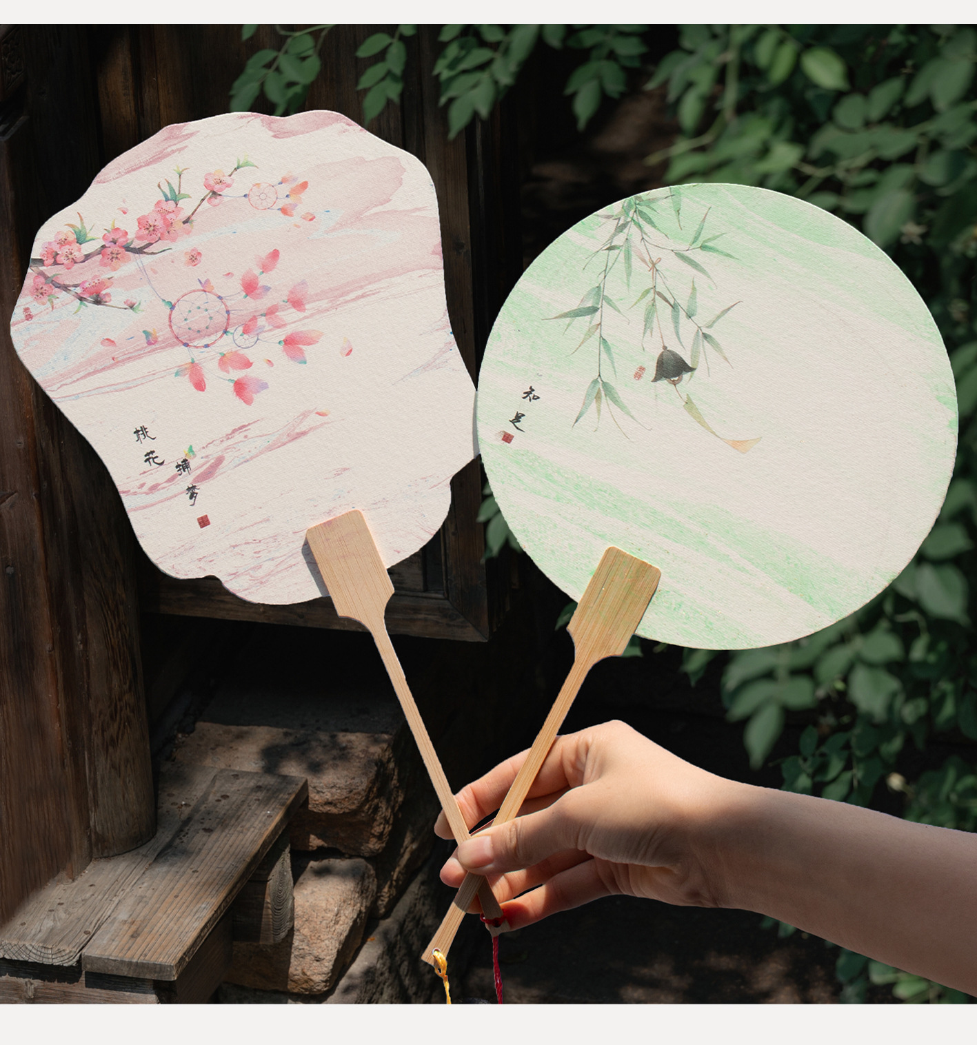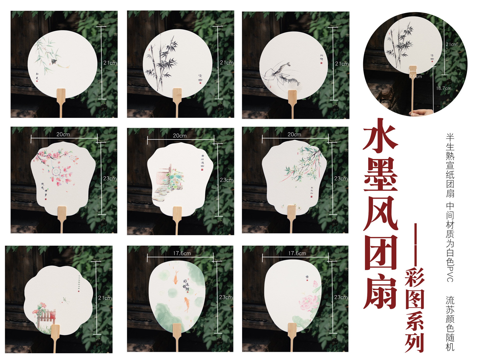 水墨彩图漆扇漂漆专用pvc古风漆扇子国风漆画diy带图加厚宣纸团扇