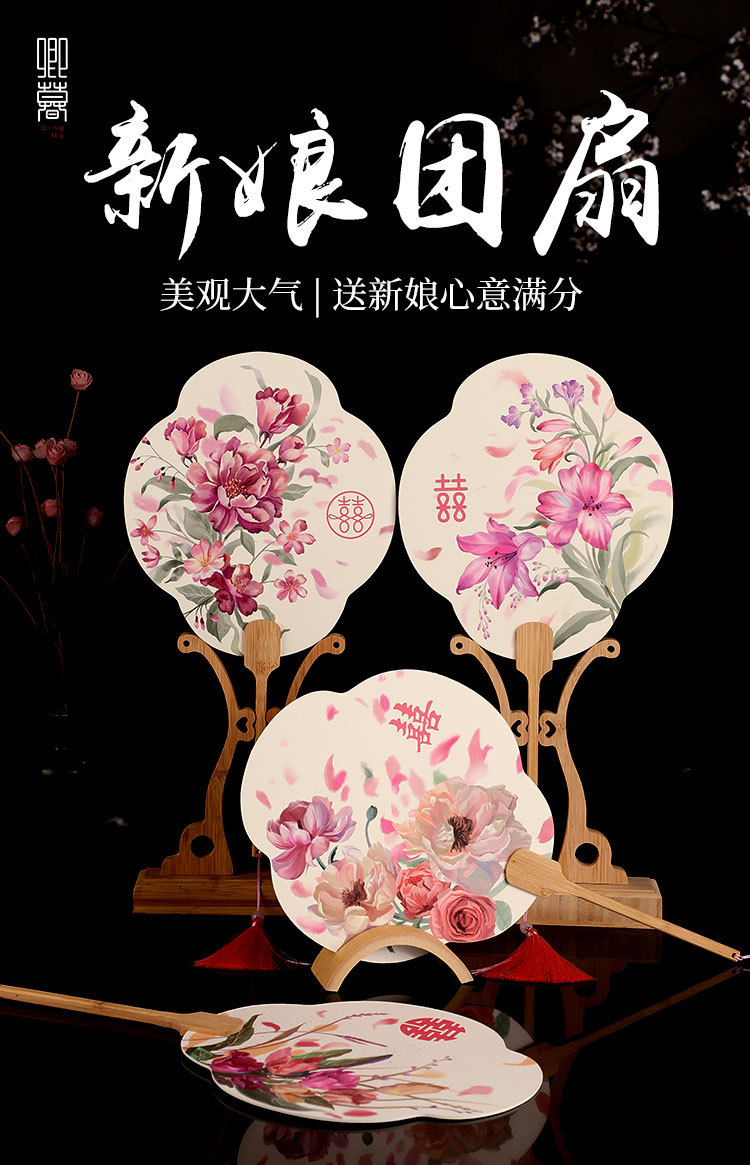 中国风新娘团扇中式结婚喜扇伴娘婚礼拍照道具出嫁汉服礼扇子批发