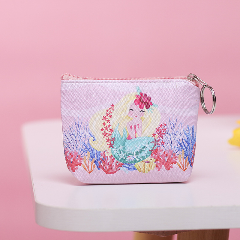 新款热销pu皮拉链零钱包硬币包 女士小钱包可爱美人鱼卡通零钱包