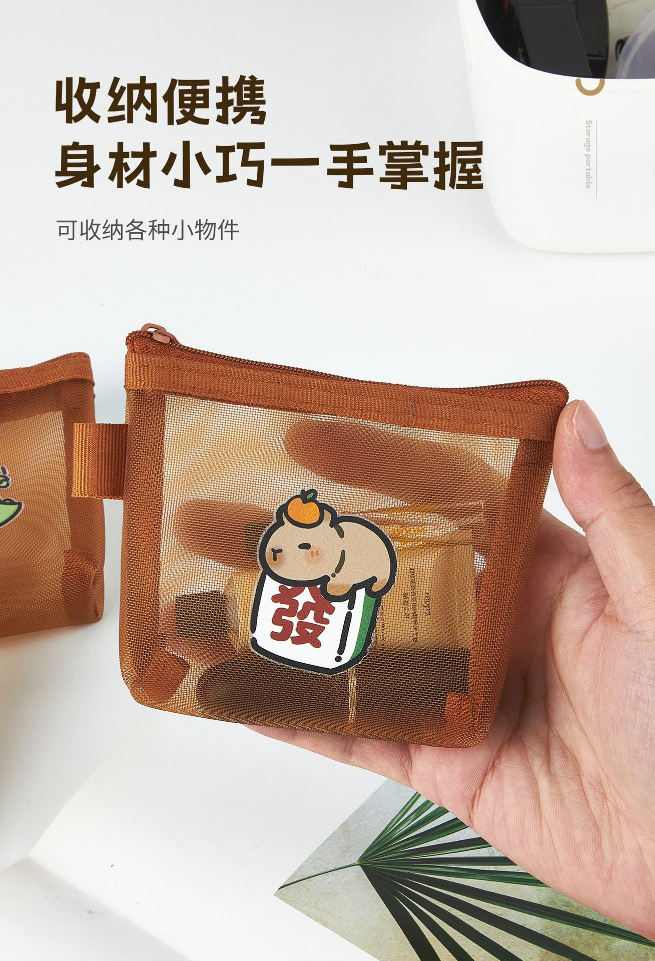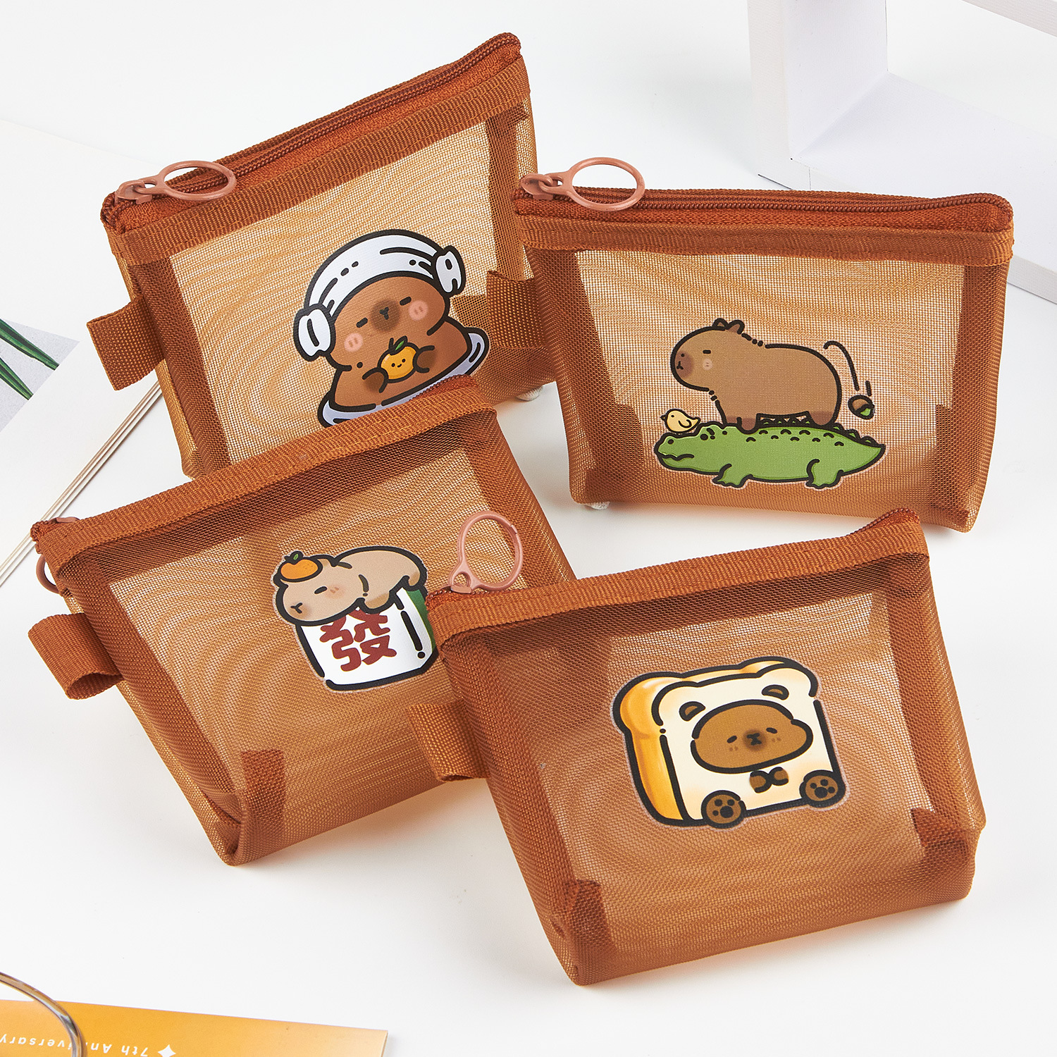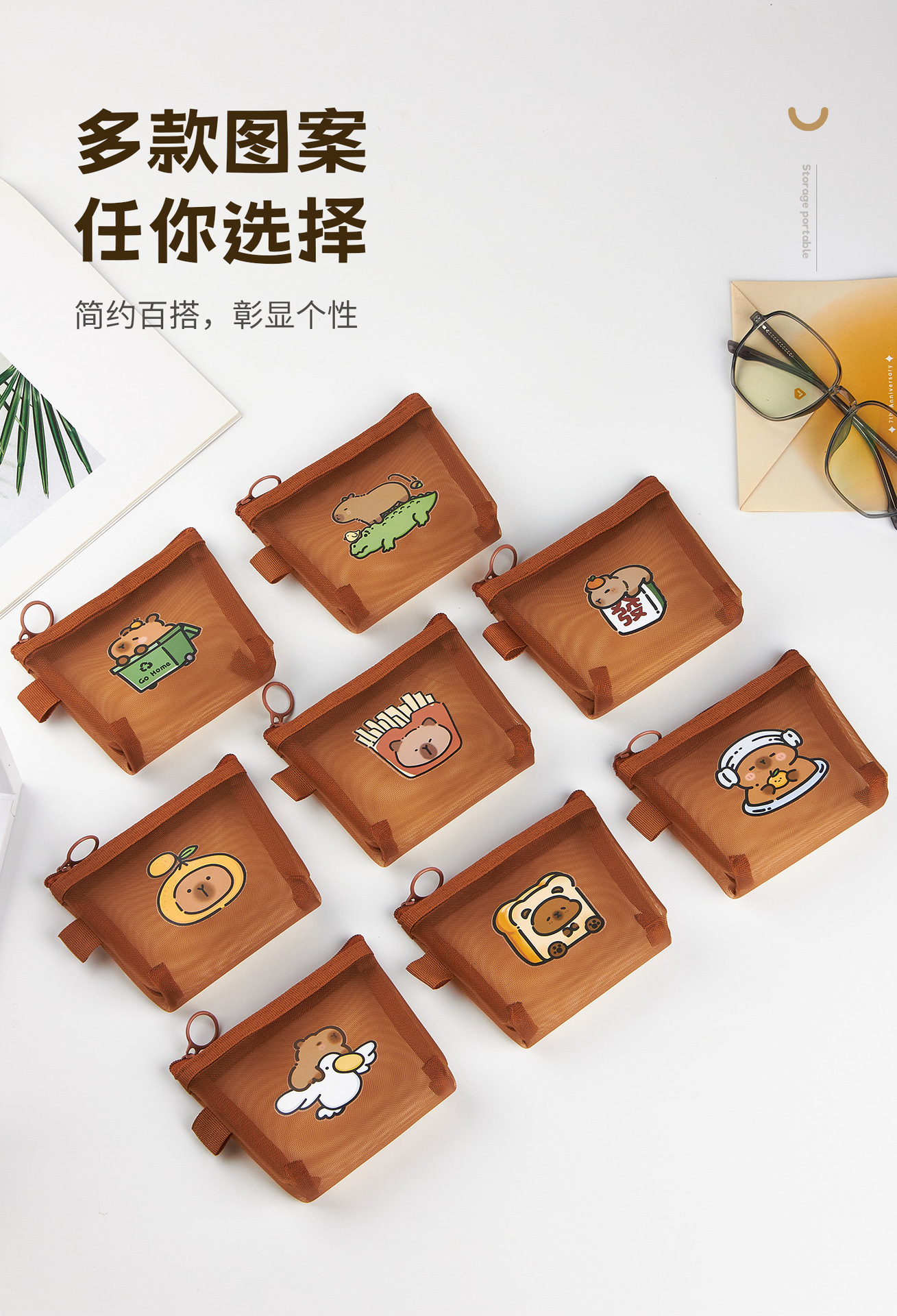卡皮巴拉零钱袋卡通可爱收纳袋透明化妆包便携耳机卡片收纳钥匙包