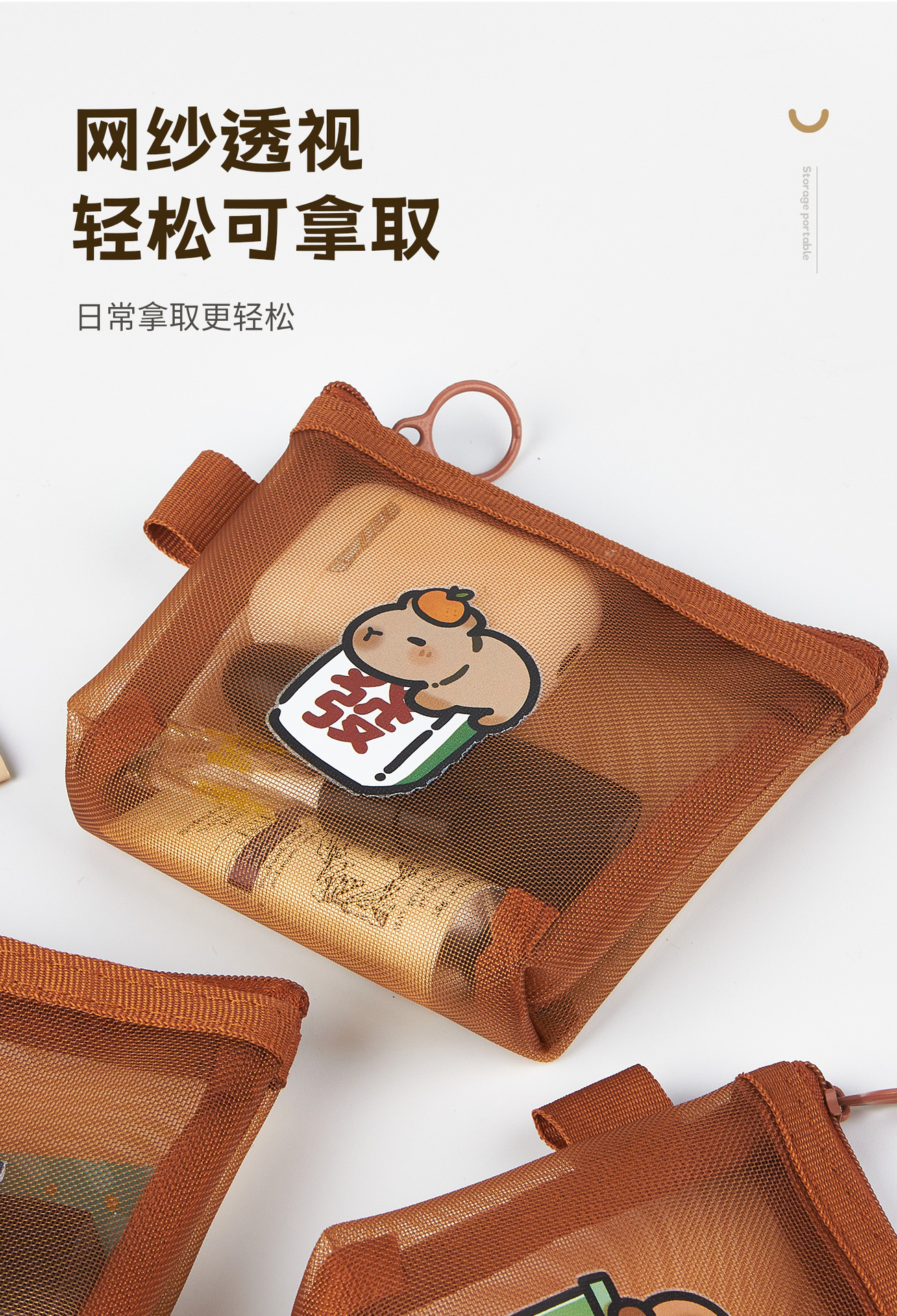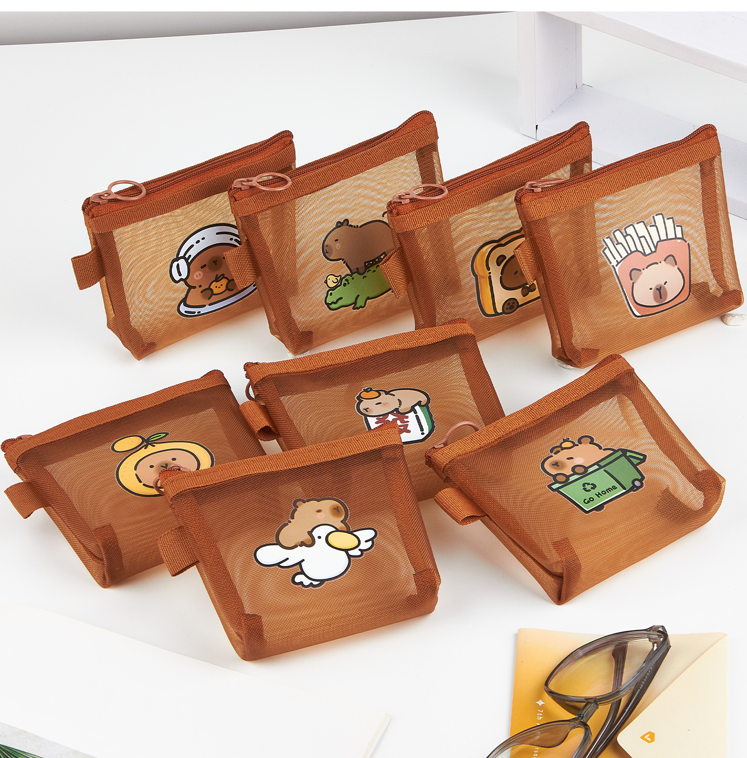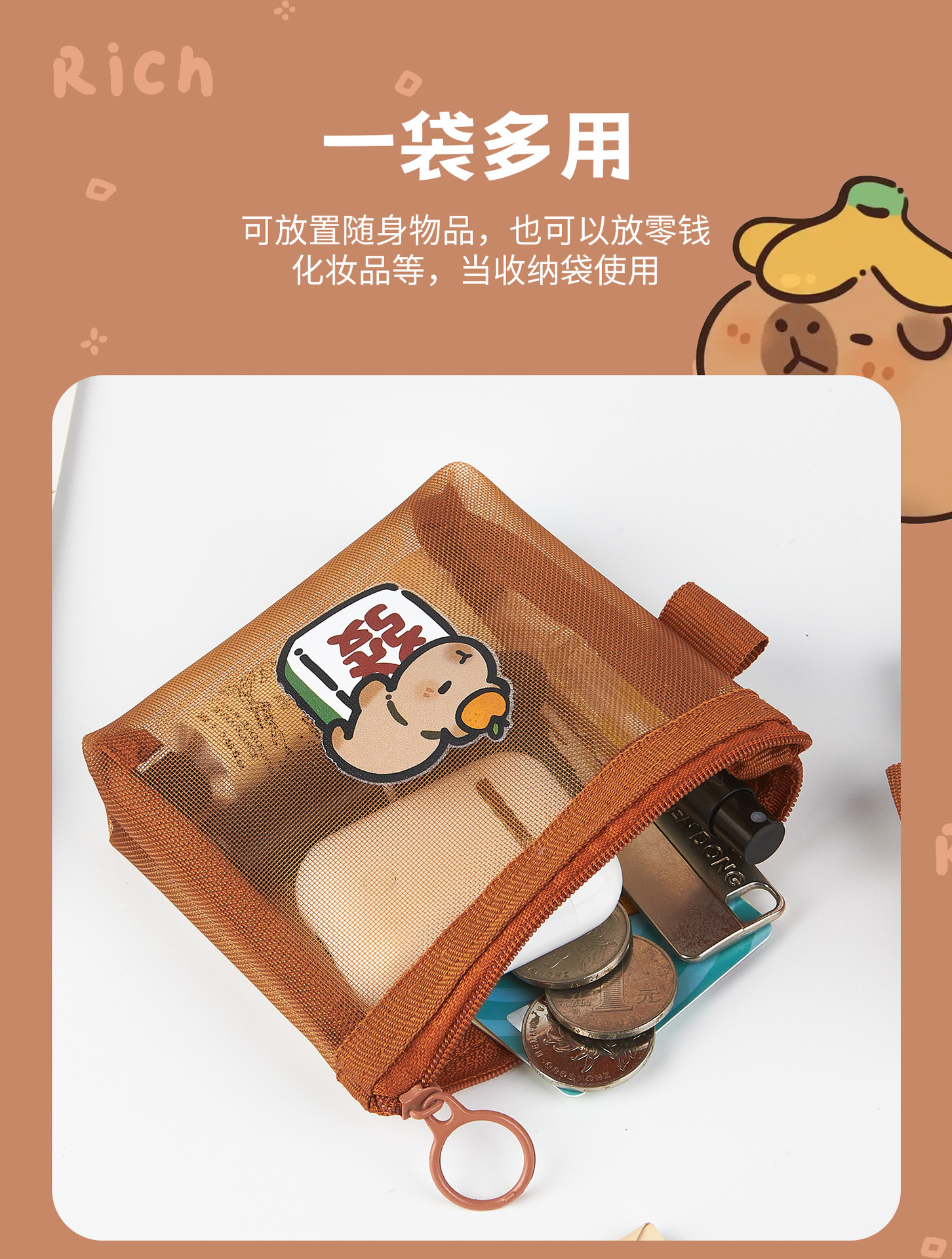 卡皮巴拉零钱袋卡通可爱收纳袋透明化妆包便携耳机卡片收纳钥匙包