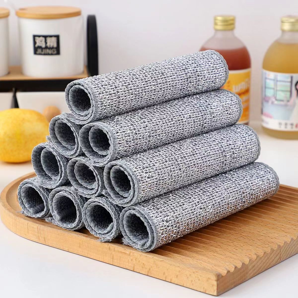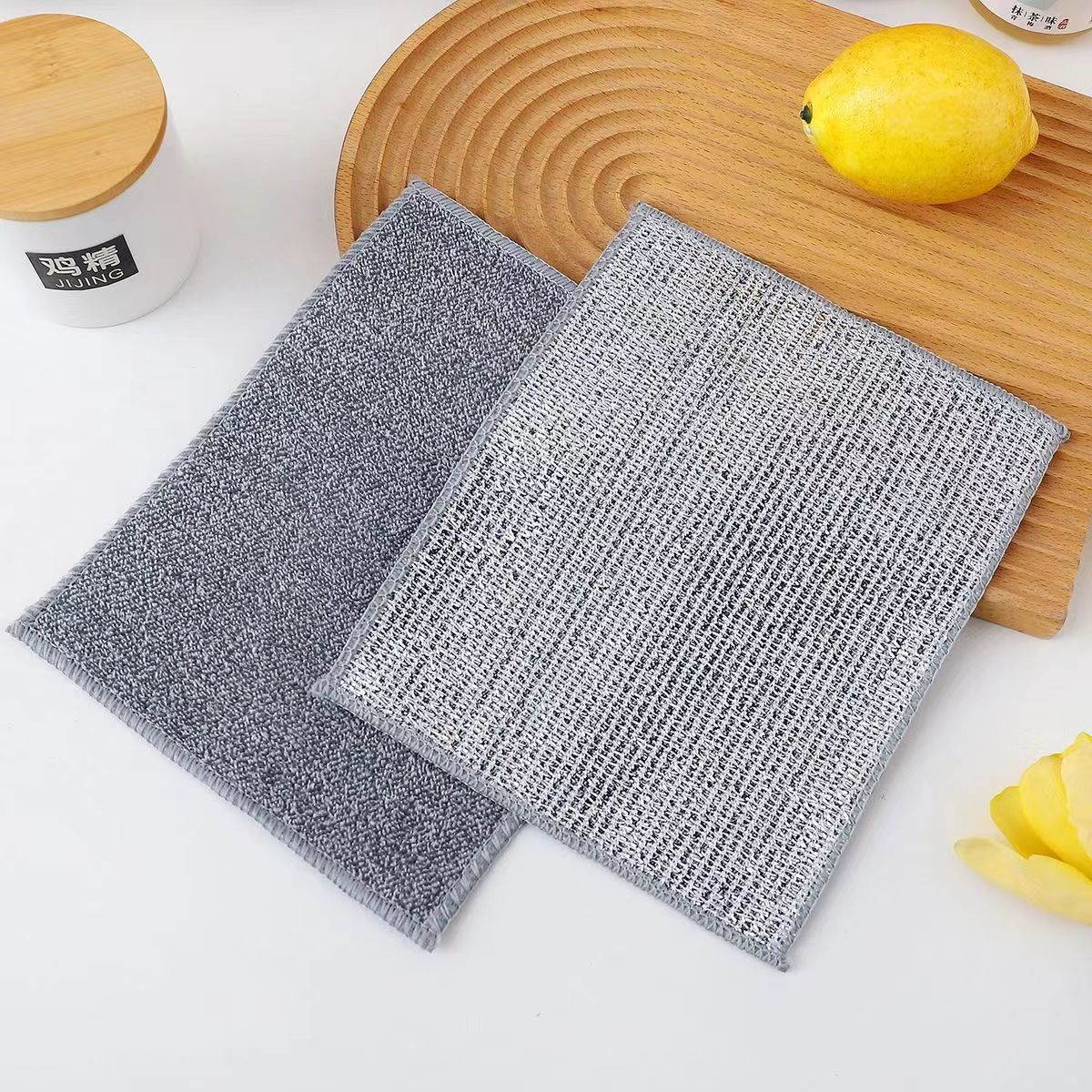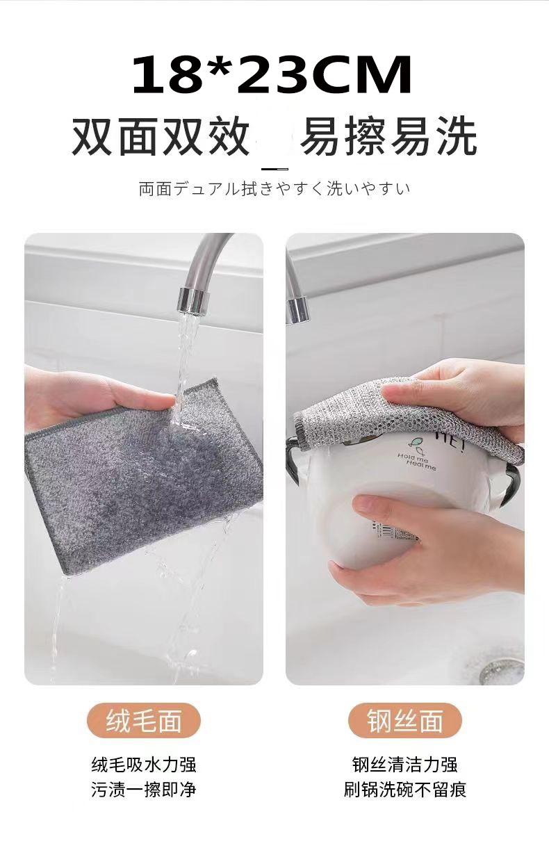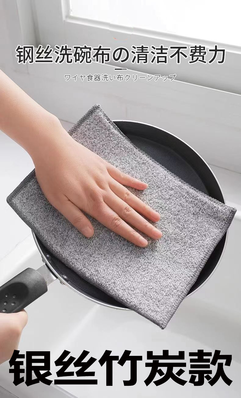 双层竹炭银丝洗碗布家用灶台洗锅不沾油去污渍三层钢丝洗碗巾抹布