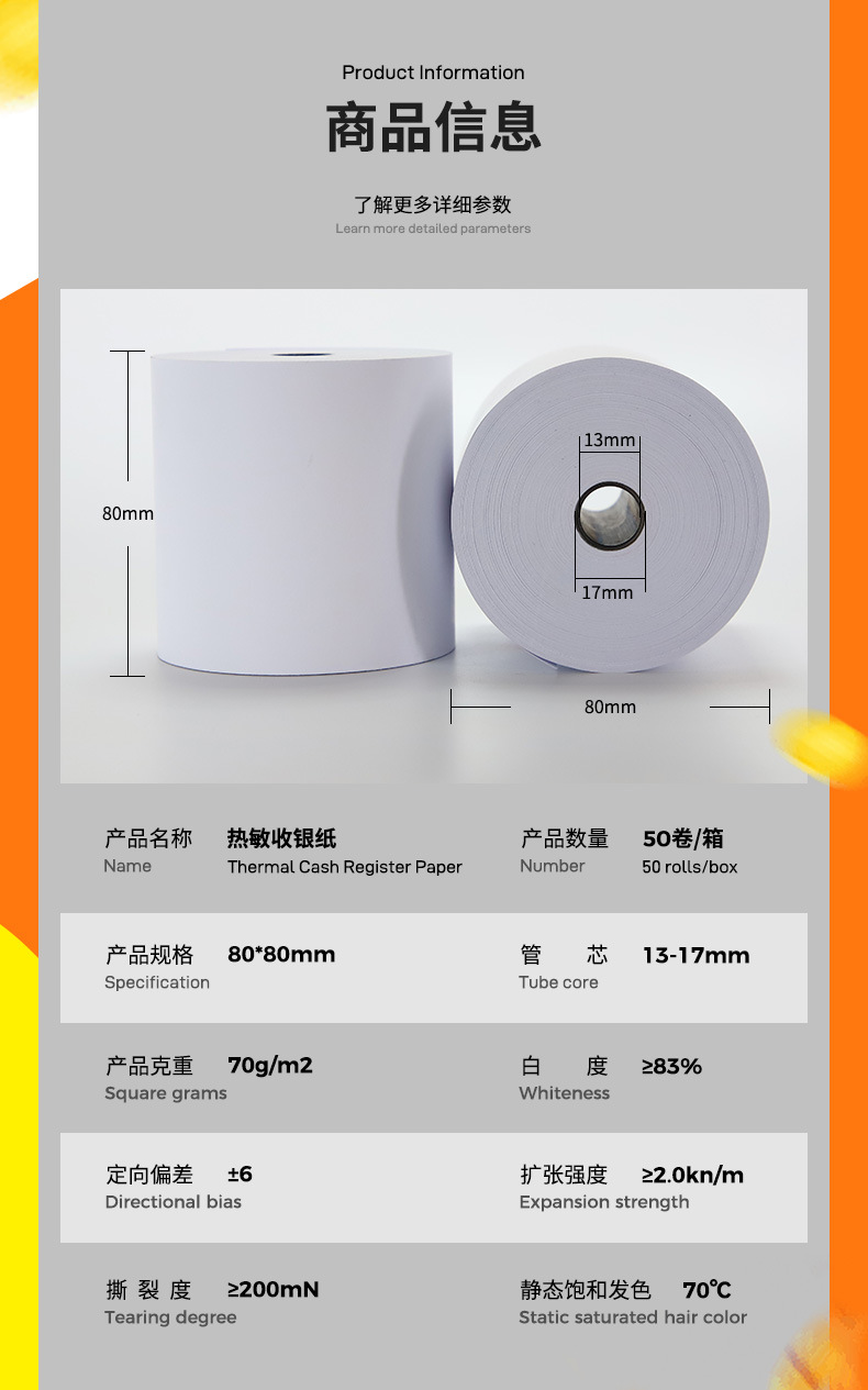 热敏收银纸80*80超市收银纸80mm 餐饮美团收银纸80×80热敏纸8080