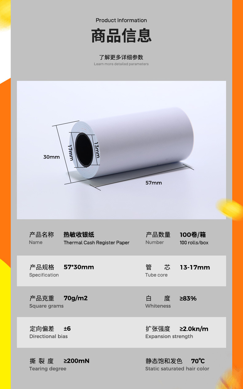 热敏收银纸57x30mm热敏打印纸小卷纸 超市收银纸5730凭证纸57mm