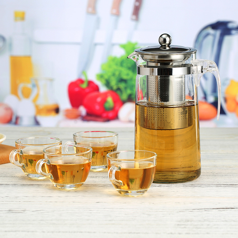 简约玻璃泡茶壶五件套厂家批发大容量茶具套装带彩盒年底活动礼品