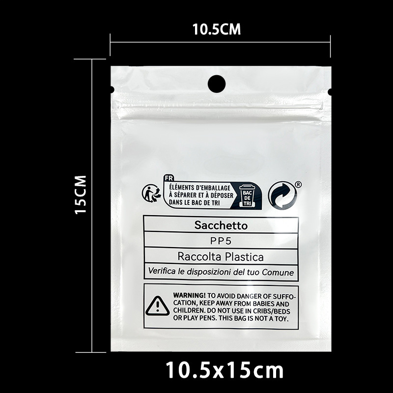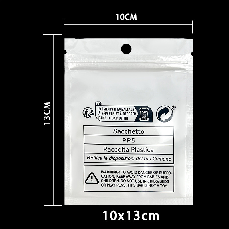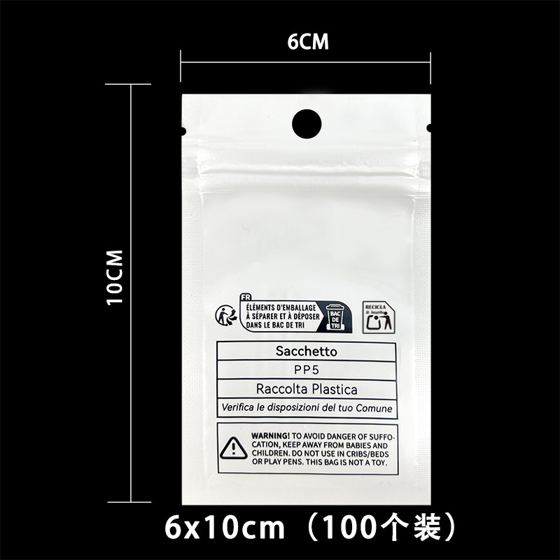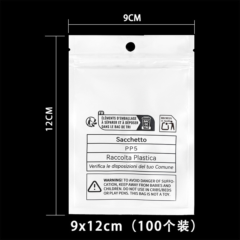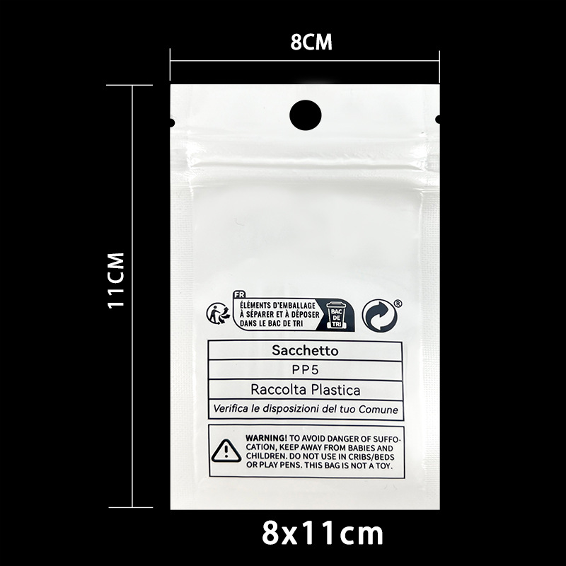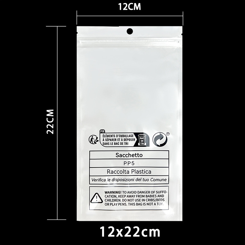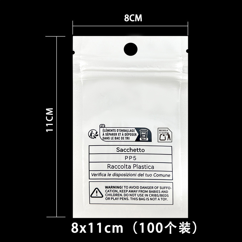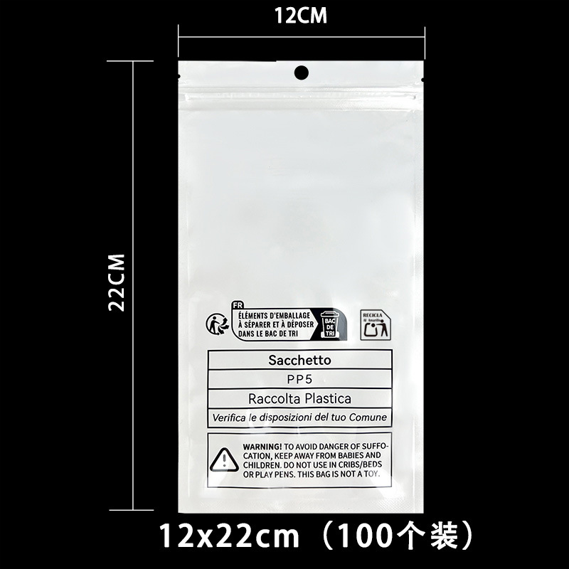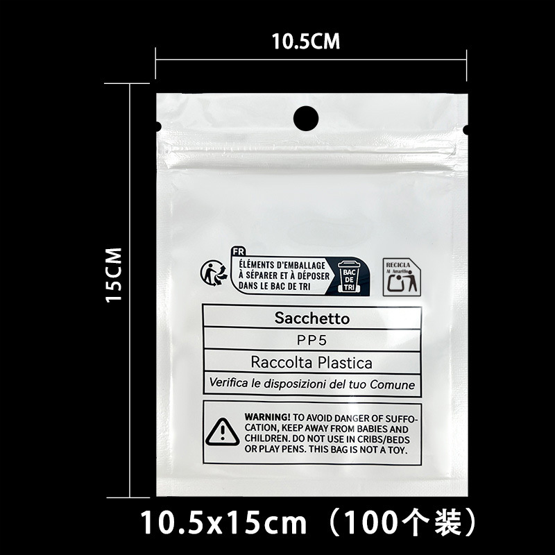 跨境环保标志印刷包装袋塑料密封口袋子透明阴阳珠光袋PP5自封袋
