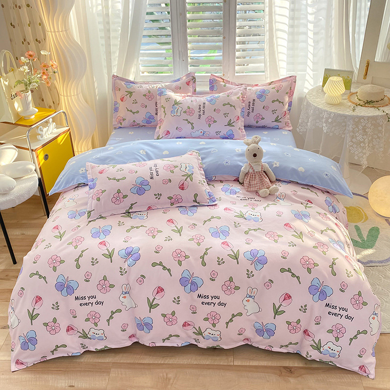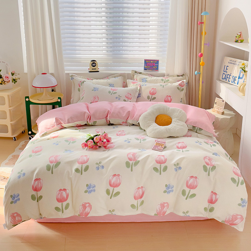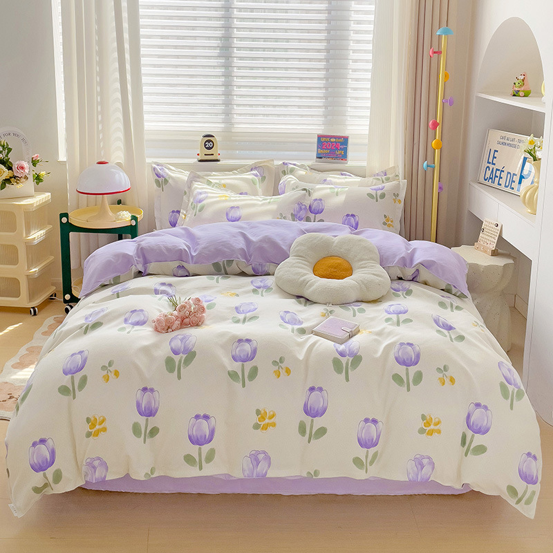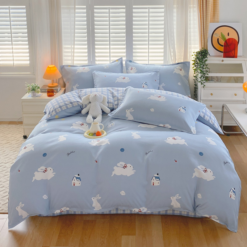 批发加厚仿全棉磨毛植物羊绒四件套单双人宿舍床单被套三件套代发
