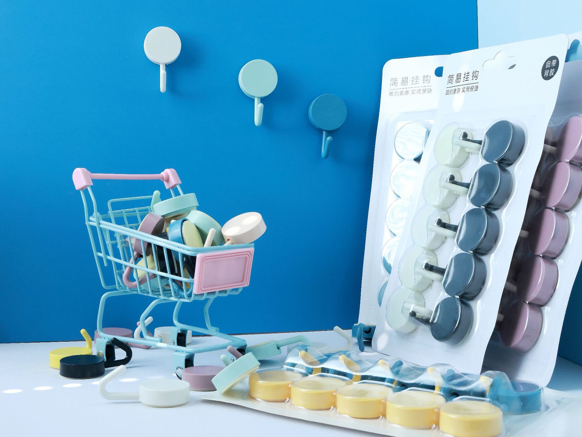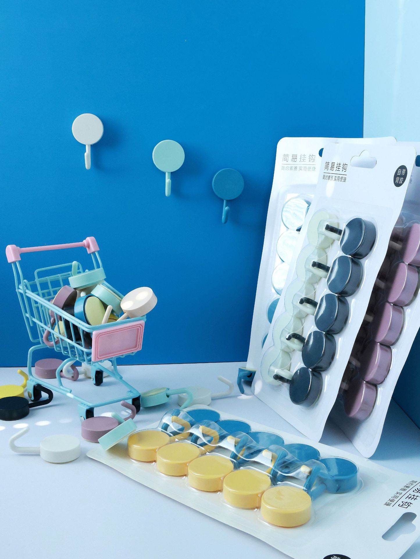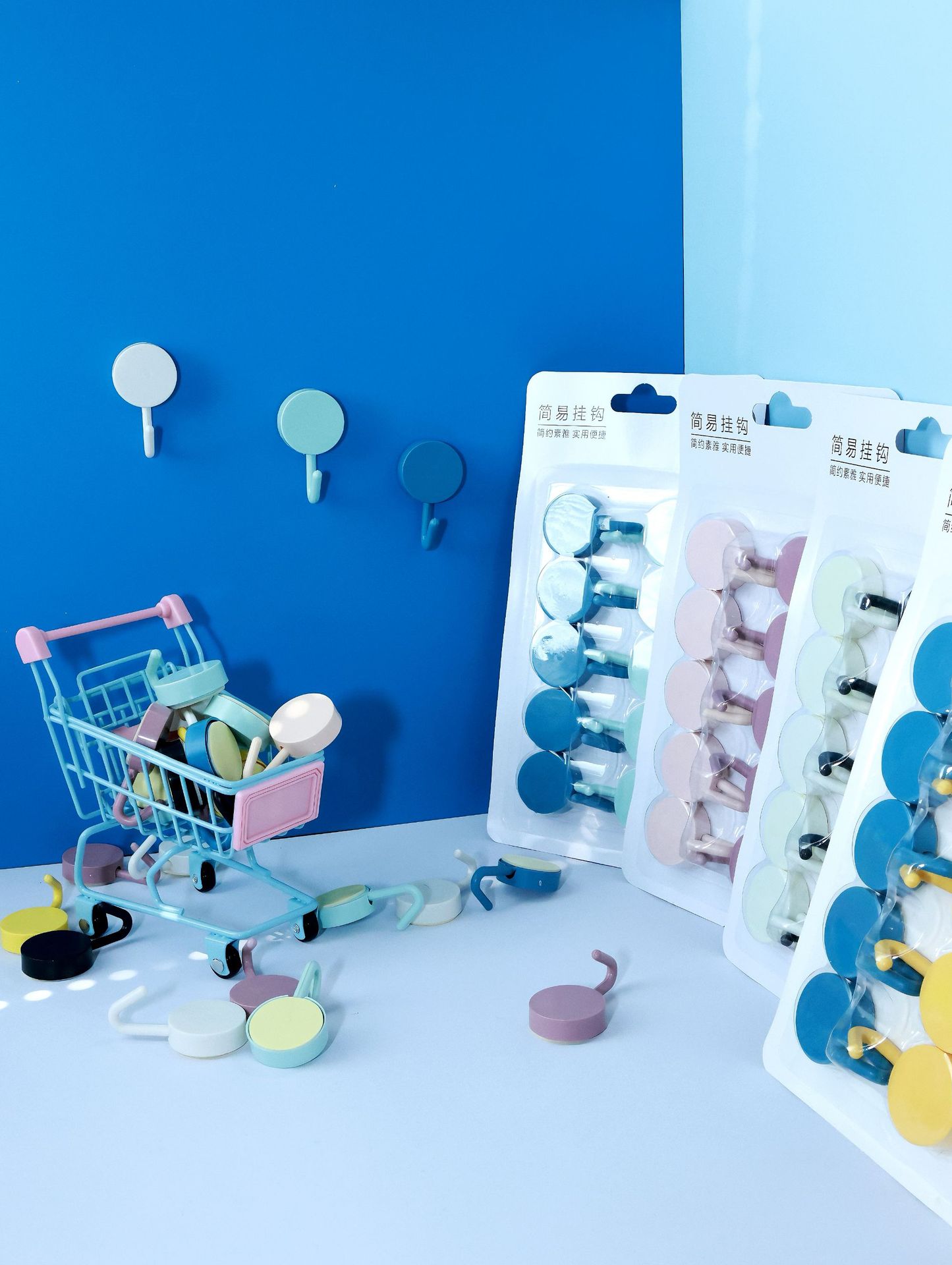 马卡龙挂钩无痕可爱粘钩塑料北欧钩子厨房浴室彩色免打孔挂衣钩