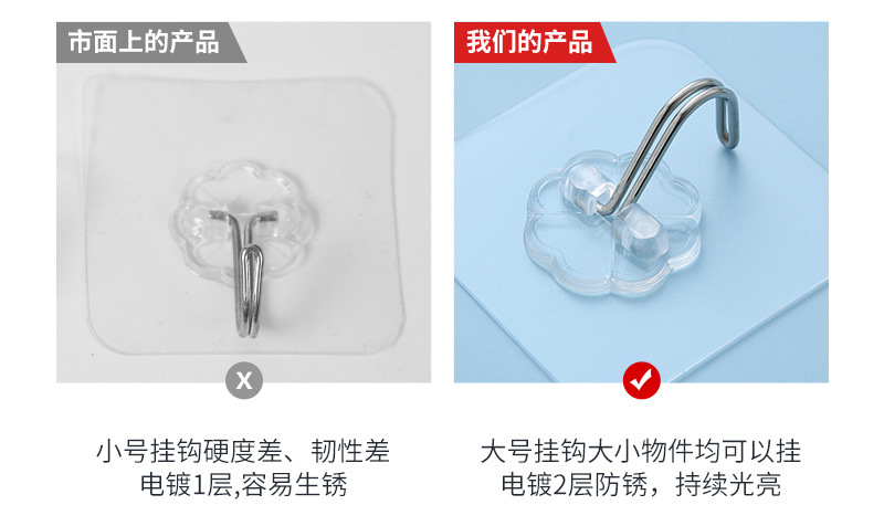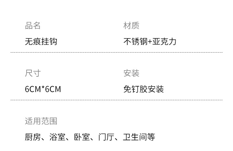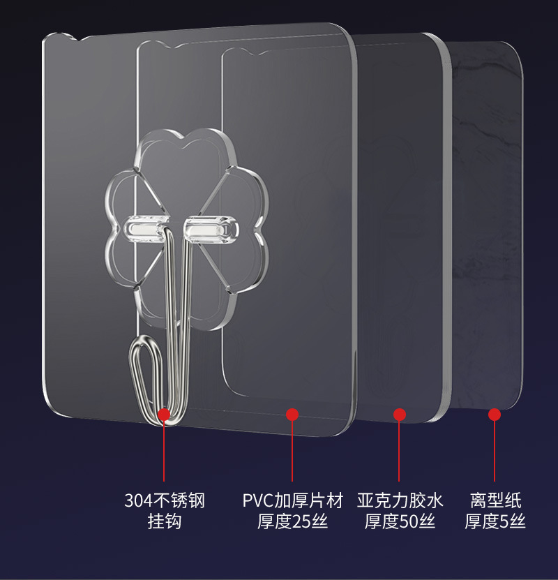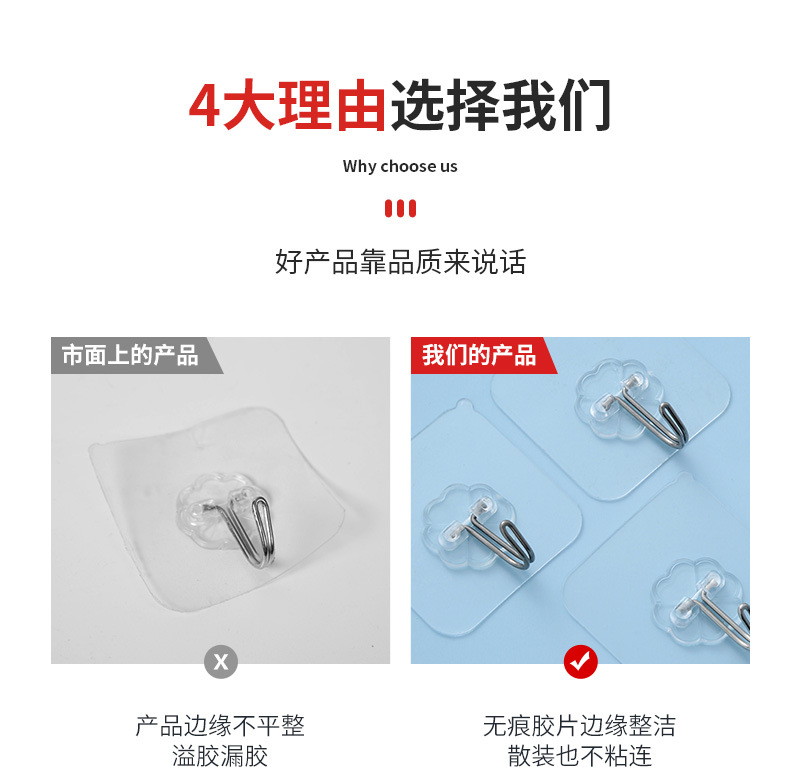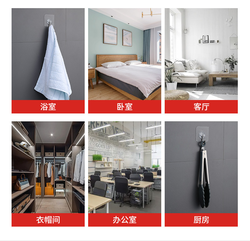 透明亚克力无痕挂钩免打孔粘贴家用挂钩不锈钢无痕粘钩门后小钩子