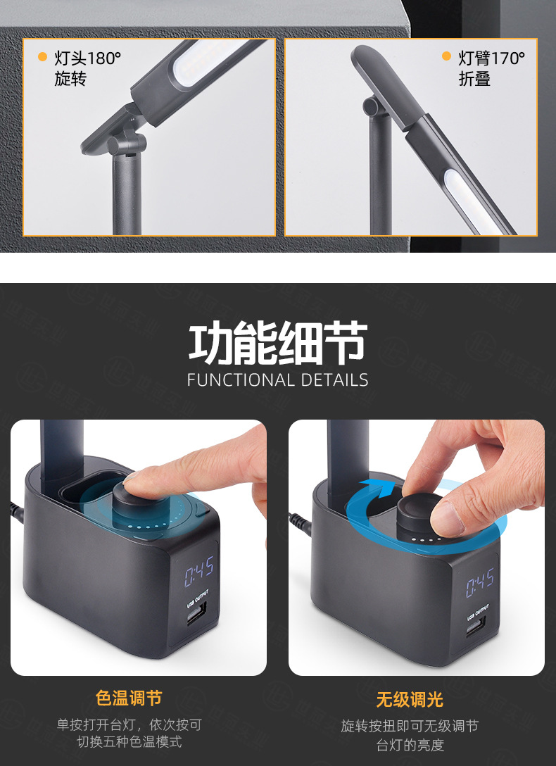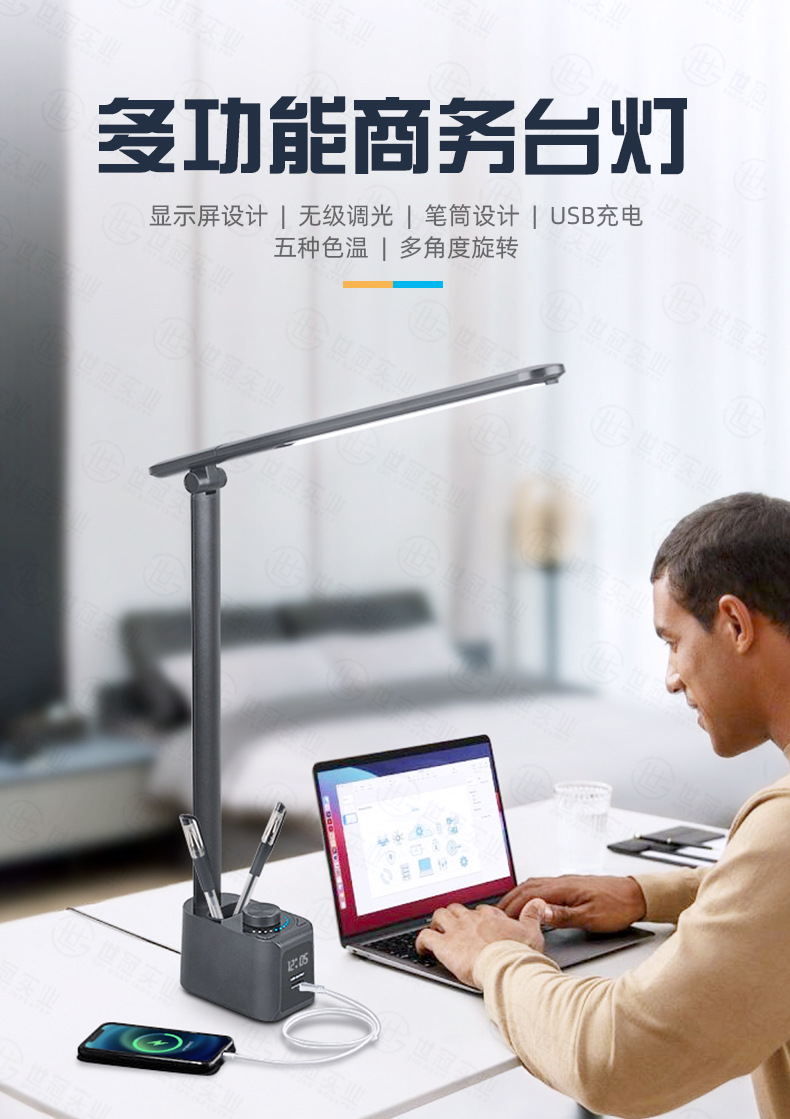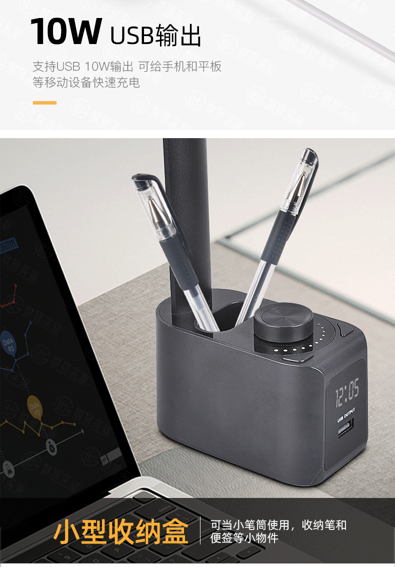 亚马逊爆品led护眼笔筒台灯学生学习卧室宿舍充电阅读台灯