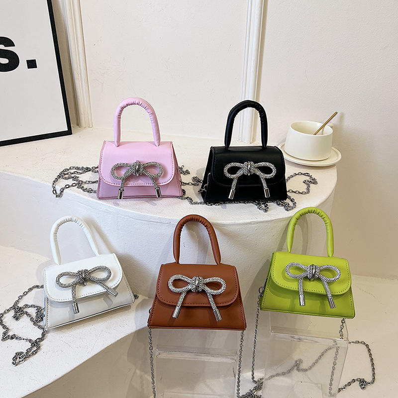 蝴蝶结韩版洋气小方包女2025新款迷你手提包包简约链条单肩斜挎包