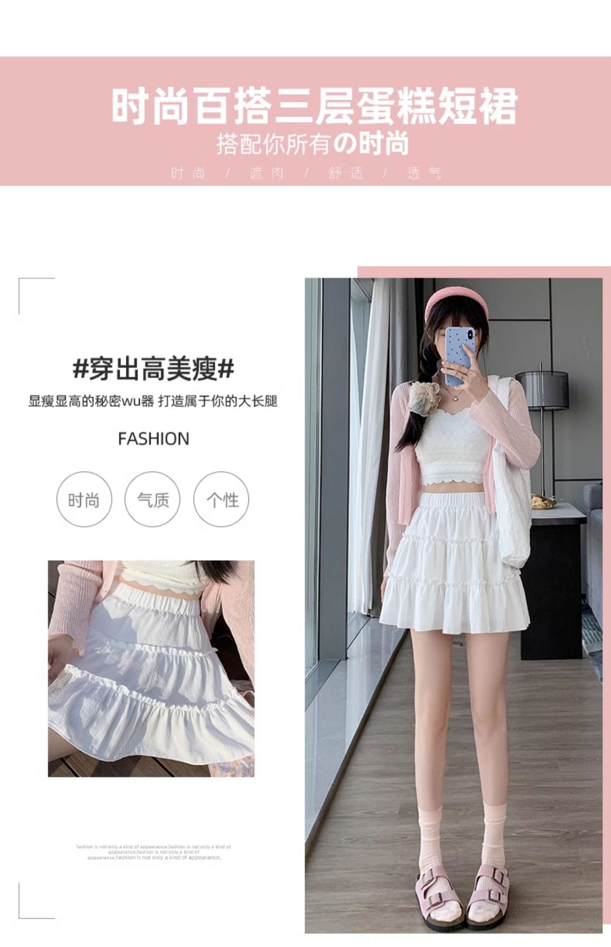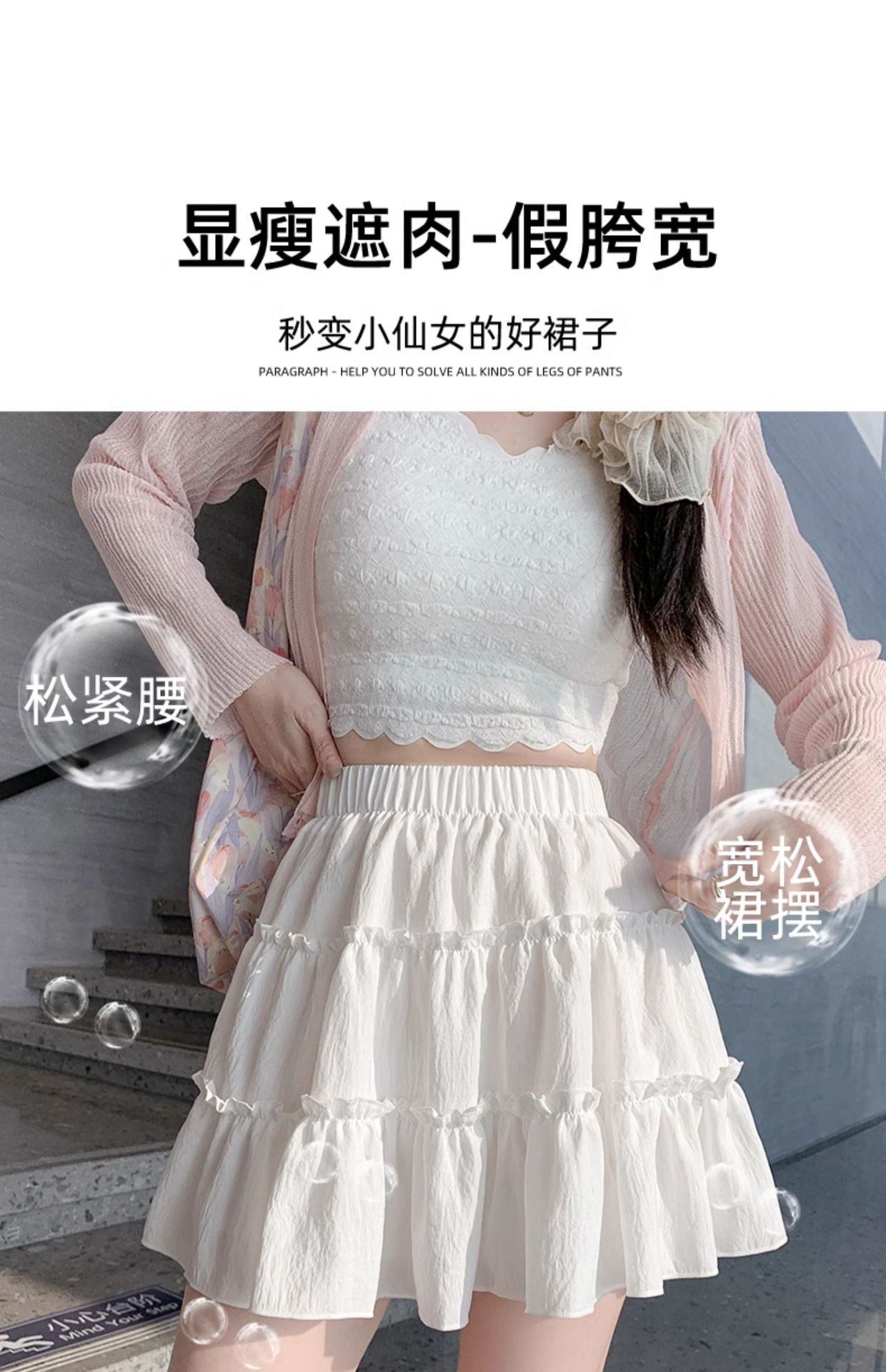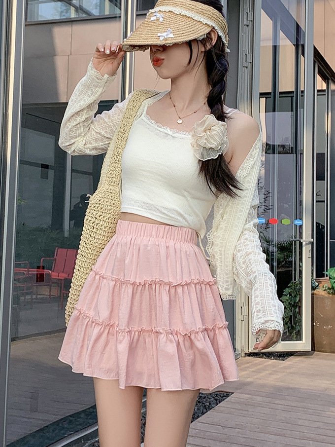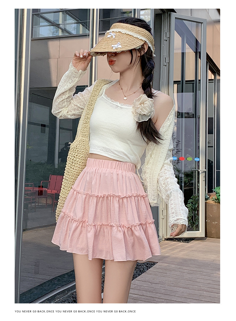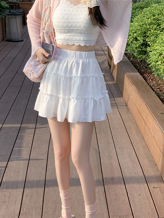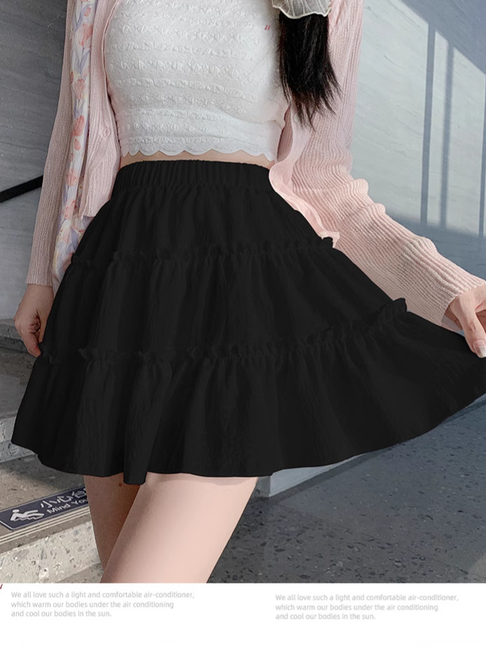 春夏季新款短裙防走光A字裙女 少女风裙子百搭三层设计蛋糕裙子女