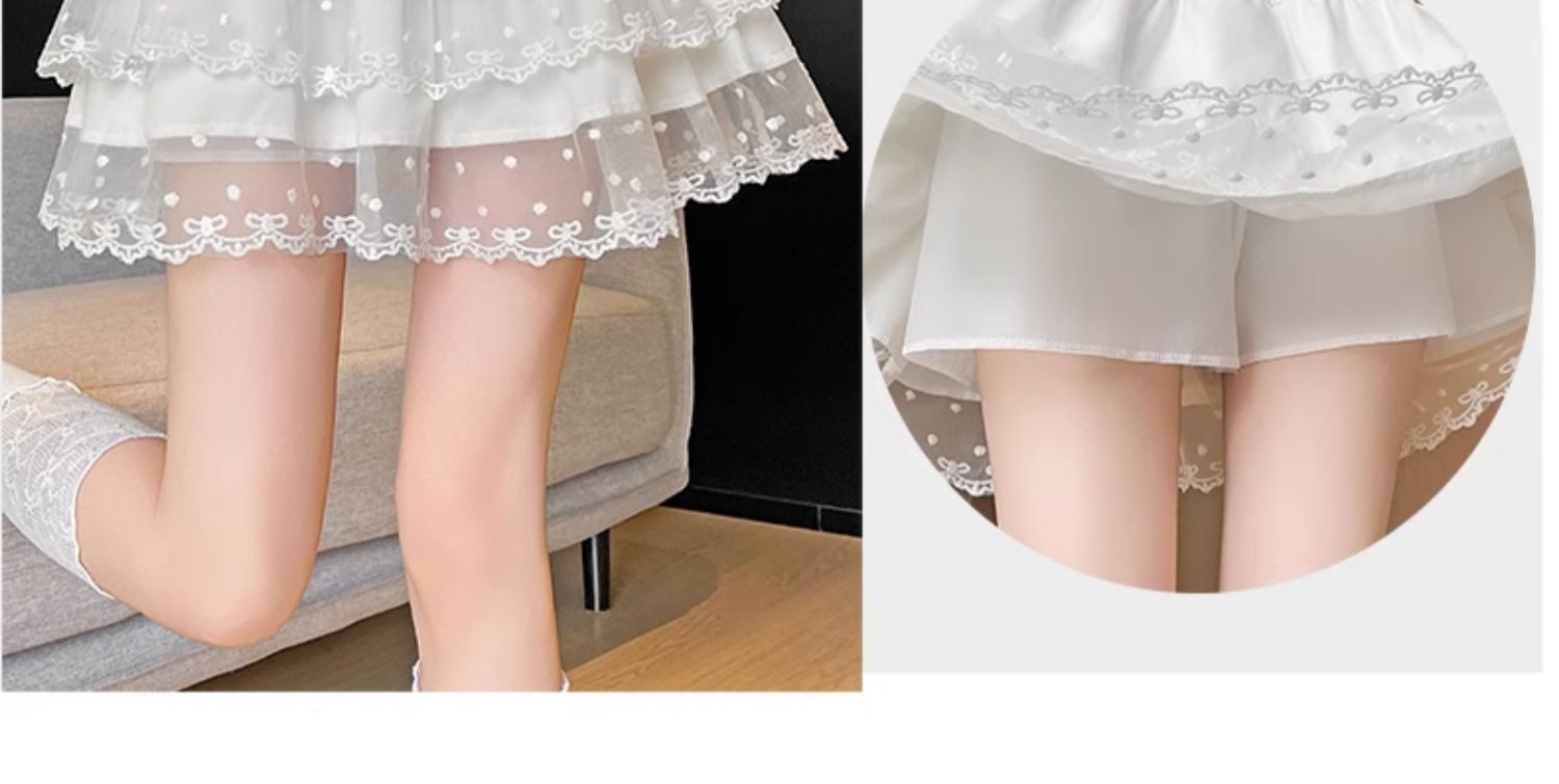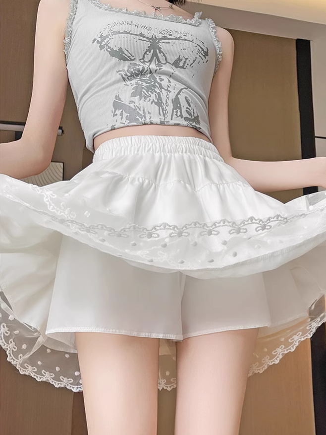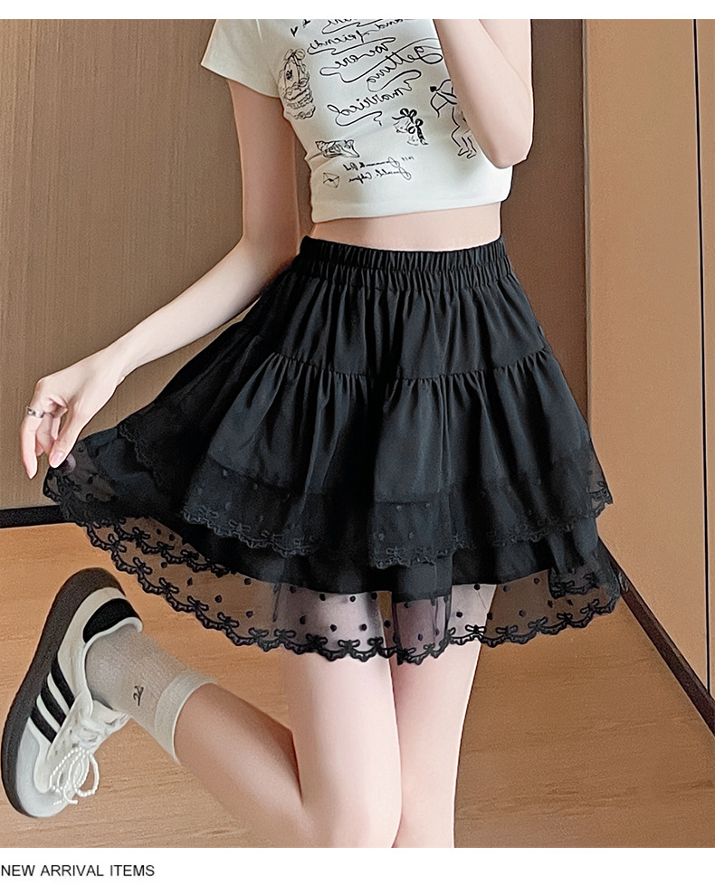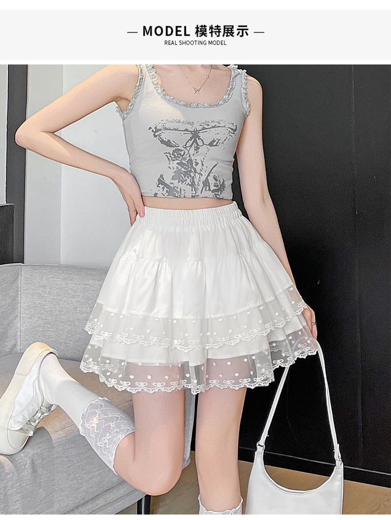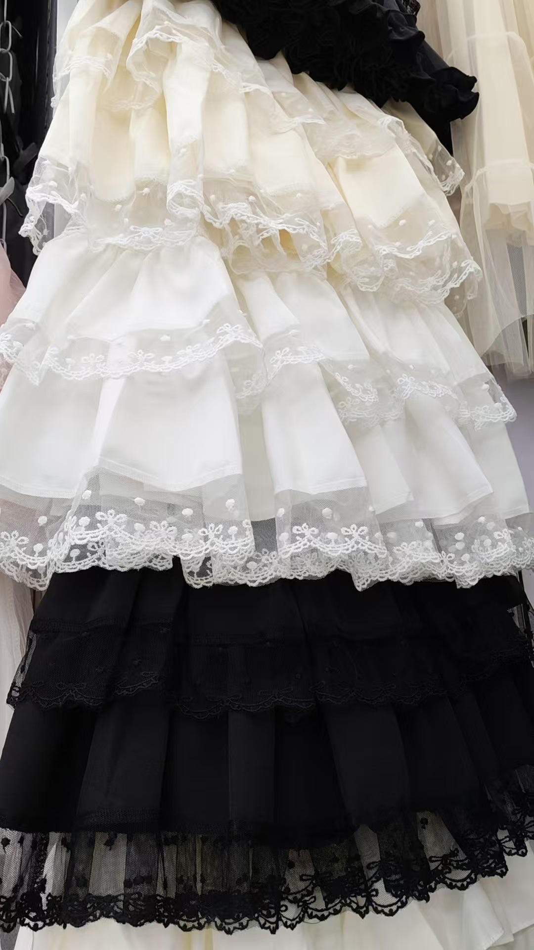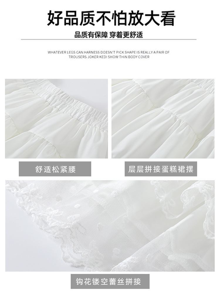 2025年夏季甜美松紧腰褶皱荷叶边短裙蕾丝花边拼接蛋糕半身裙ins