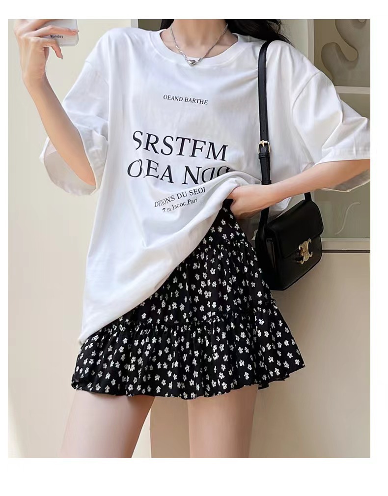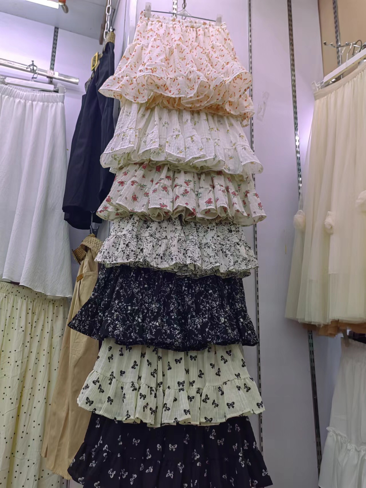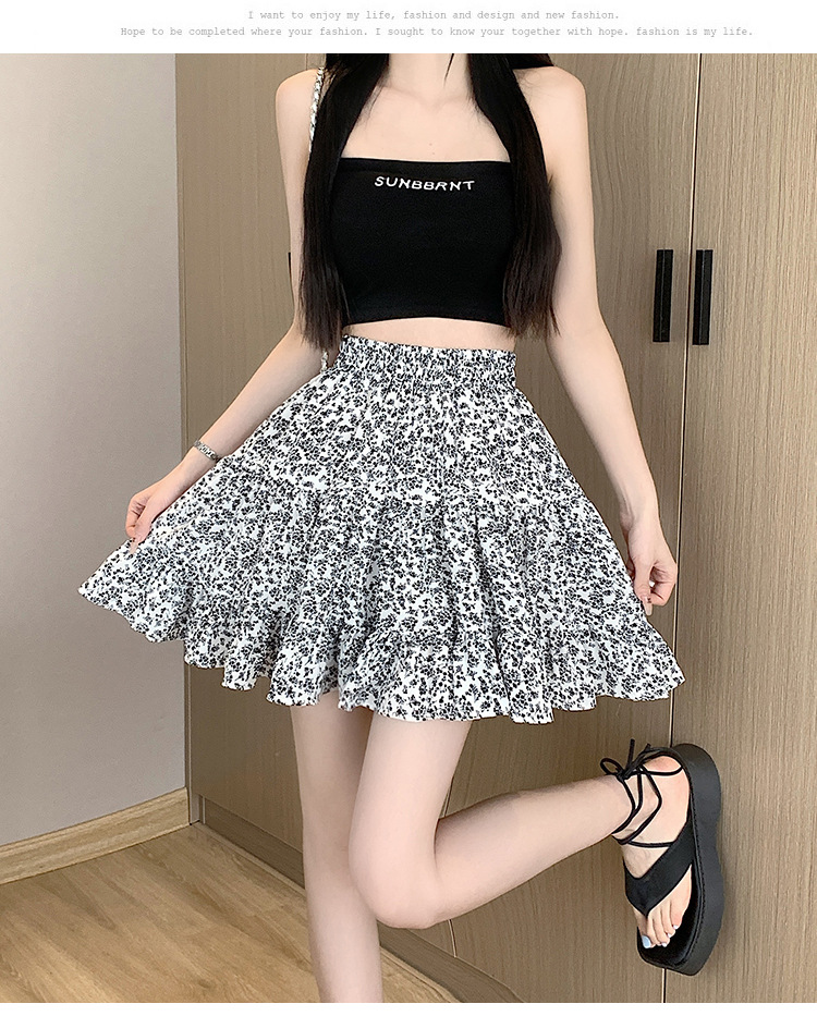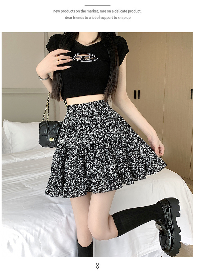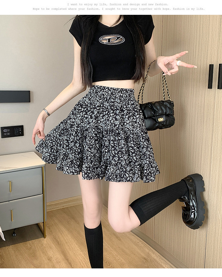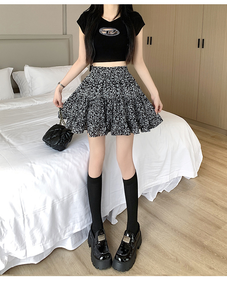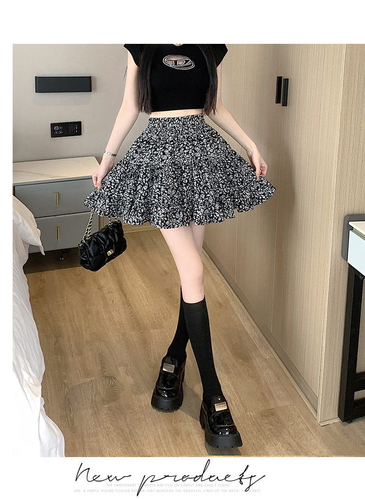 雪纺碎花半身裙女夏季2024新款防走光松紧高腰a字蓬蓬百褶短裙裤