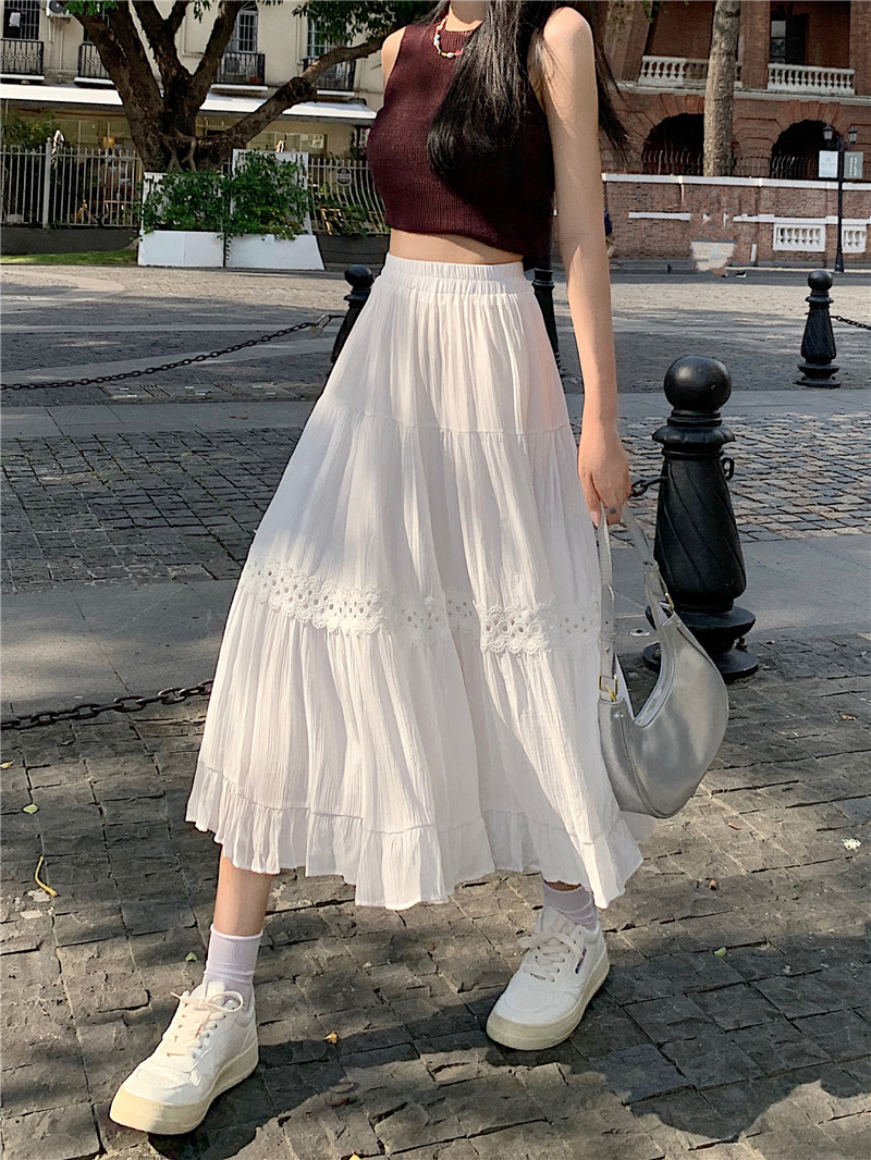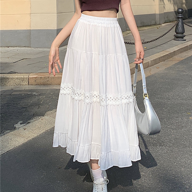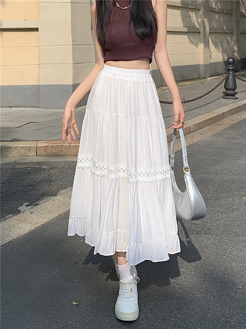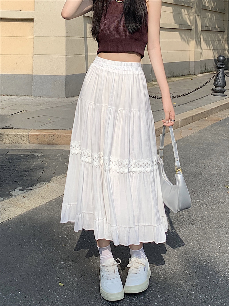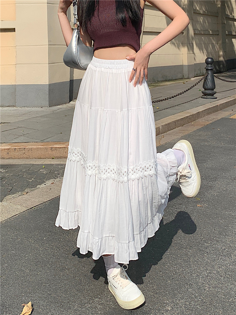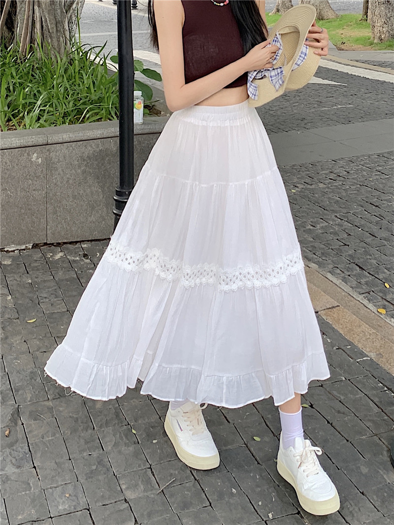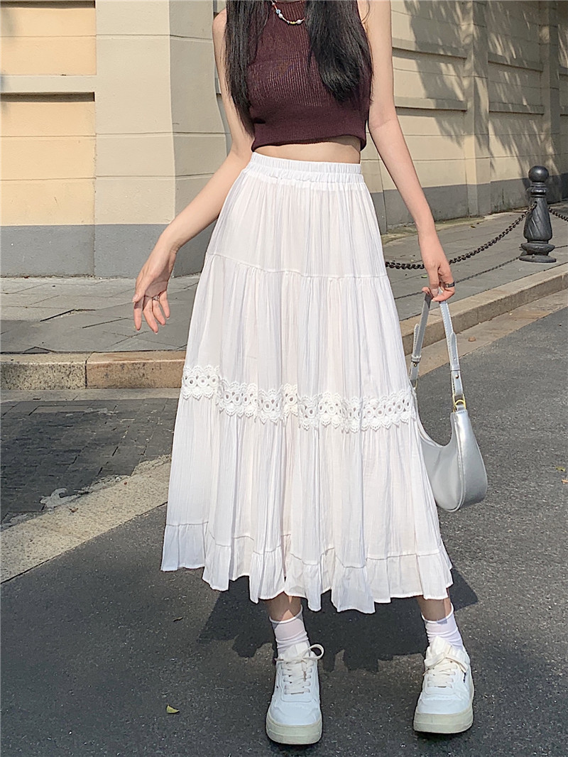 大码白色纱裙高腰垂坠感半身裙2024新款裙子胖mm遮肚显瘦a字长裙