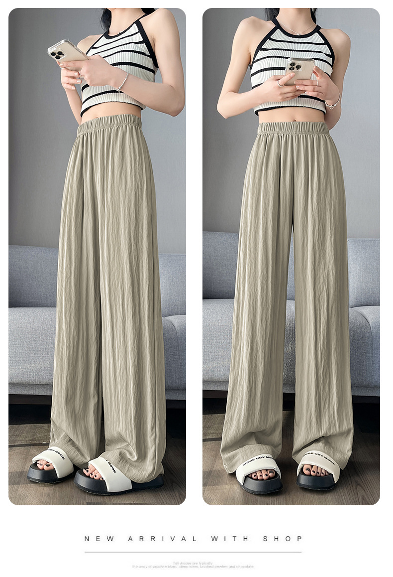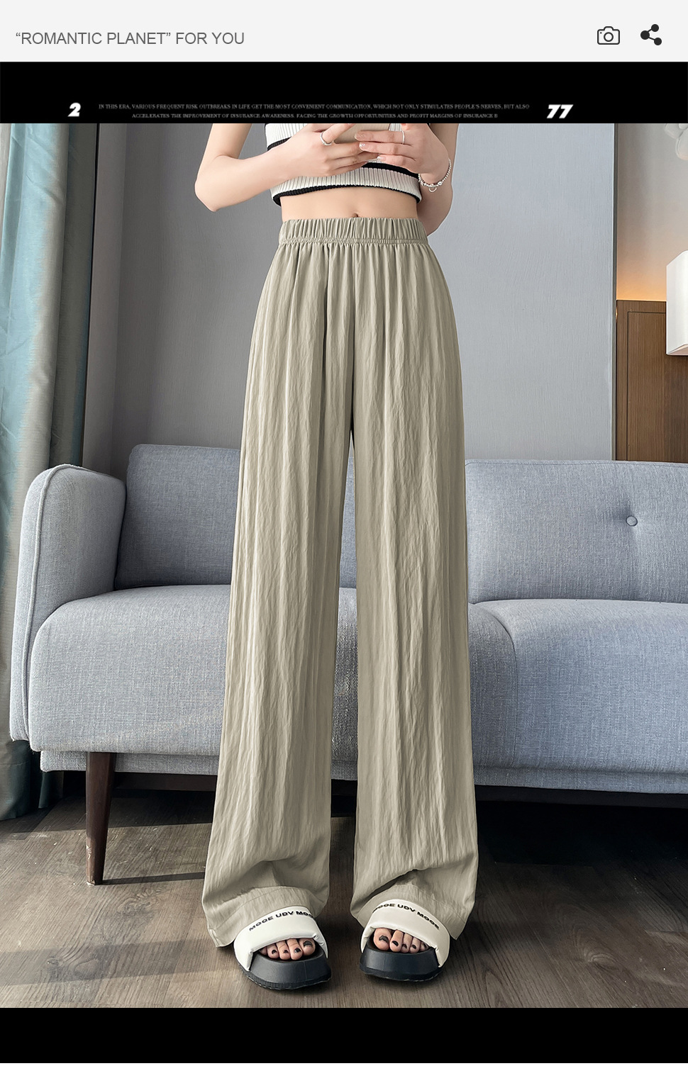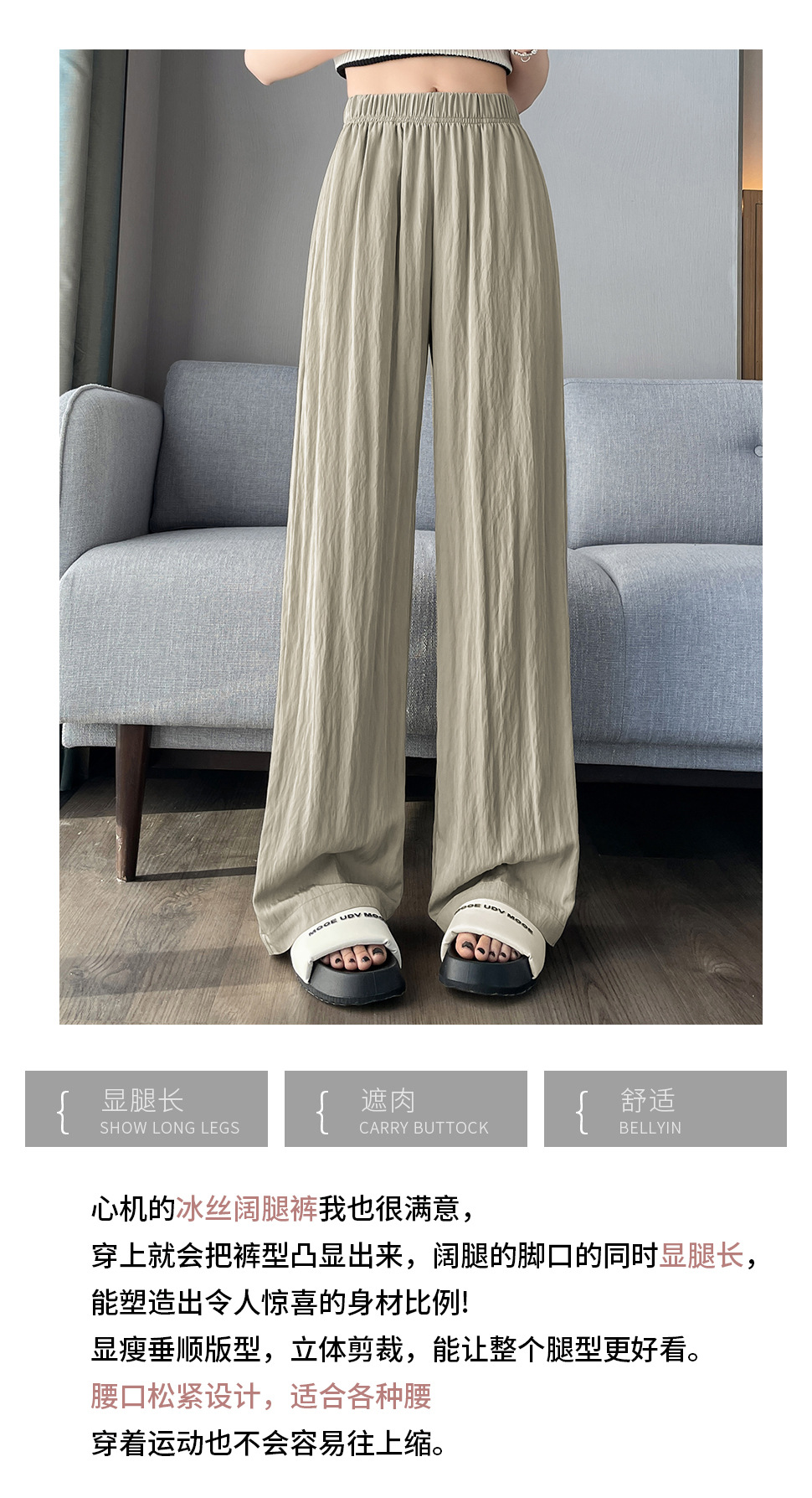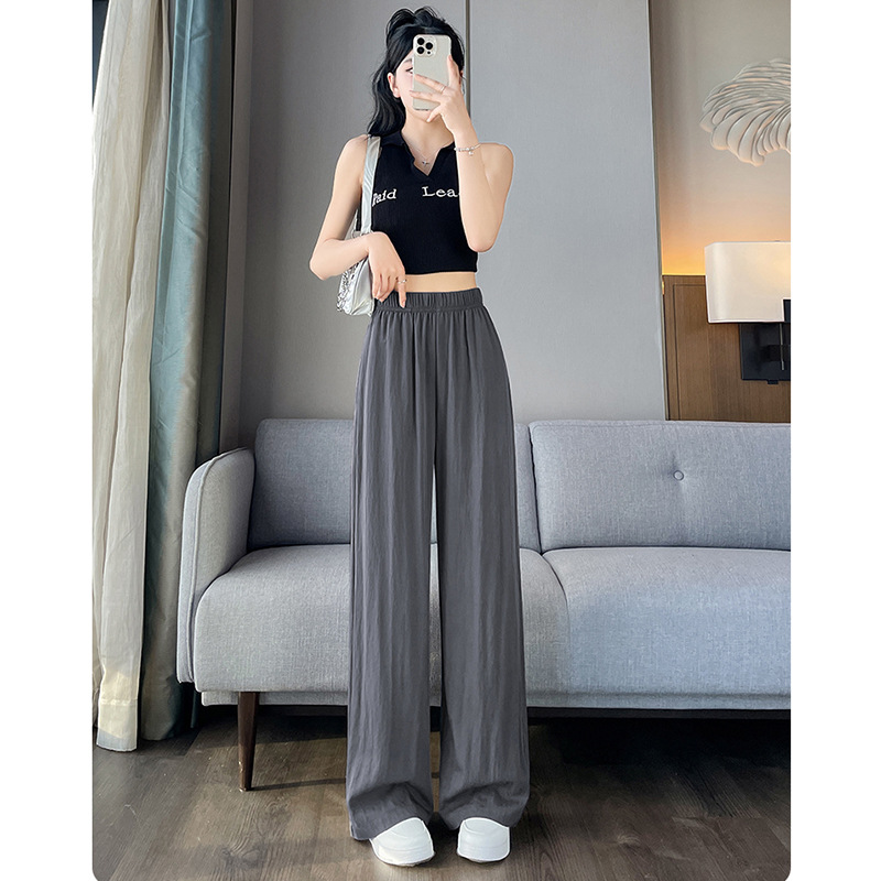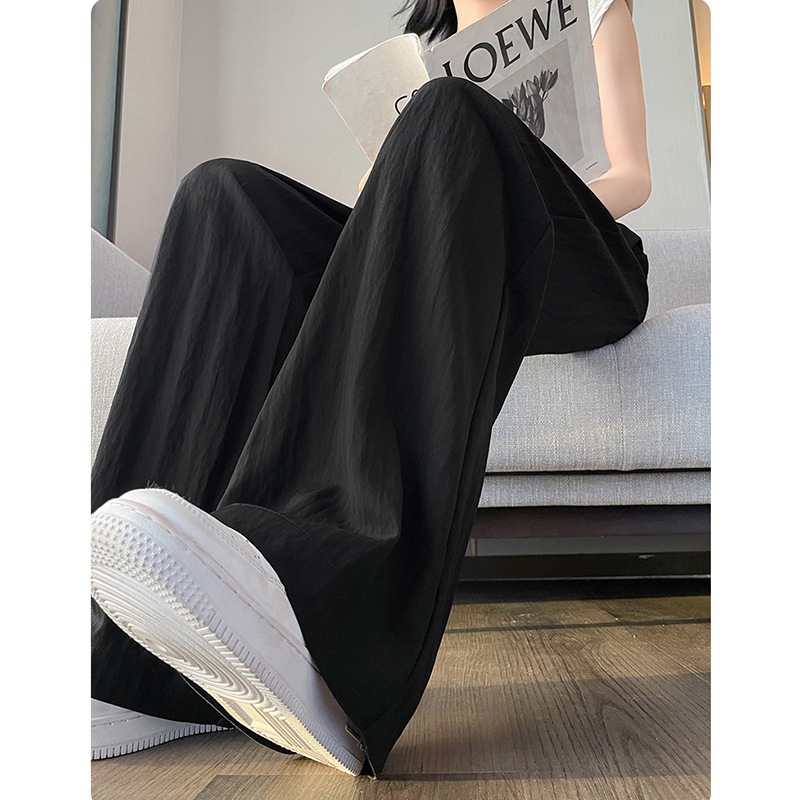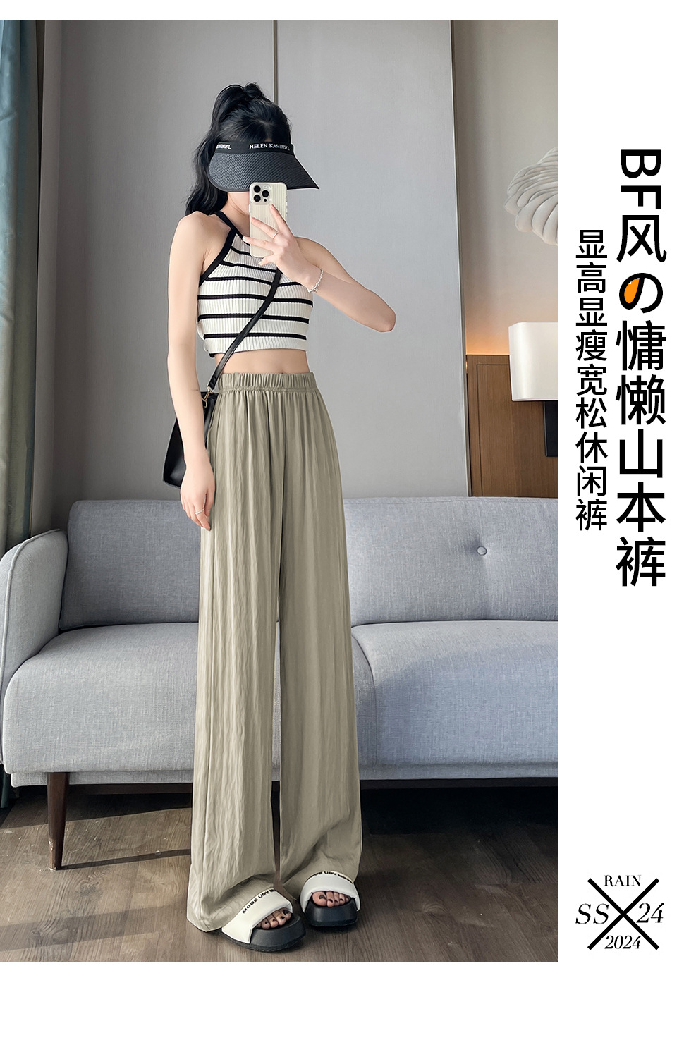 冰丝阔腿裤女夏季高腰垂感休闲日系山本风裤宽松慵懒褶皱直筒裤子