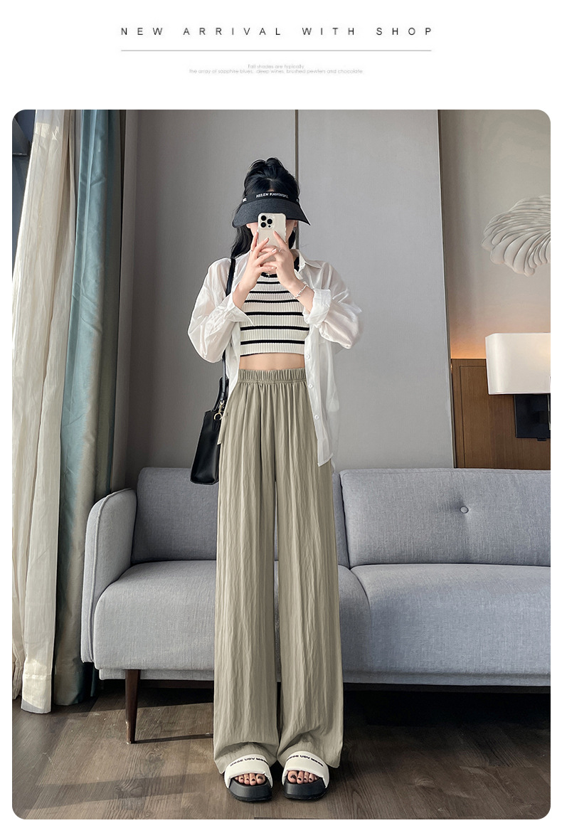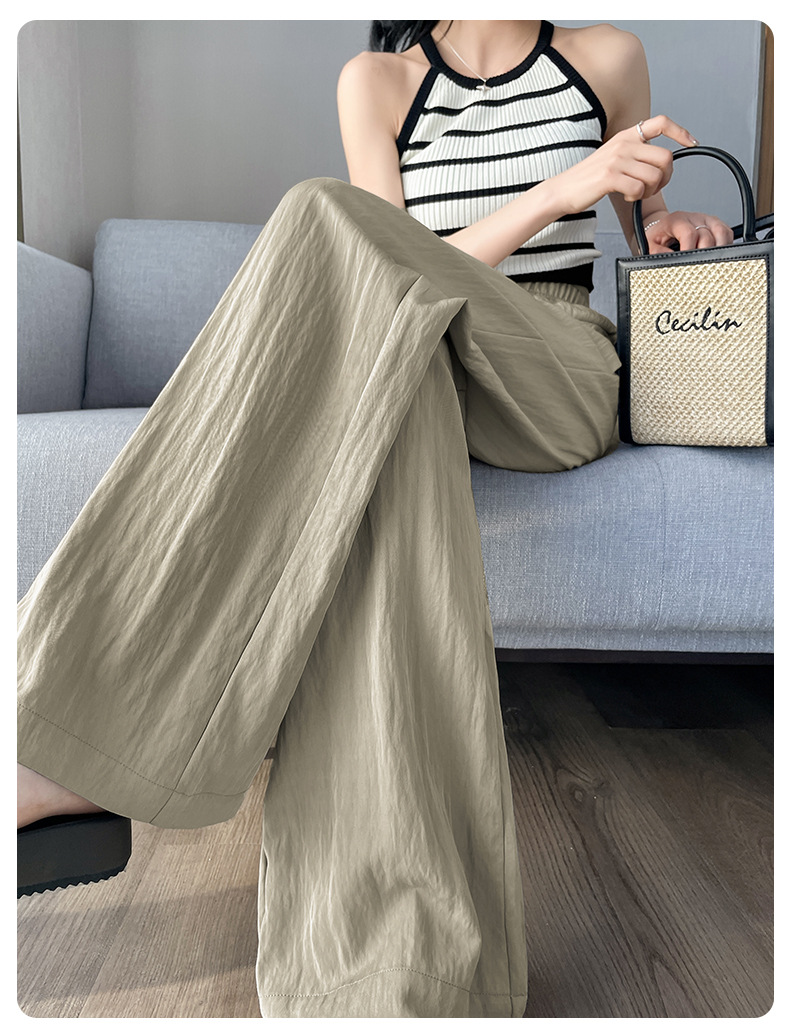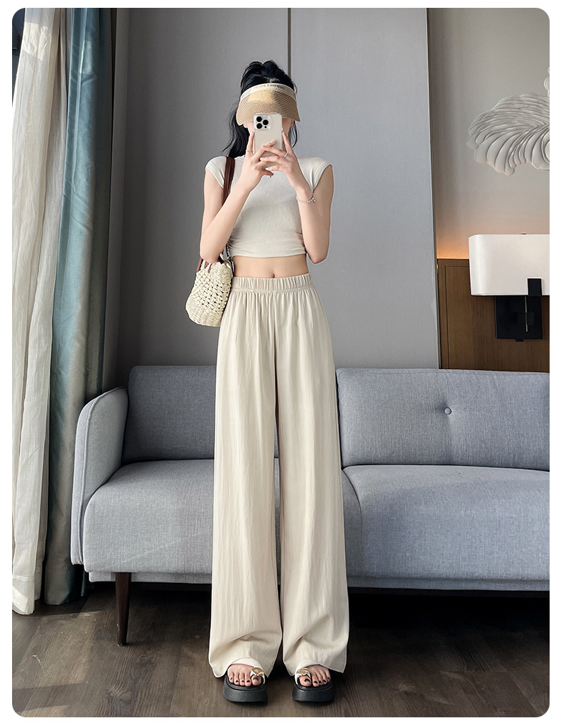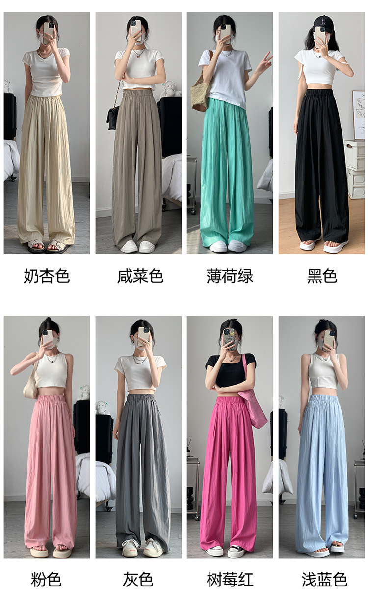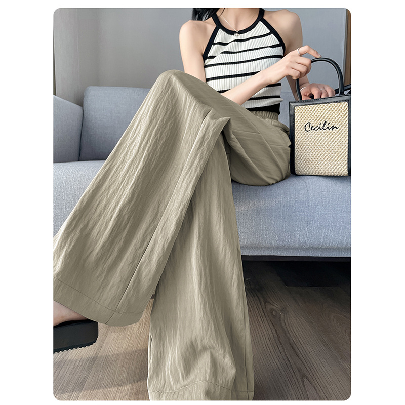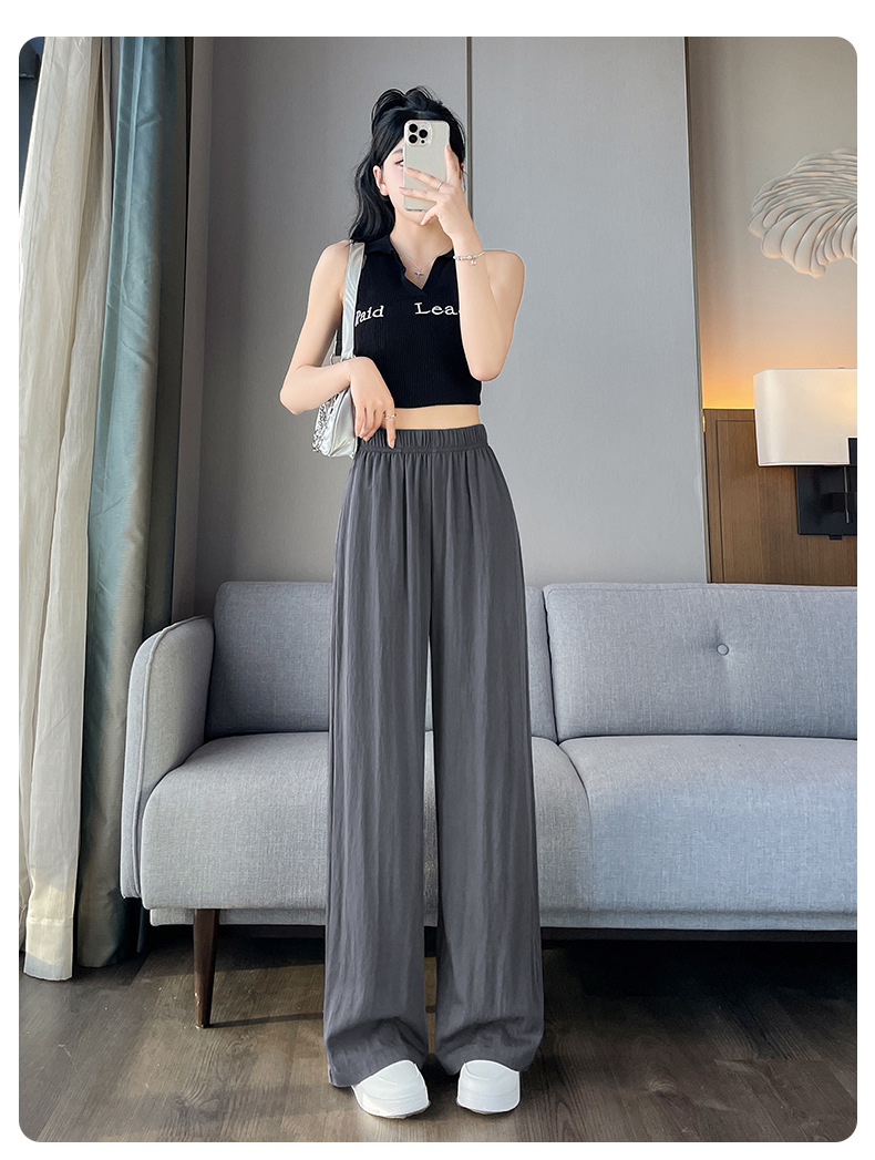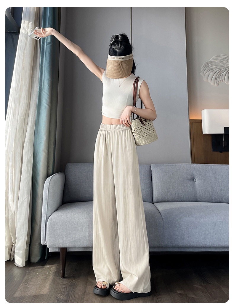 冰丝阔腿裤女夏季高腰垂感休闲日系山本风裤宽松慵懒褶皱直筒裤子