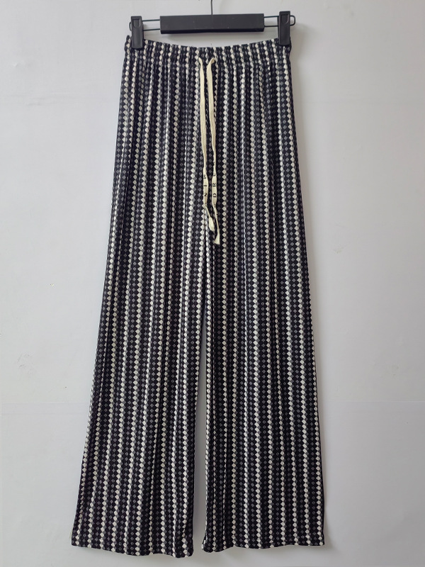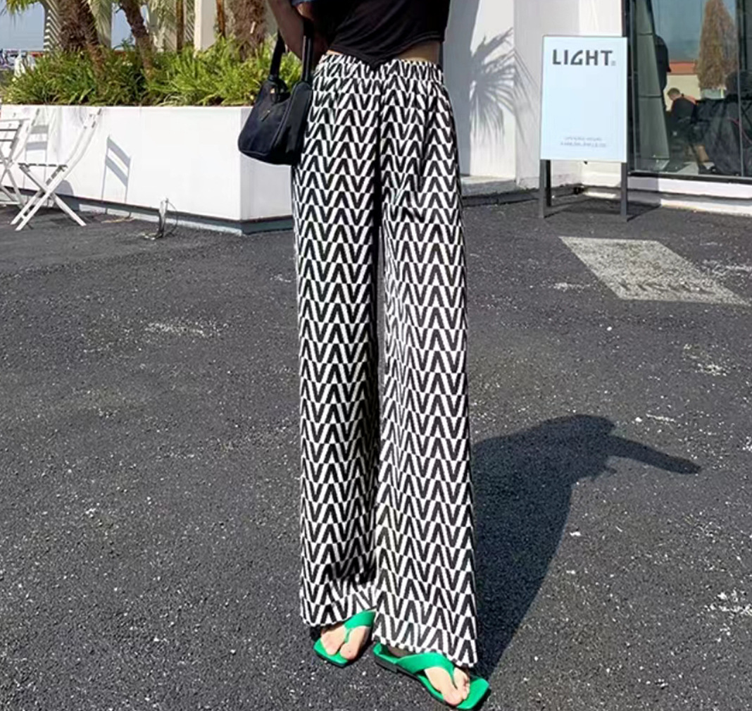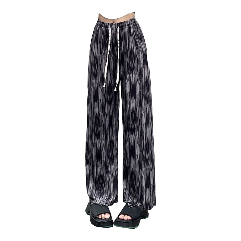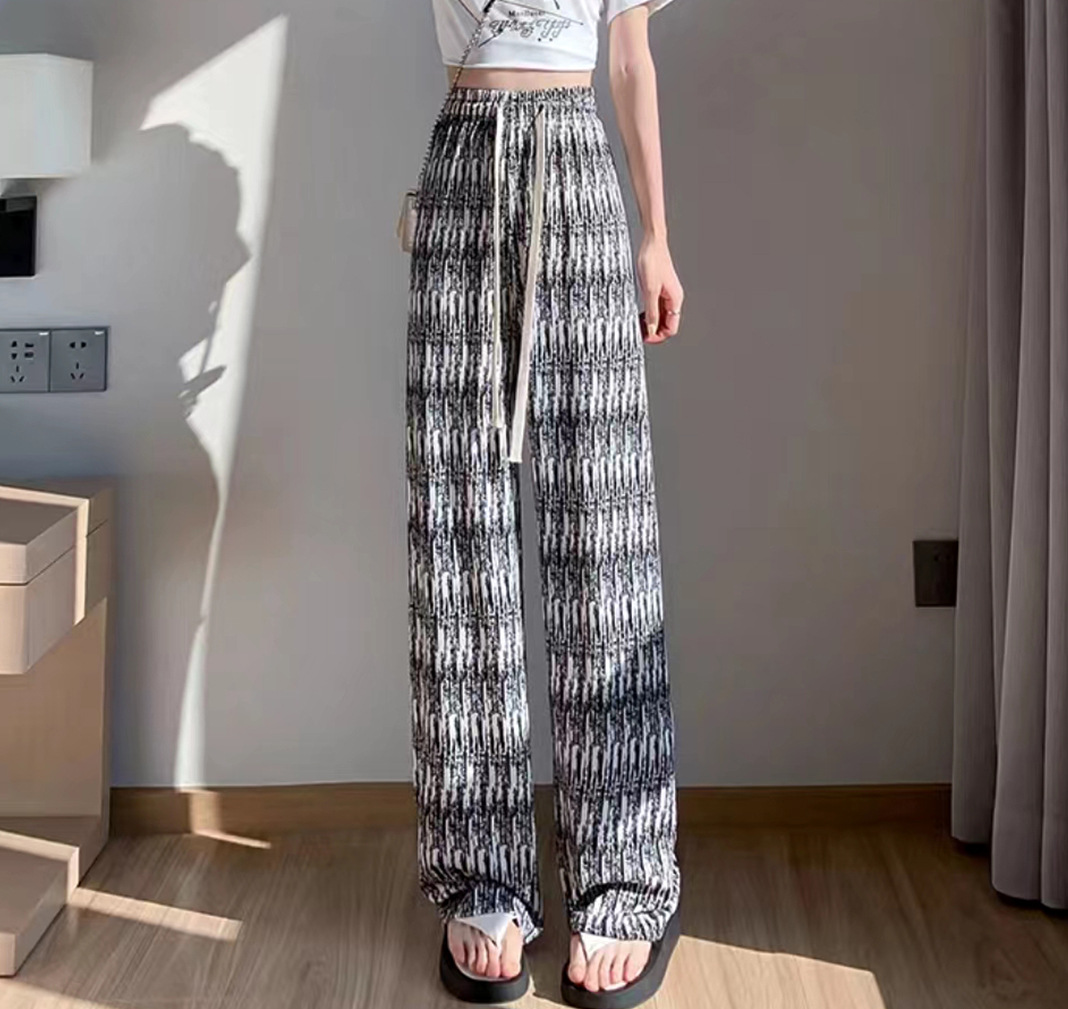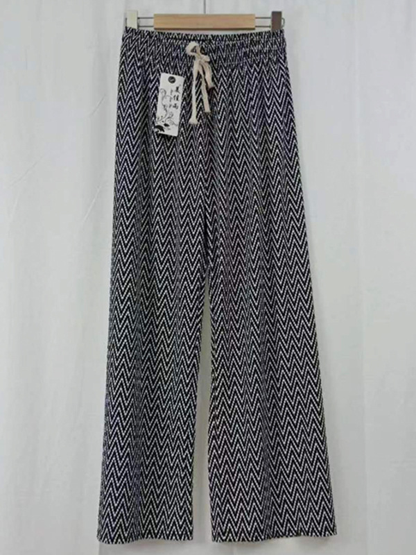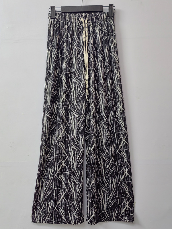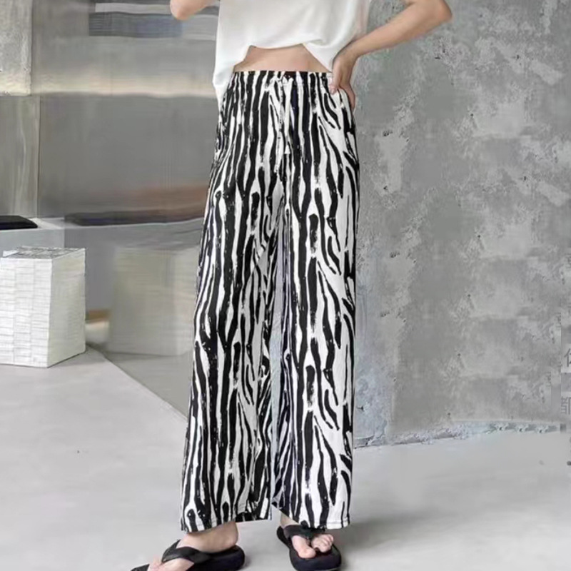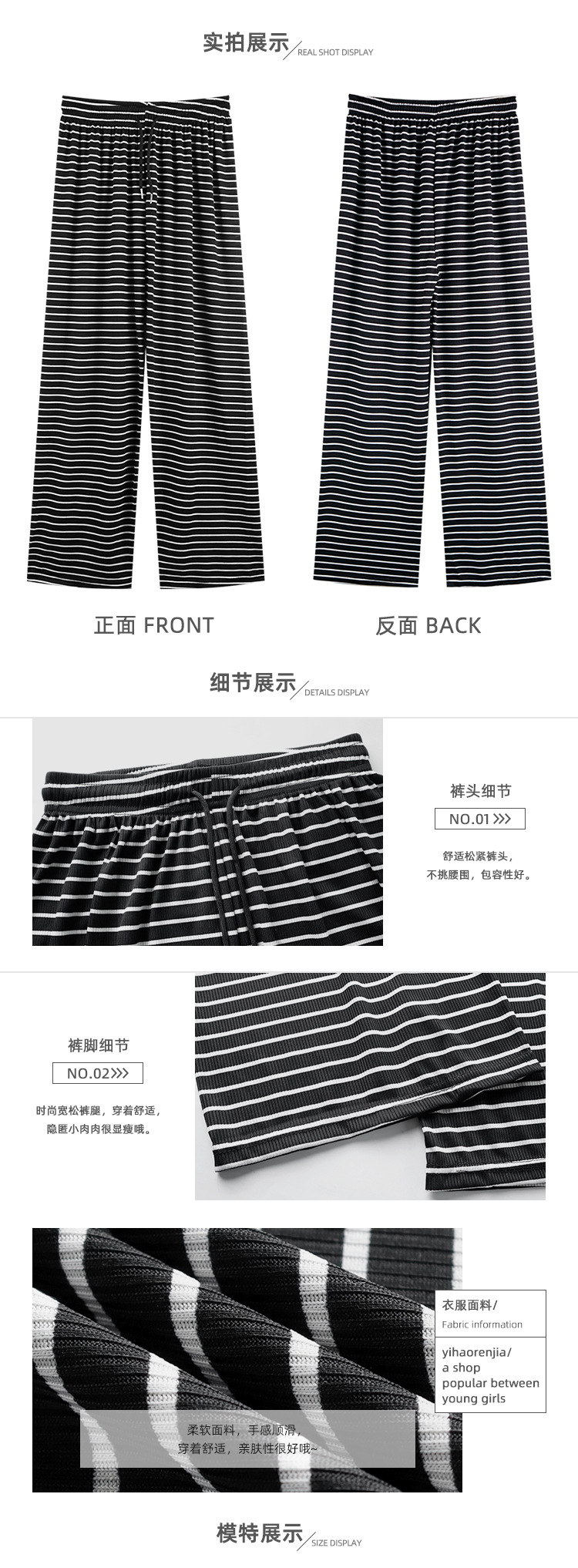 春夏季新款条纹阔腿中国风裤 女士薄款宽松休闲裤 直筒印花防蚊