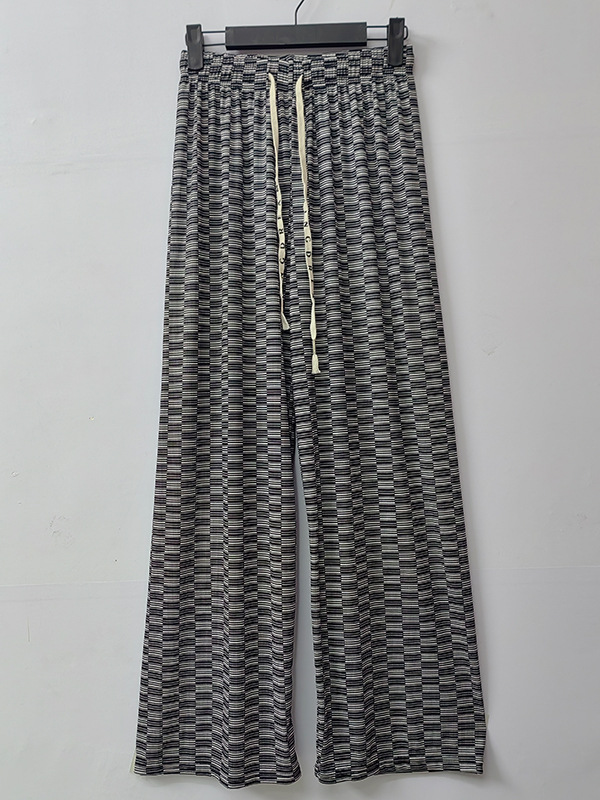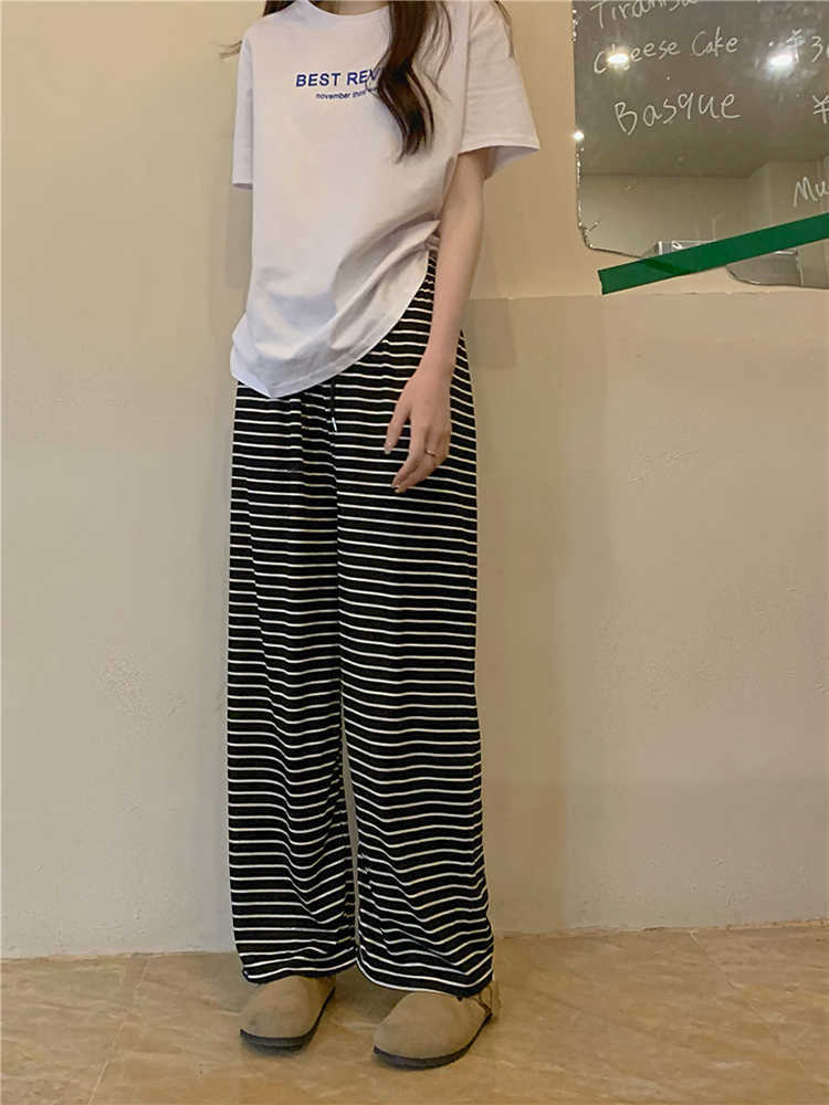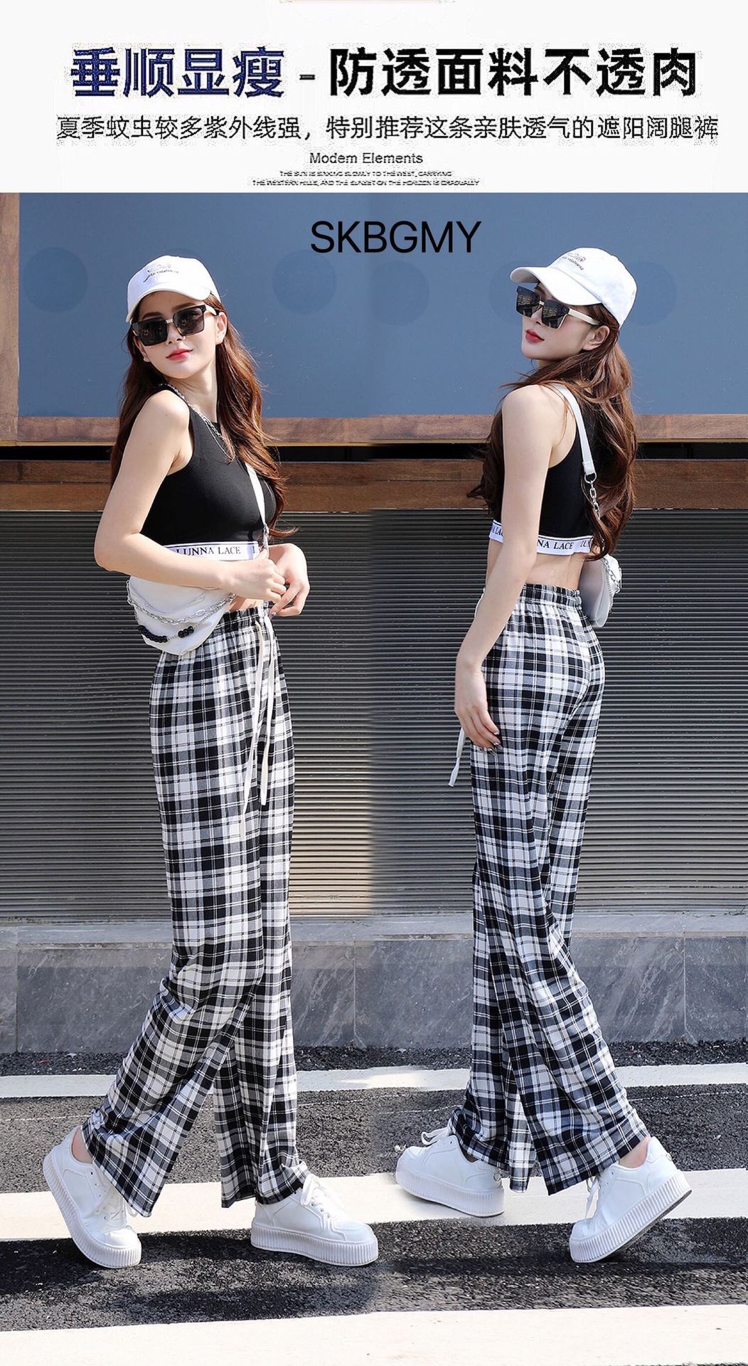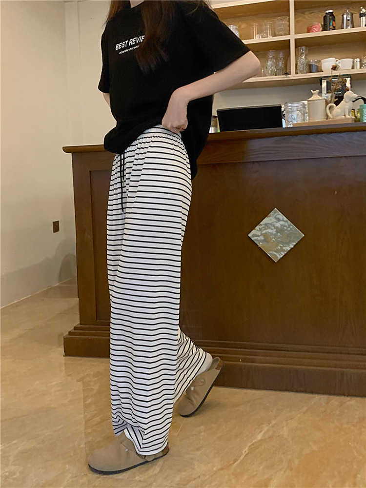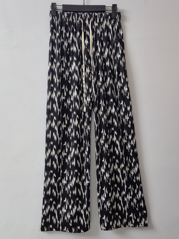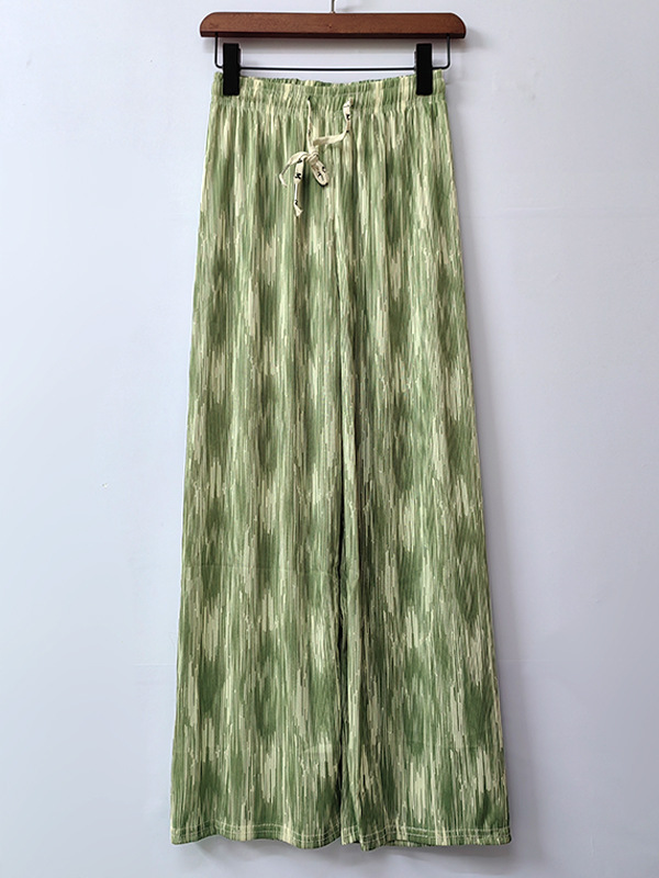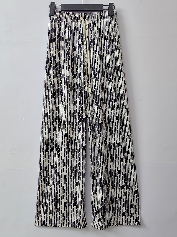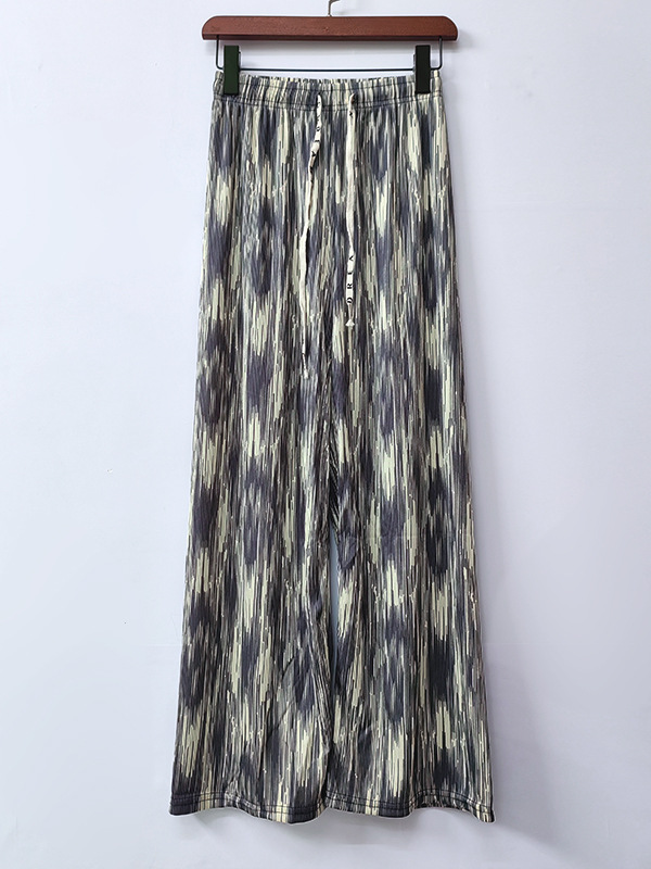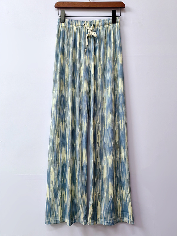 春夏季新款条纹阔腿中国风裤 女士薄款宽松休闲裤 直筒印花防蚊