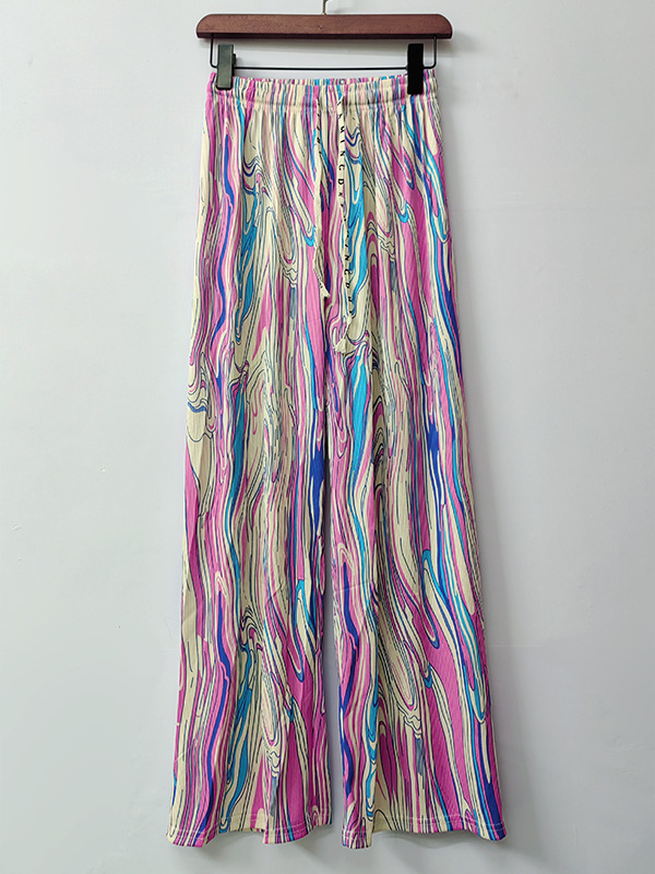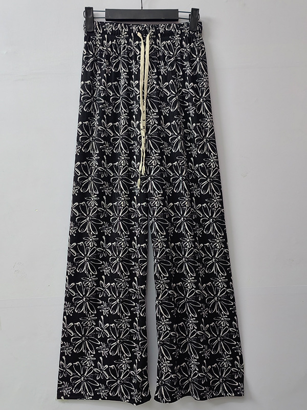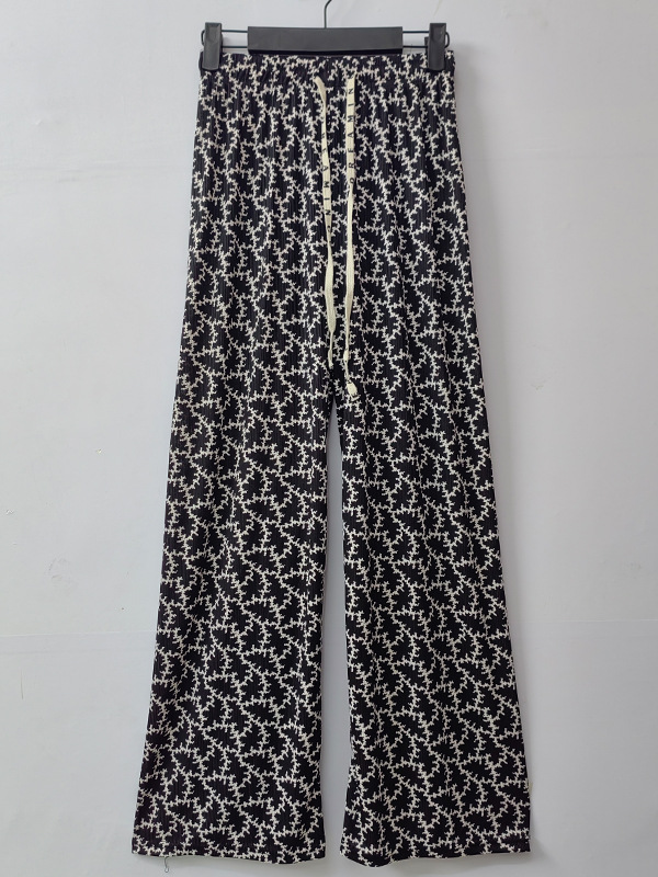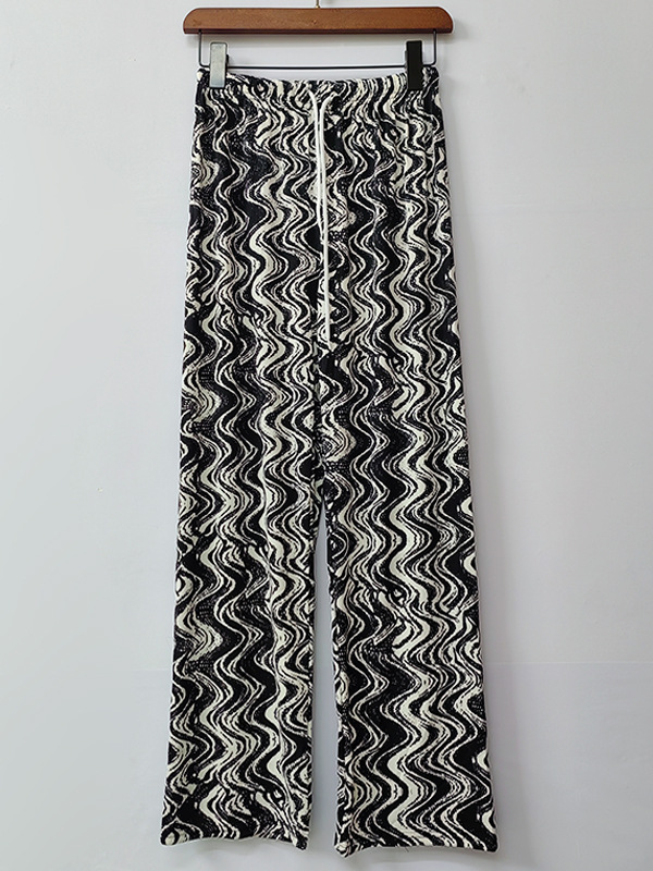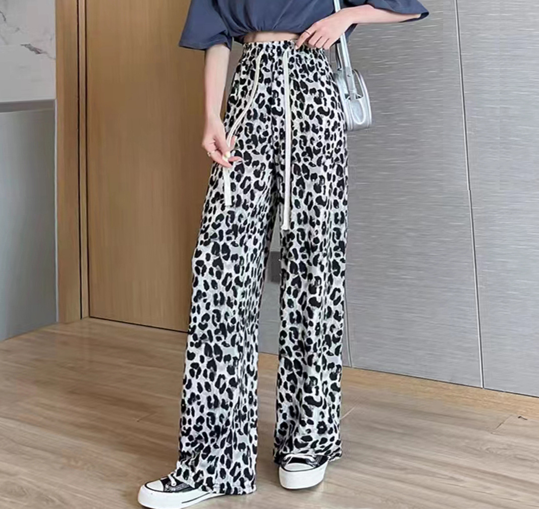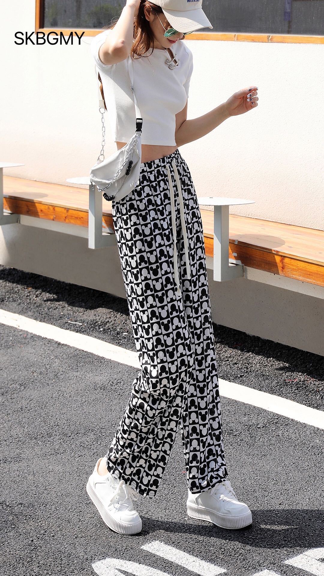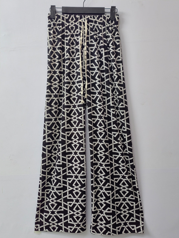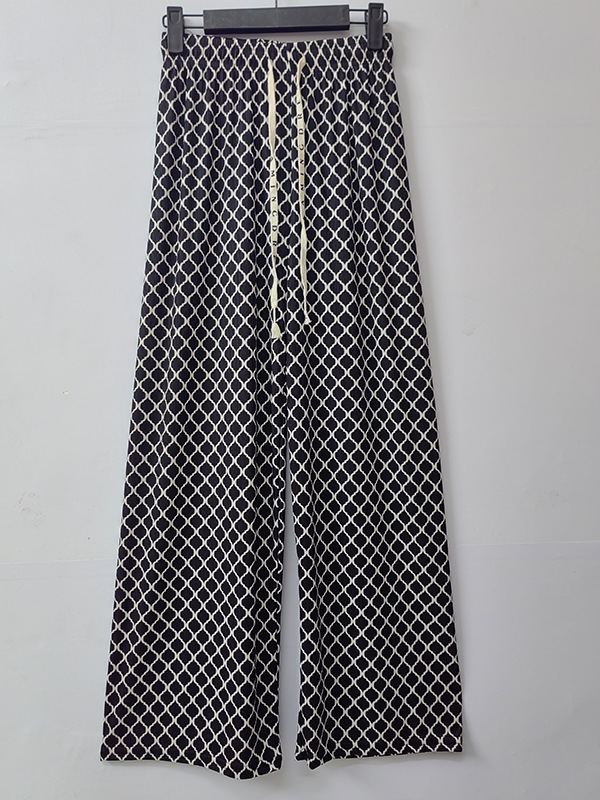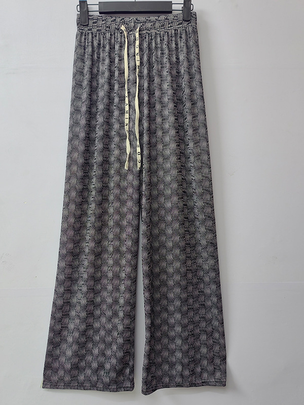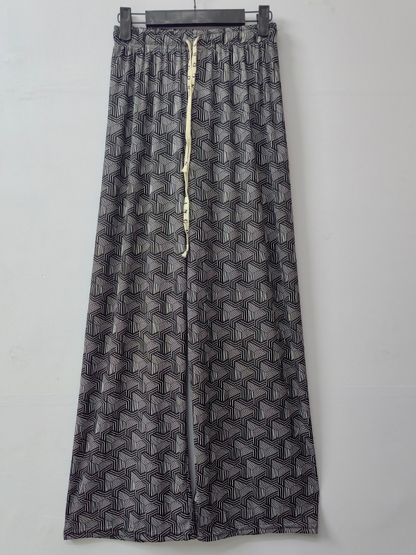 春夏季新款条纹阔腿中国风裤 女士薄款宽松休闲裤 直筒印花防蚊