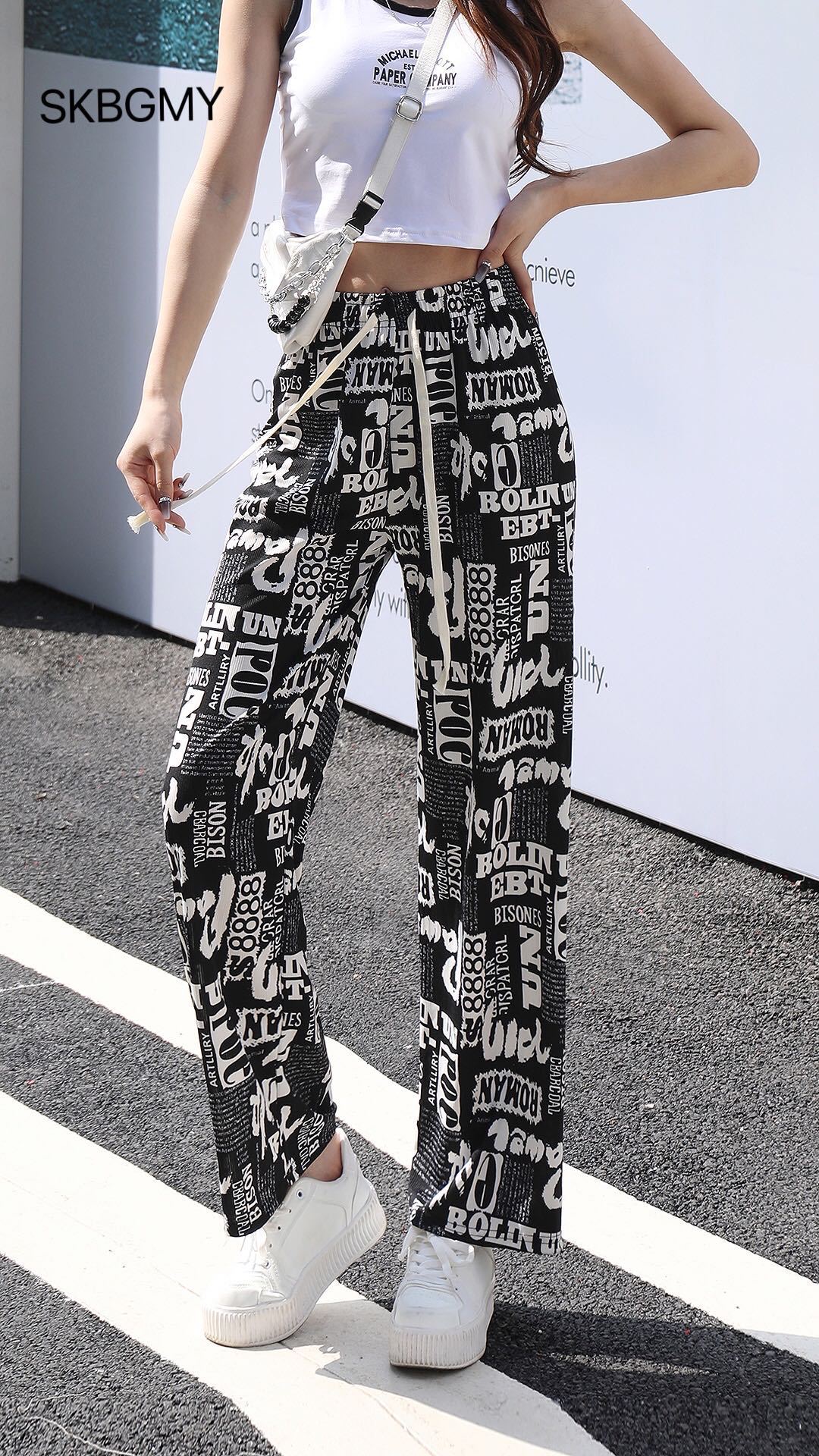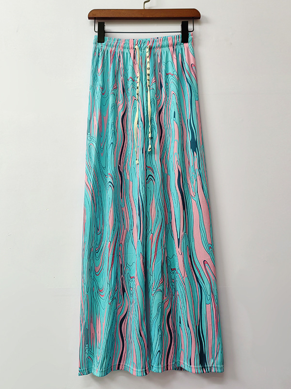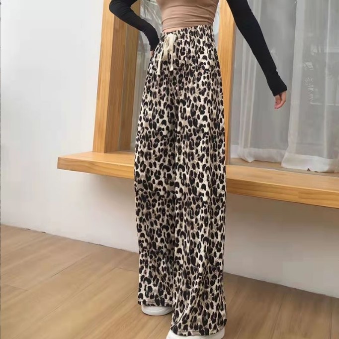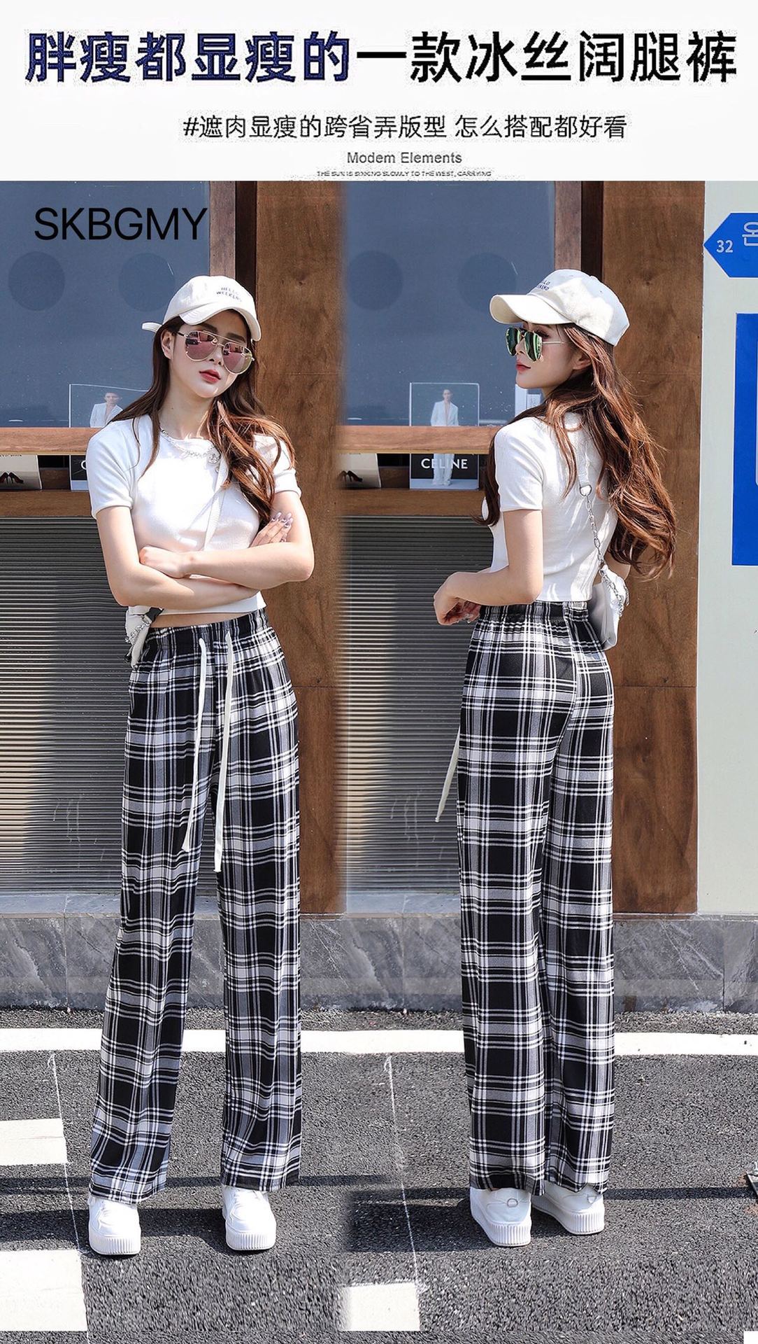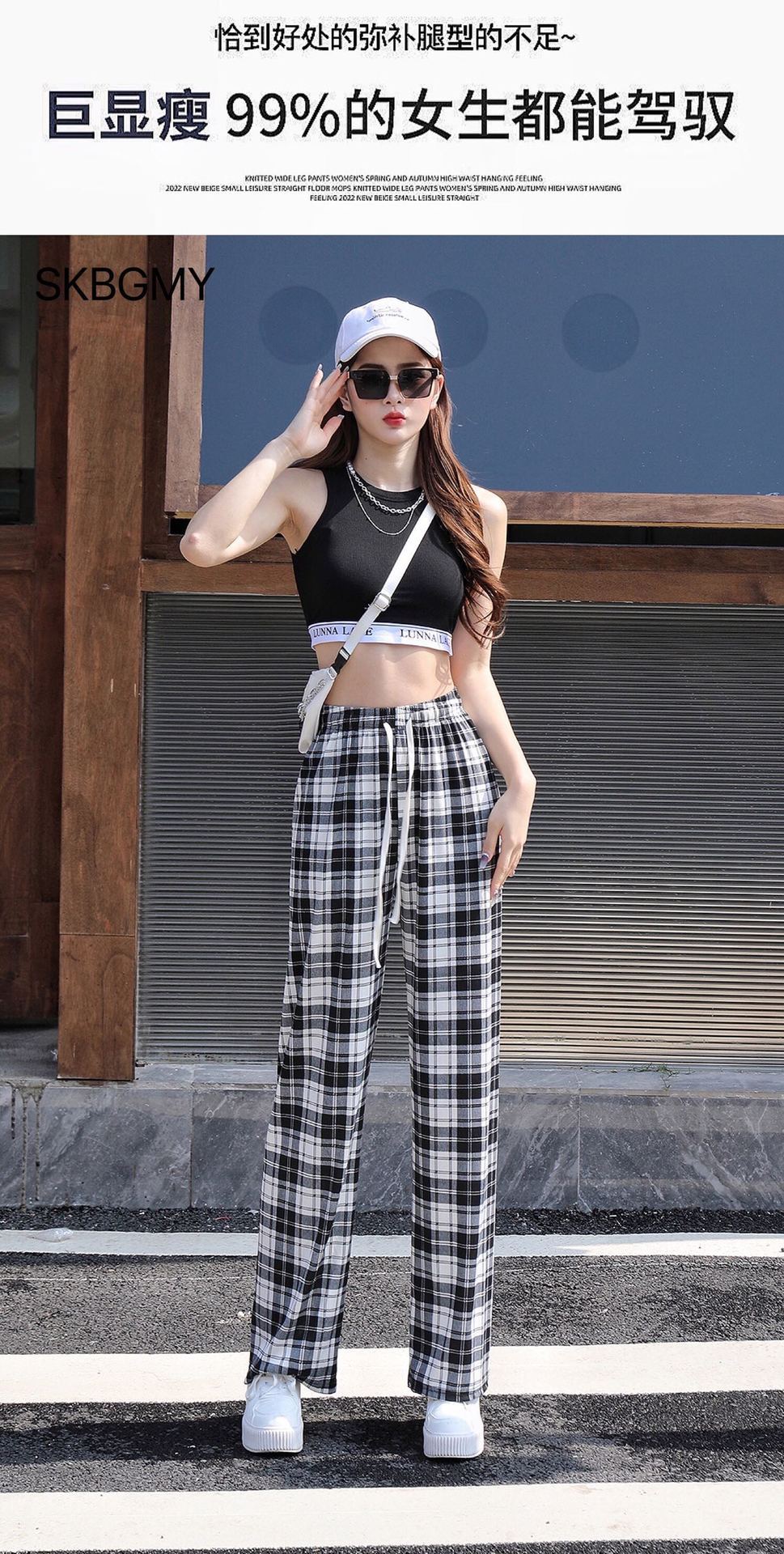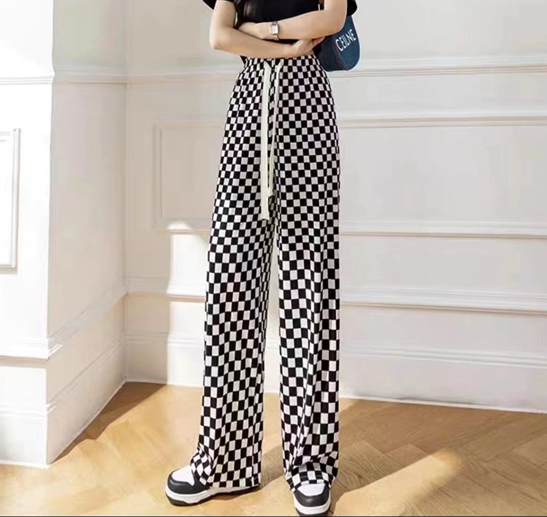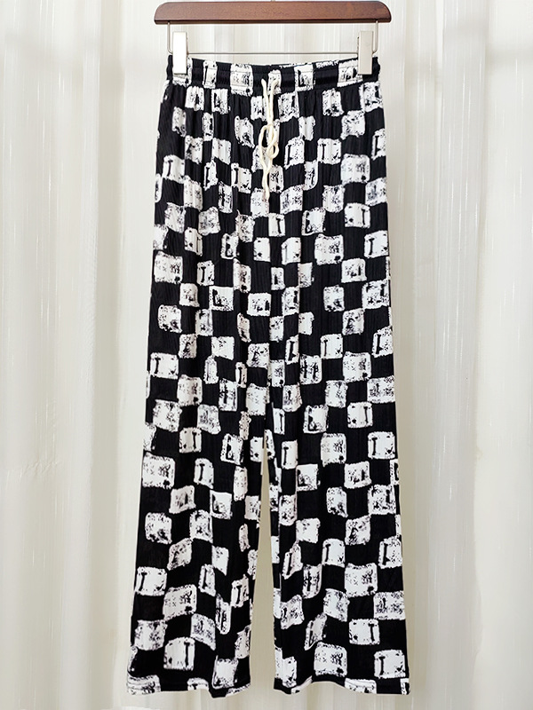 春夏季新款条纹阔腿中国风裤 女士薄款宽松休闲裤 直筒印花防蚊