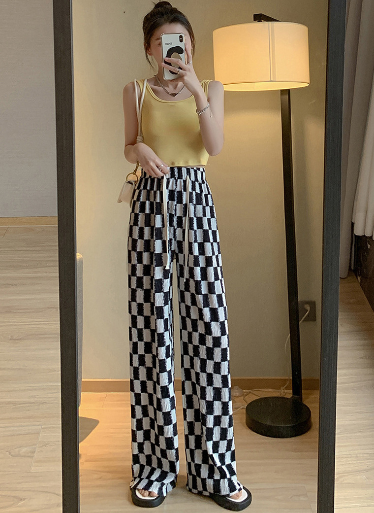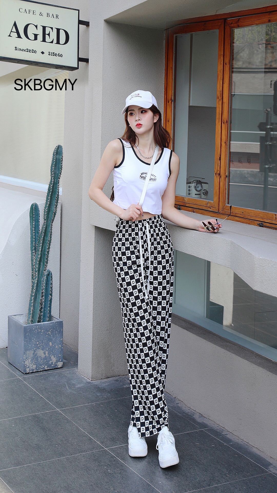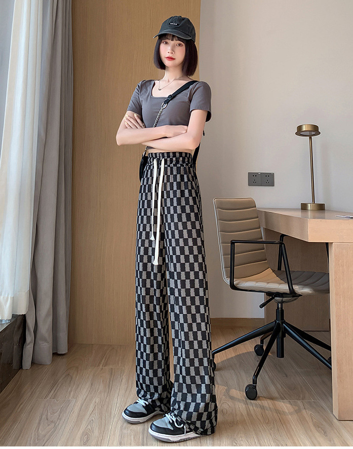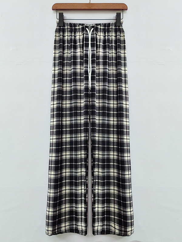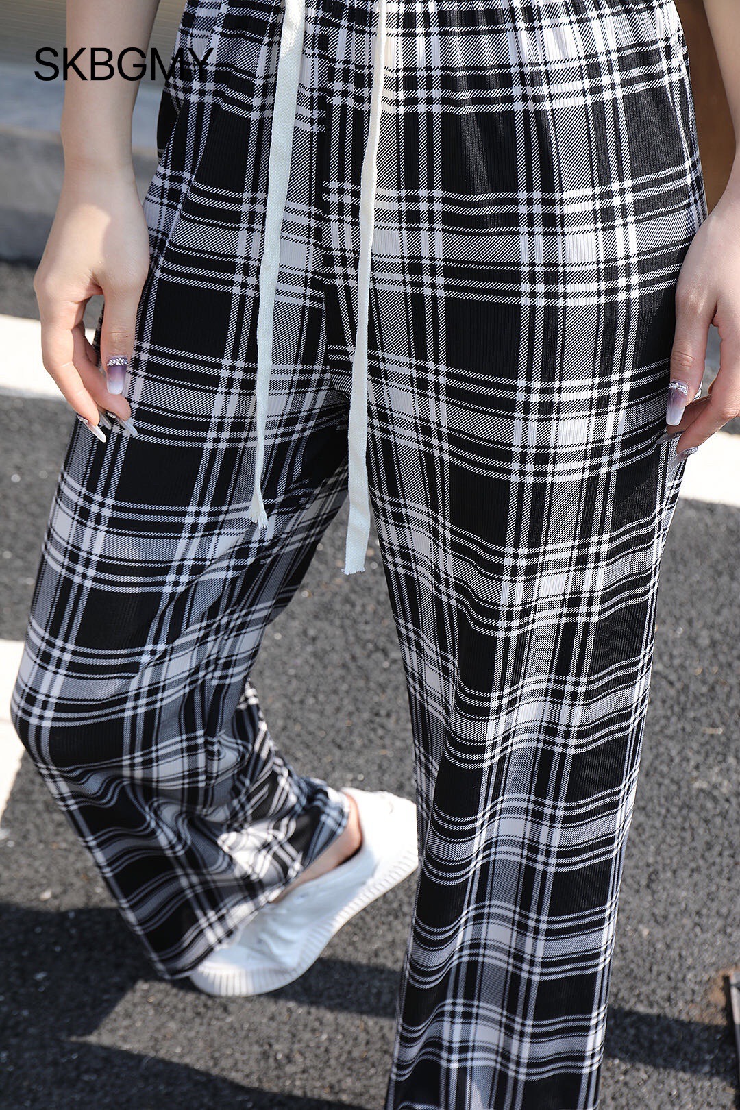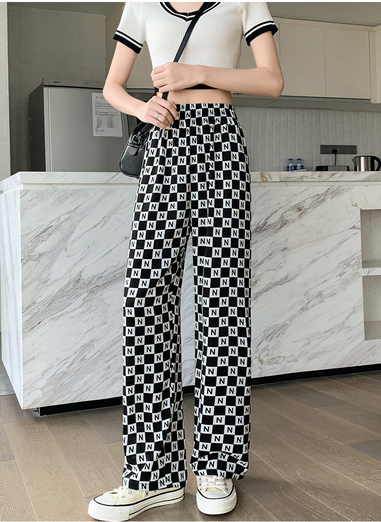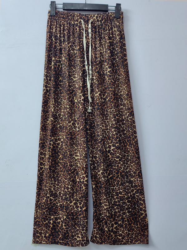 春夏季新款条纹阔腿中国风裤 女士薄款宽松休闲裤 直筒印花防蚊