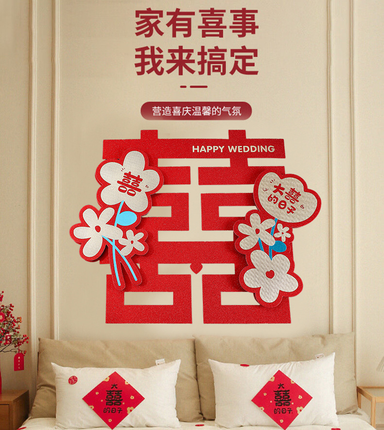 超大喜字批发结婚用品婚庆卧室门喜字贴婚礼囍字装饰婚房布置套装