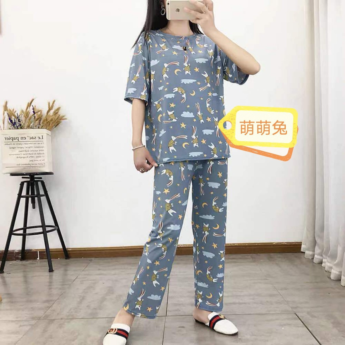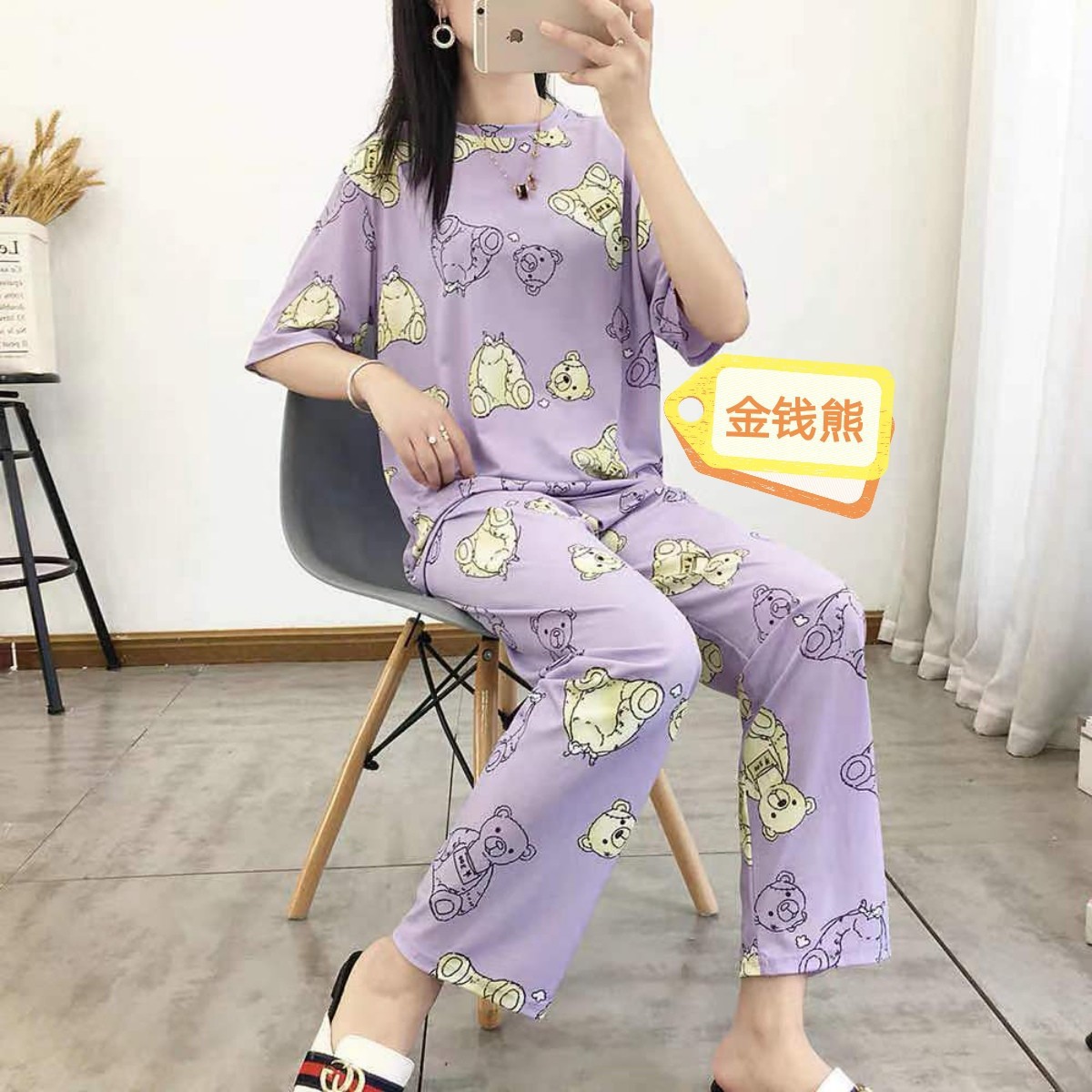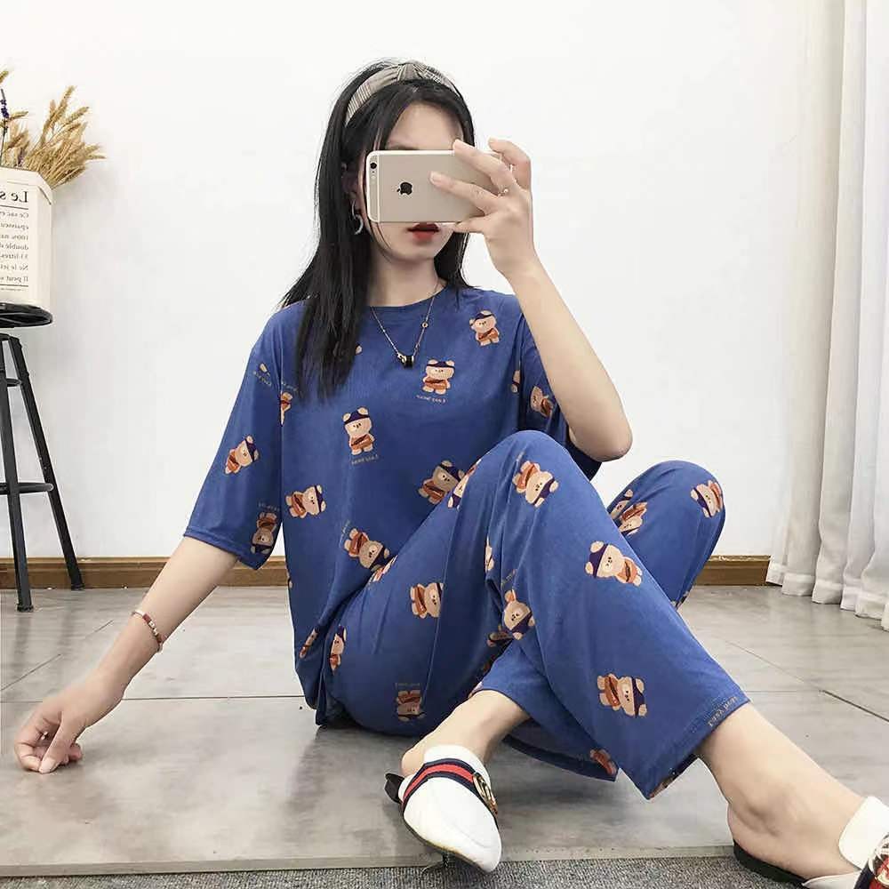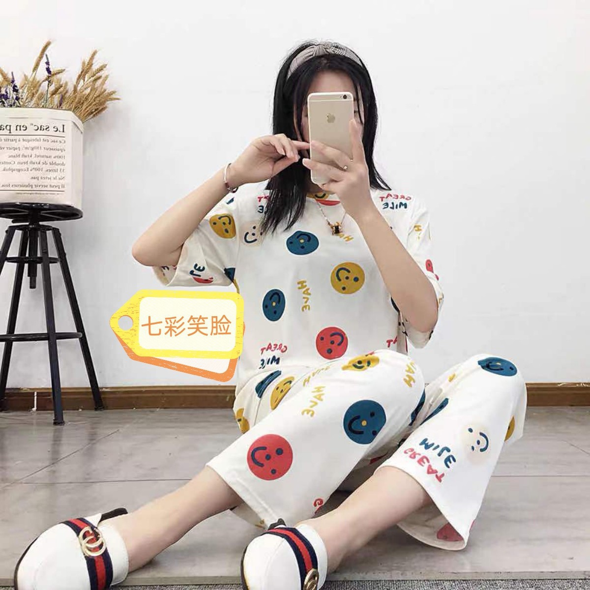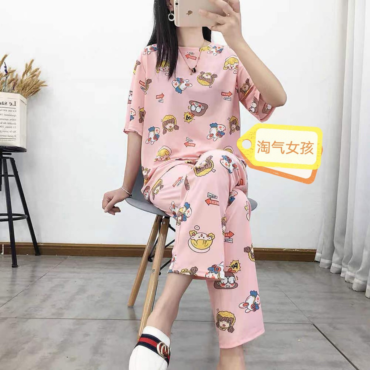 居家套装女 睡衣 夏季短袖九分裤卡通印花学生装外穿休闲服女套装