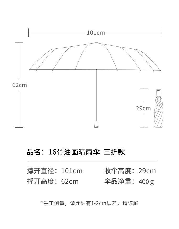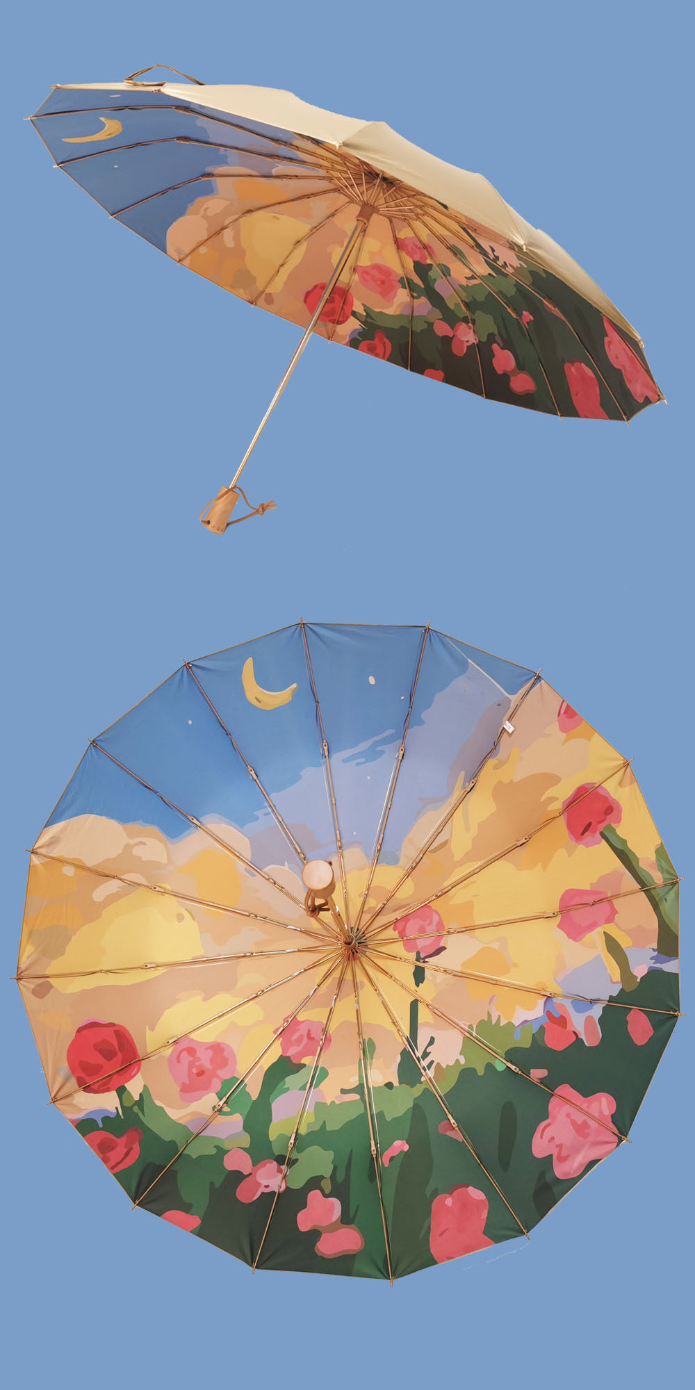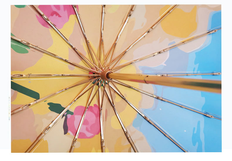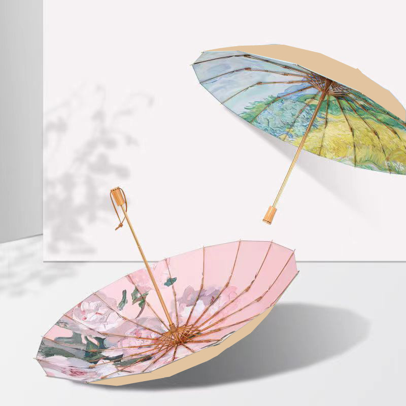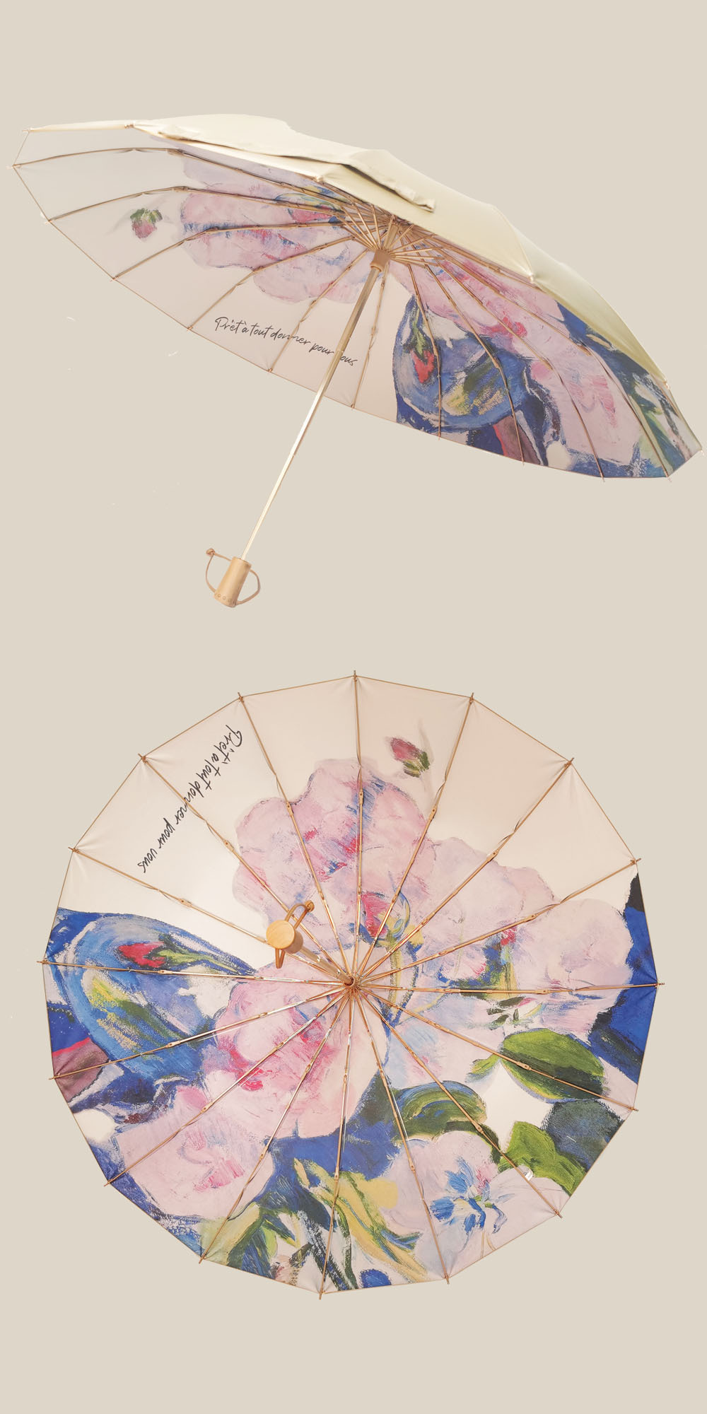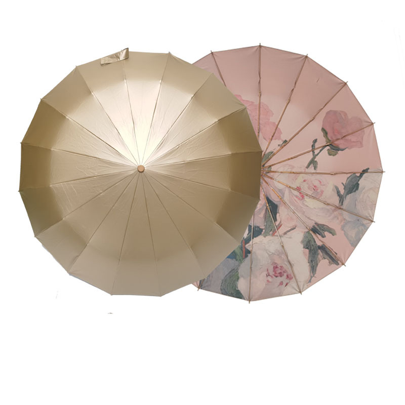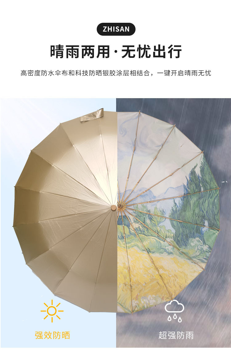 16骨三折油画金胶防晒防紫外线遮阳伞晴雨两用女折叠高级感太阳伞