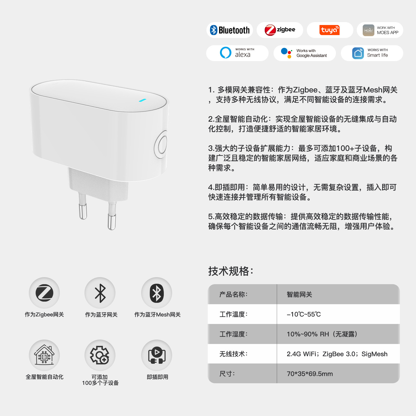 WiFi涂鸦智能家居多模网关app远程控制插电式欧规多模小网关