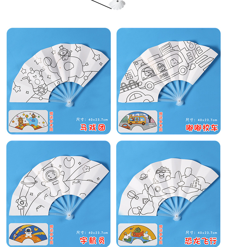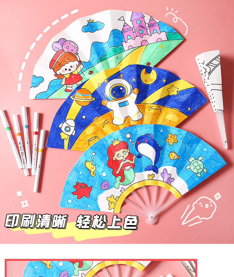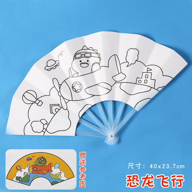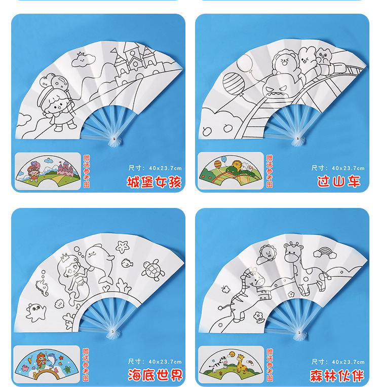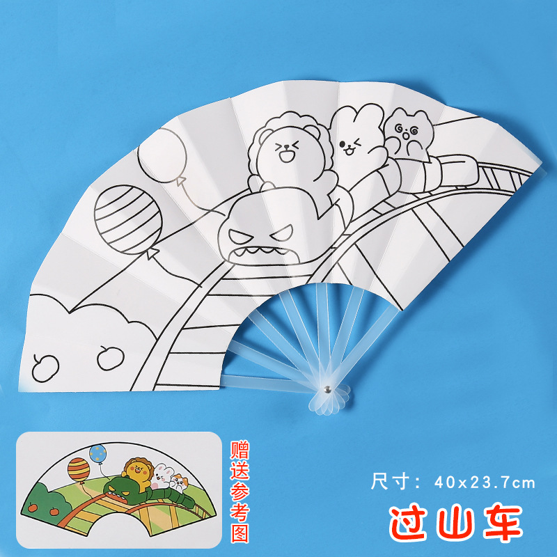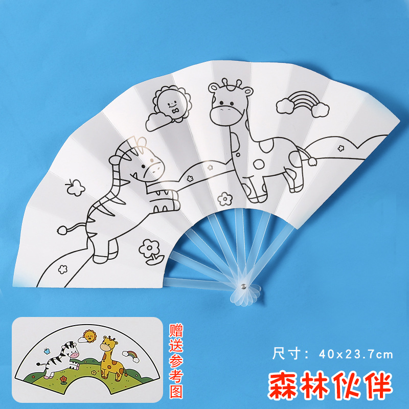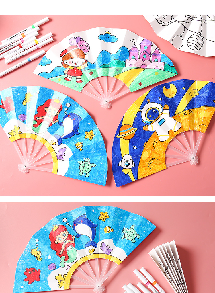 创意卡通空白涂鸦纸扇子儿童diy七折扇夏季古风绘画手工涂鸦扇子